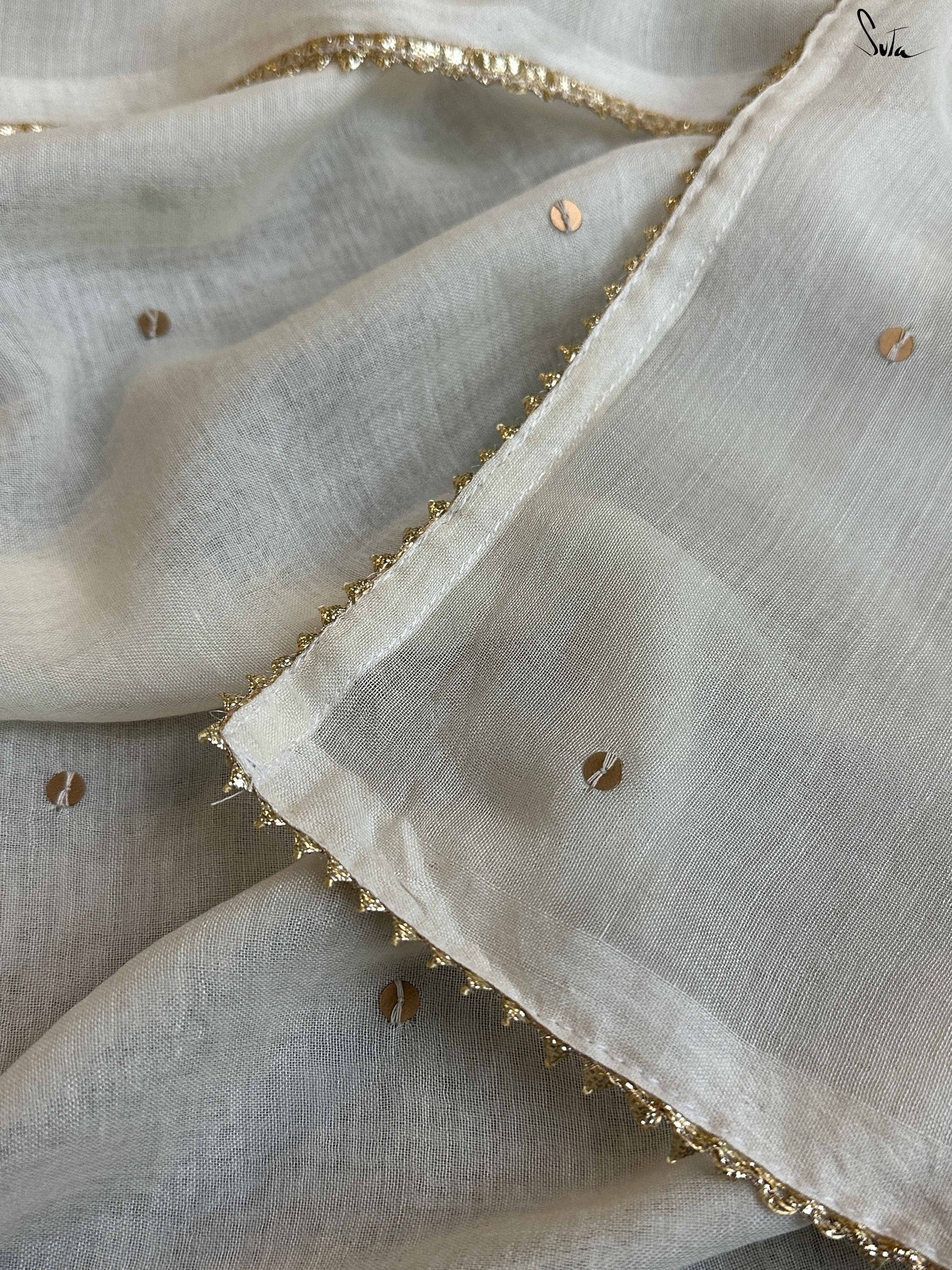 The mul cotton is what we call ˜made in heaven at Suta. Known in West Bengal as mul mul, the fabric is buttery soft and delicately beautiful. The weave of this fabric is very fine, and this lends a very fluid texture to it that makes draping it a breeze. It is truly like a hug that wraps you in its love!