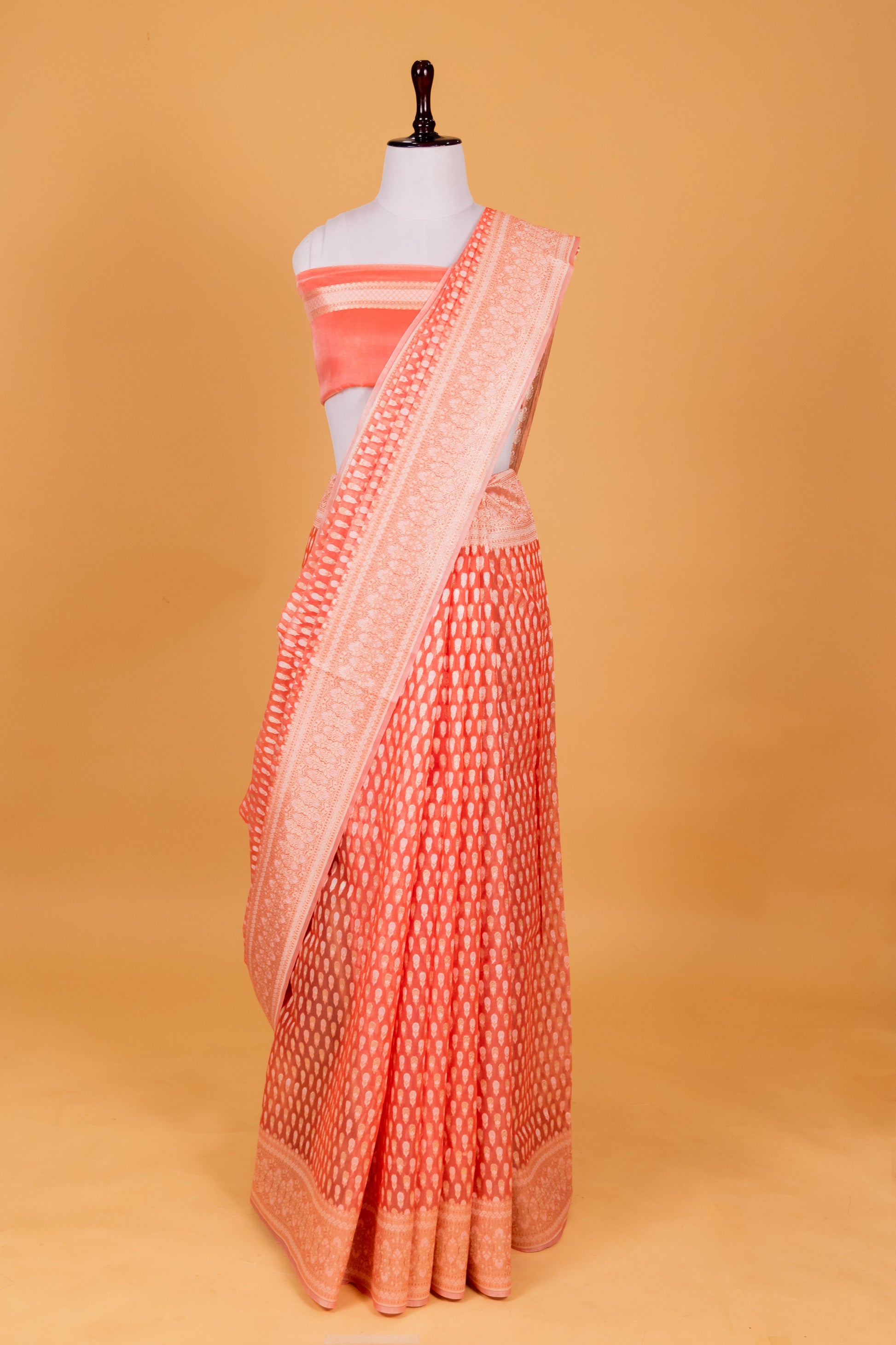 Peach Banarasi Cotton Cutwork Saree