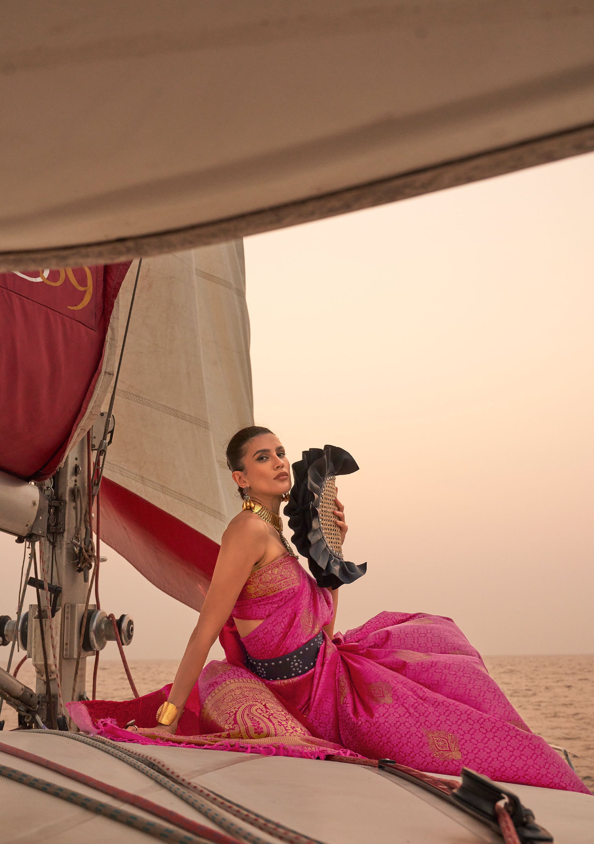 Does your wardrobe need more versatility? Then, check out this. Let your skin feel the refreshing touch as you adorn this superior-quality lightweight Saree to match the overall modest design.