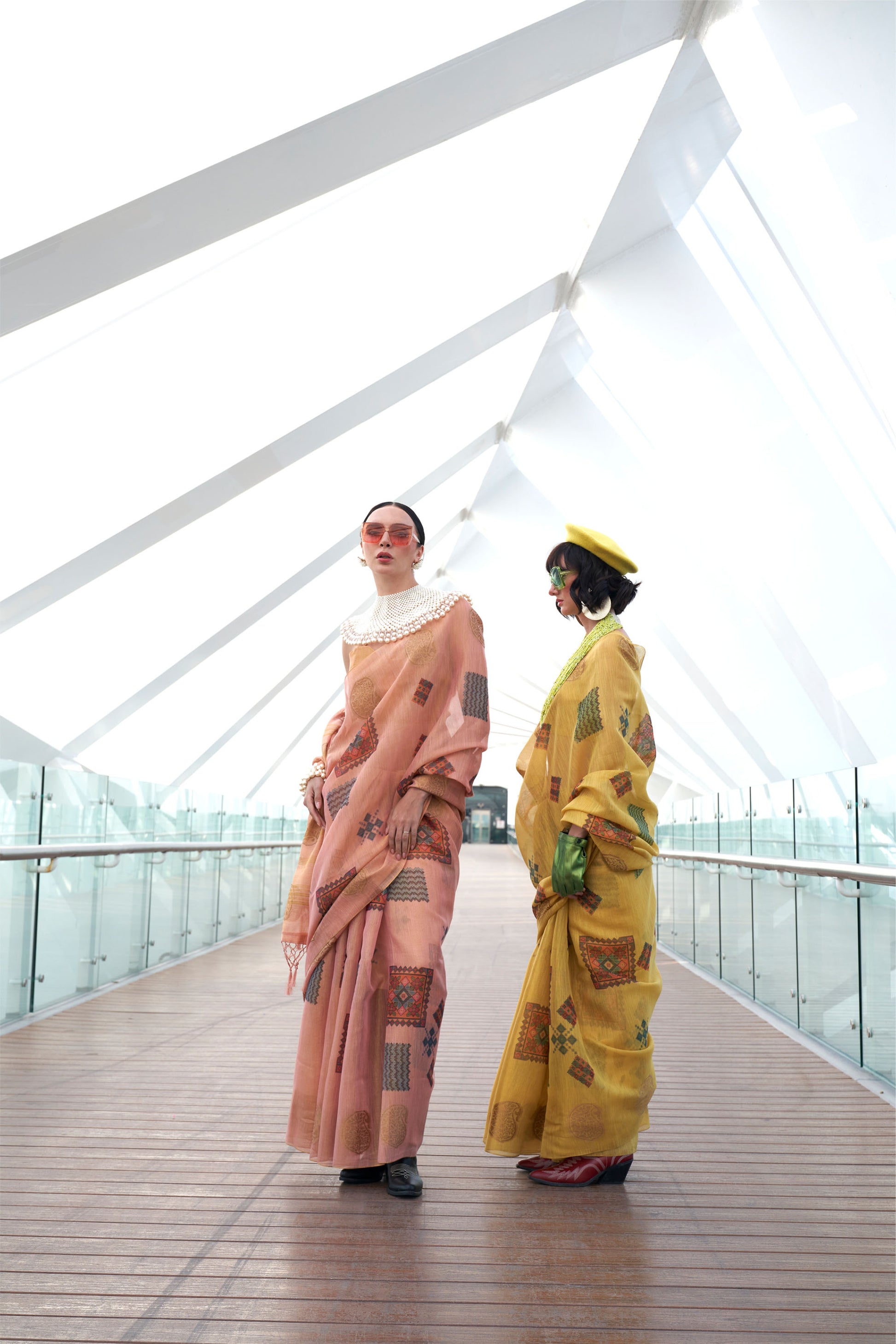Peach Kroma Zari Tissue handwoven Printed Silk Saree