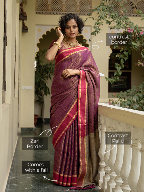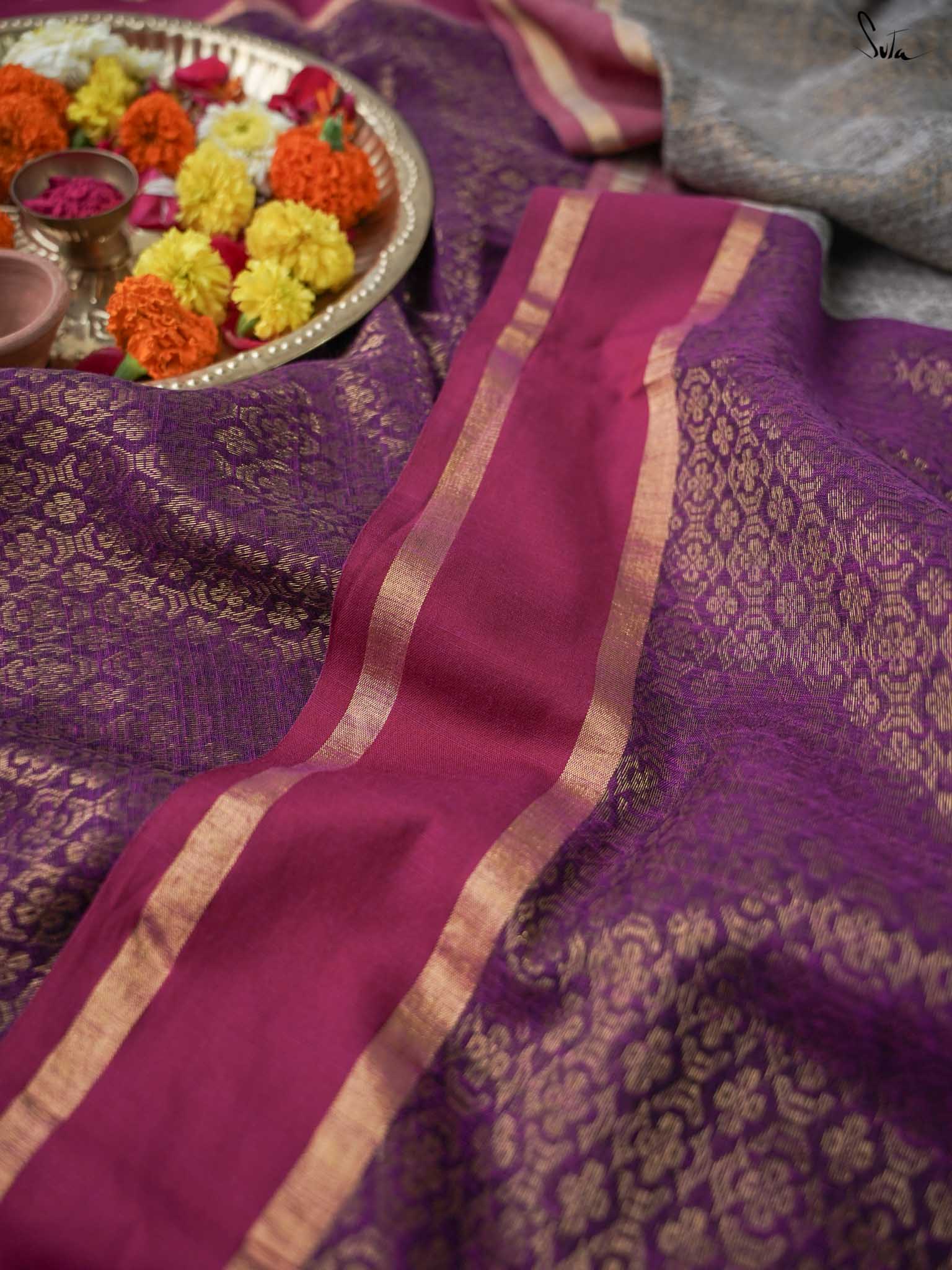 Drape yourself in the eternal blooming Phool aur Khushboo Saree in Magenta, crafted in