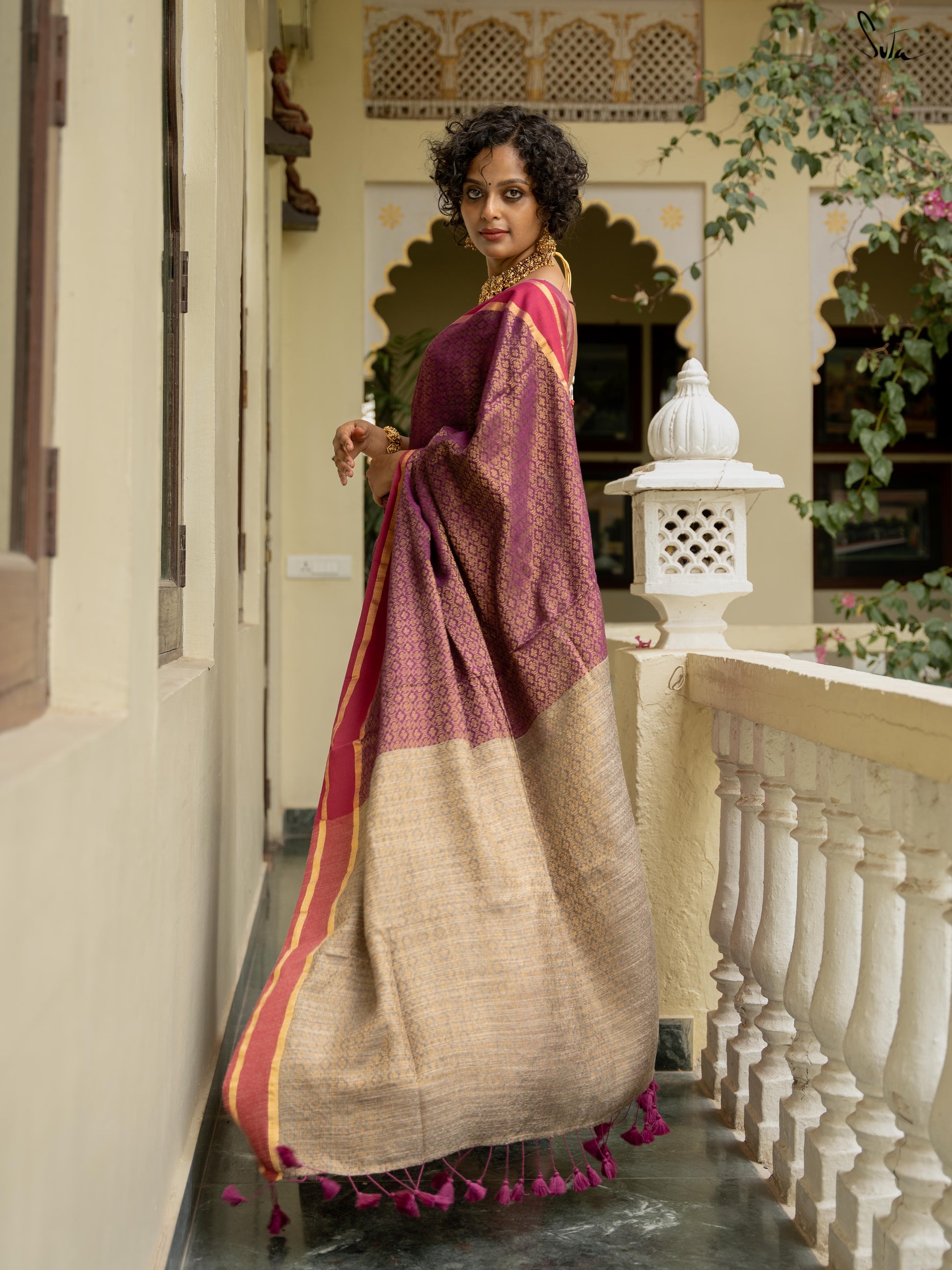 embracing the beauty within and honoring her love for drapes. This festive season let your beauty glow like the moon with Suta.