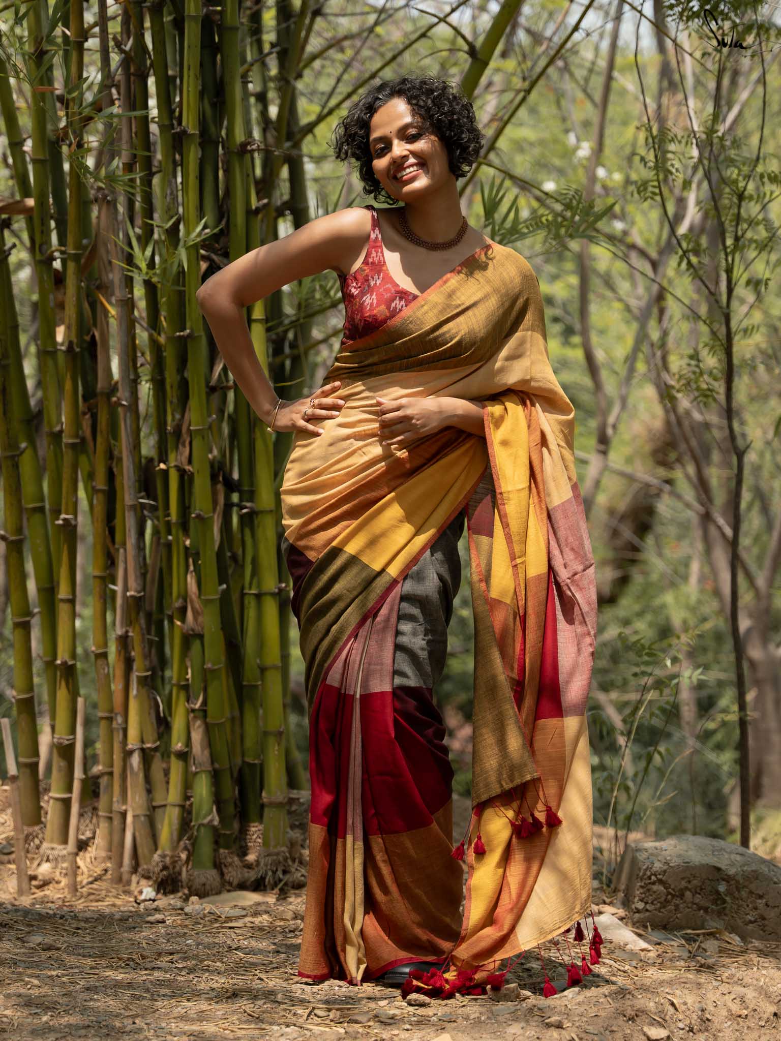 Blouse: The model is wearing XS size blouse called Meetha anaar