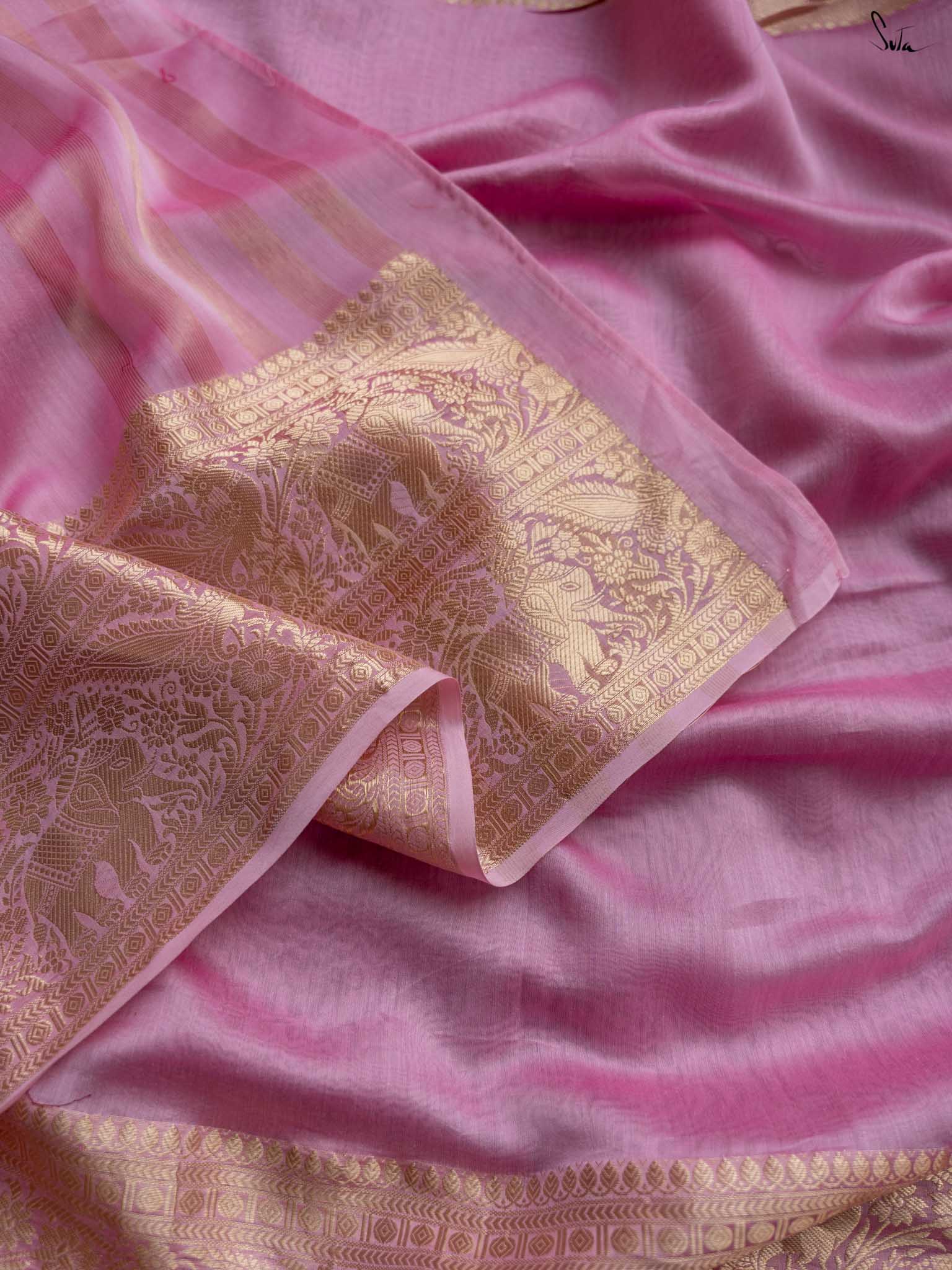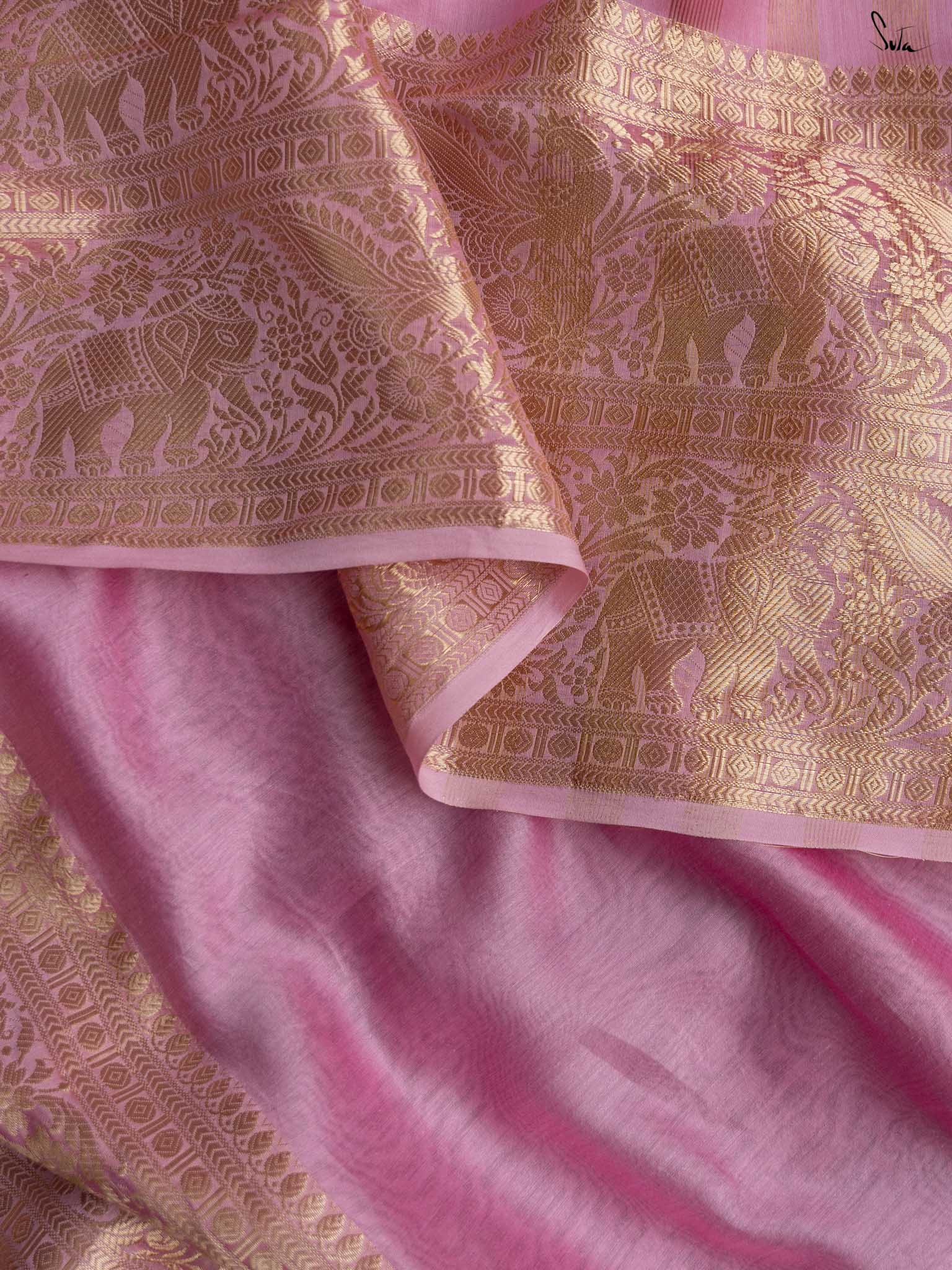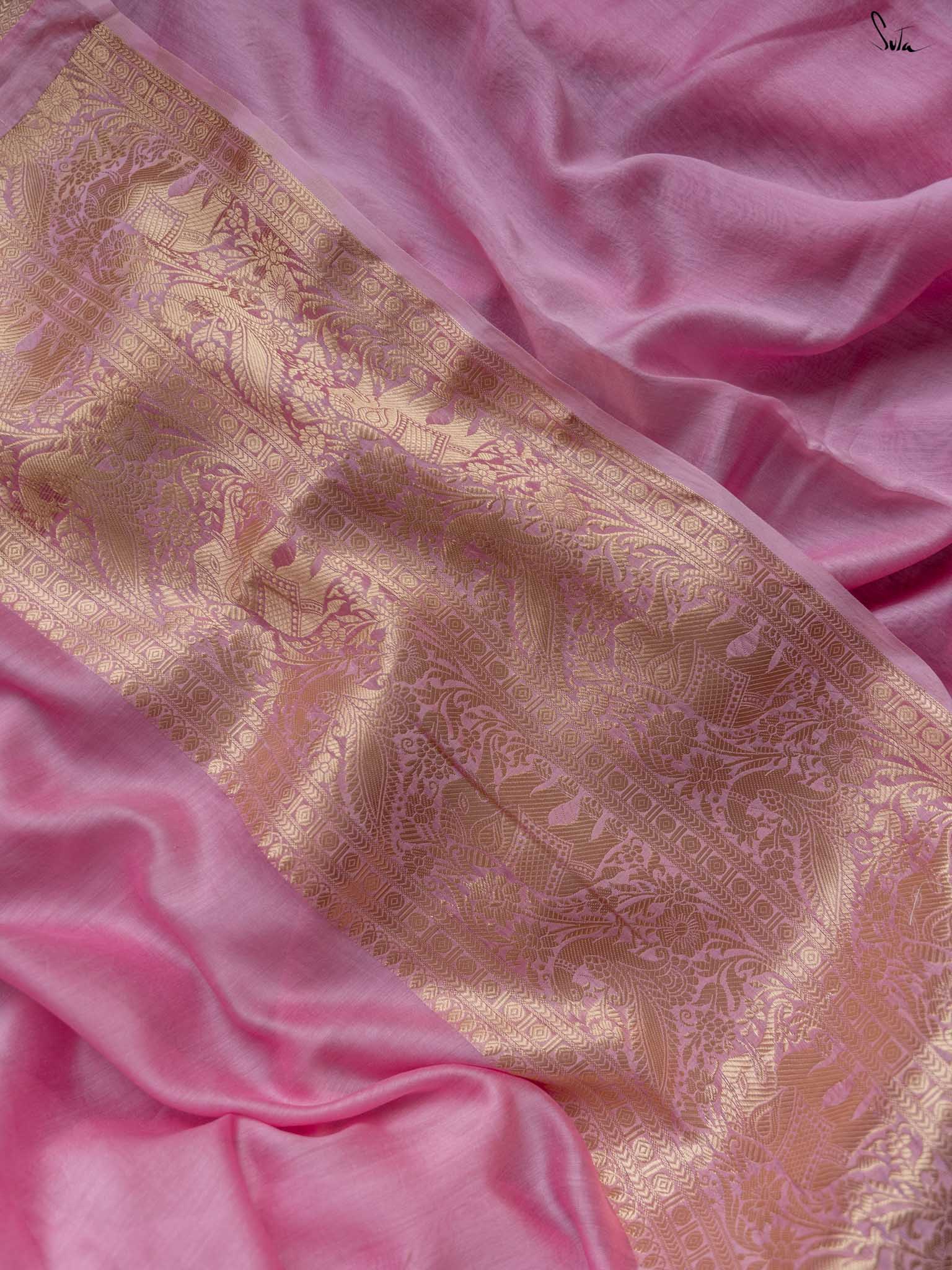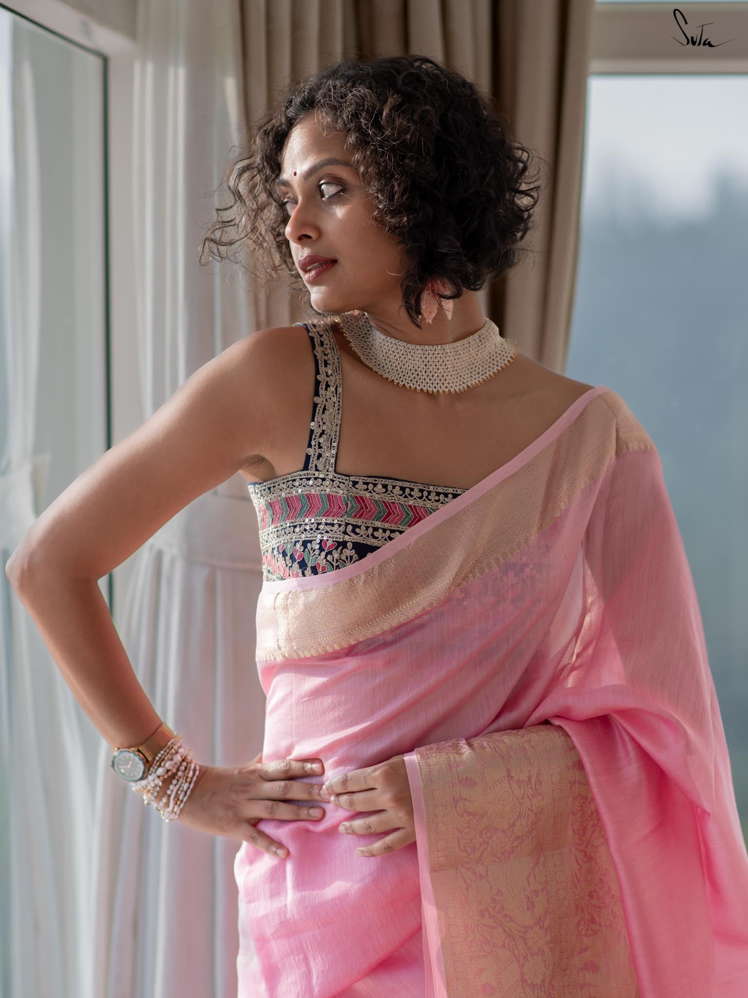 Imagine a field of colorful blooms surrounding you, painting your soul with positivity and beauty! The 'Phoolon Ki Lori' saree is a testament to that same feeling! Made up of cotton polyester fabric, this baby pink saree is woven with animal motifs, making it a must-have special ensemble for your wedding wardrobe!