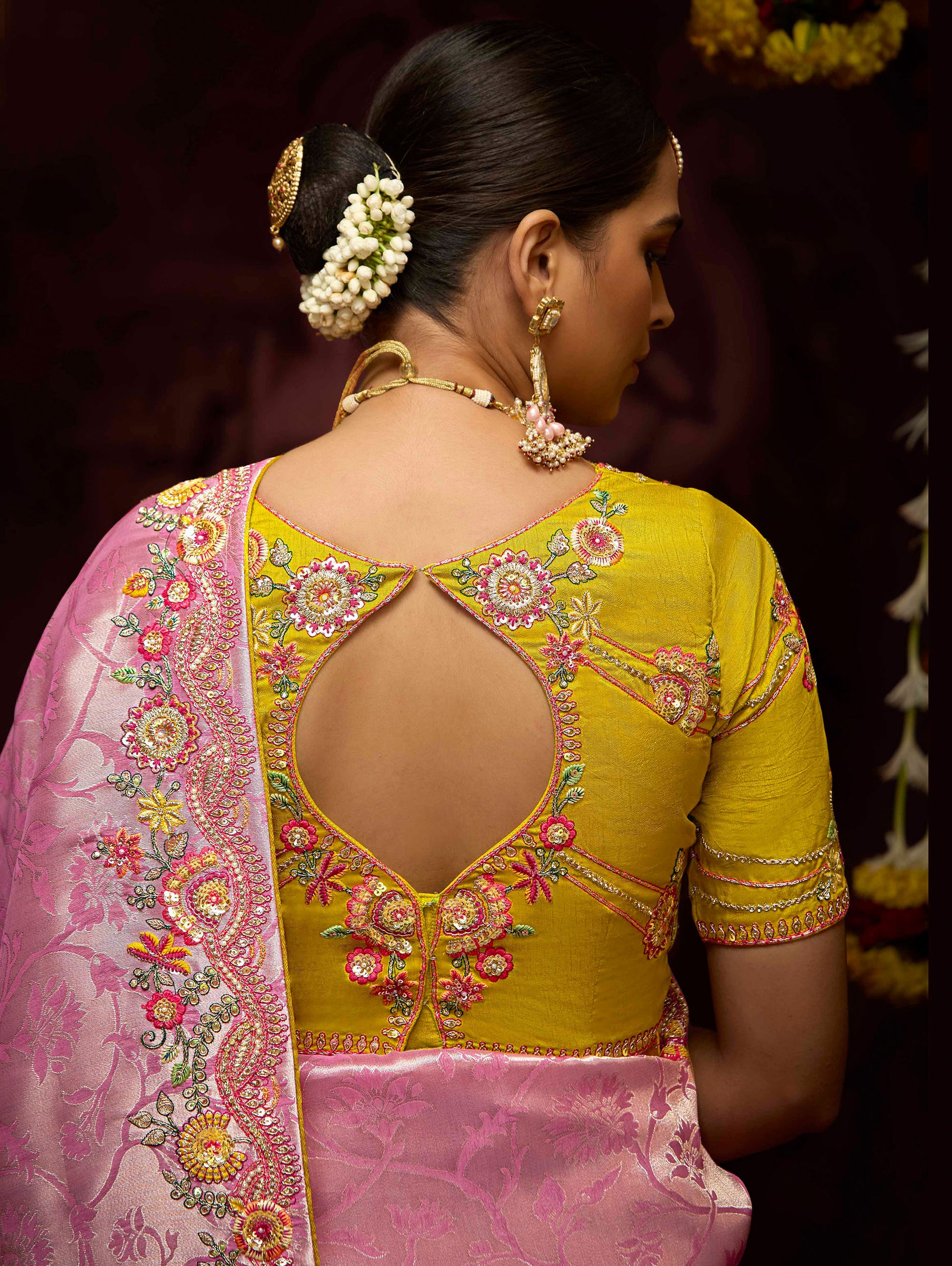 Pink Banarasi Zari Woven Prasang Wedding Saree