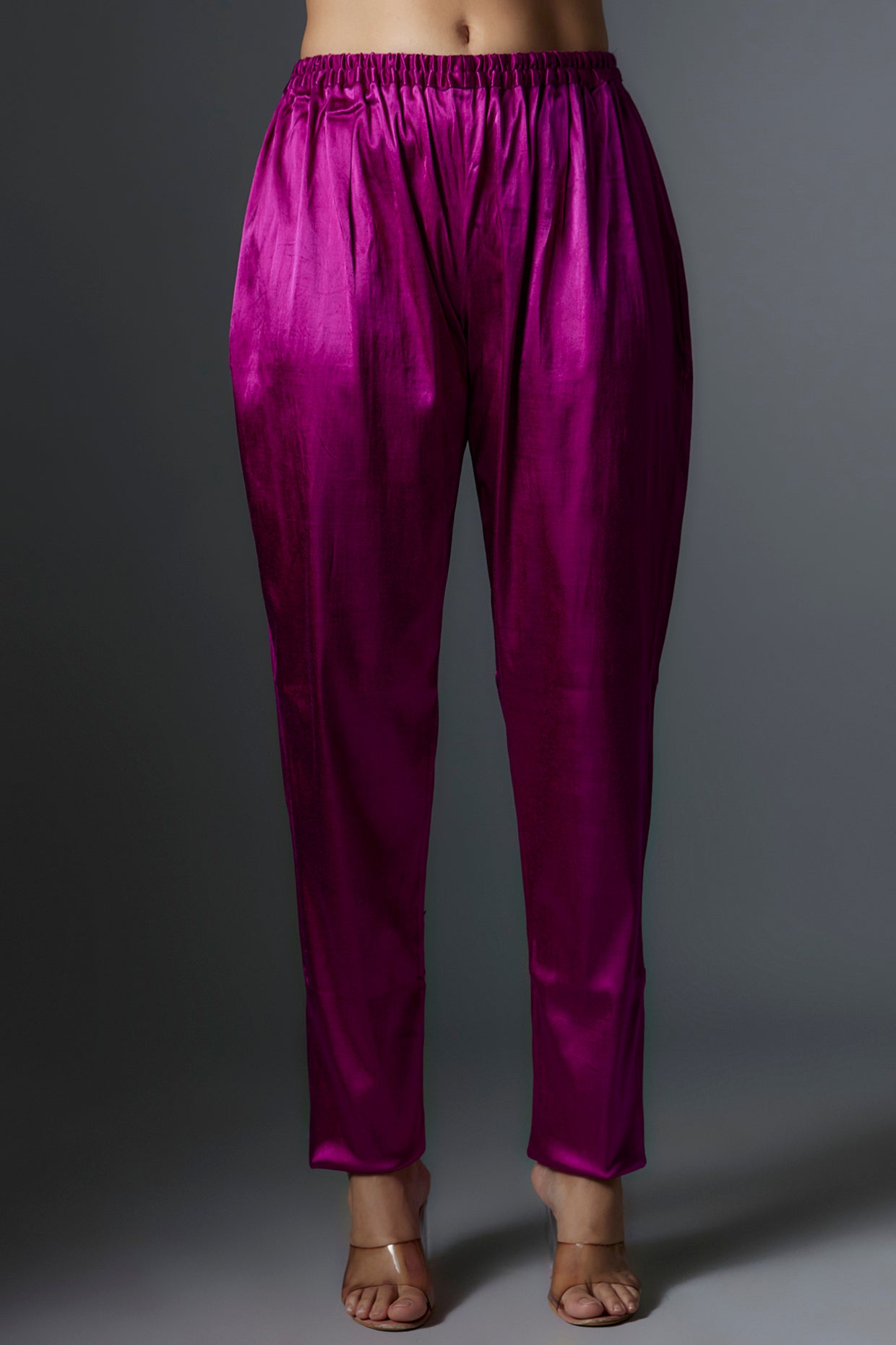 Featuring A Pink Kurta In Chanderi Base With Gota Handwork. It Is Paired With Pants And A Tissue Organza Dupatta. Perfect Wear For A Festive Occasion Or A Pooja Ceremony.