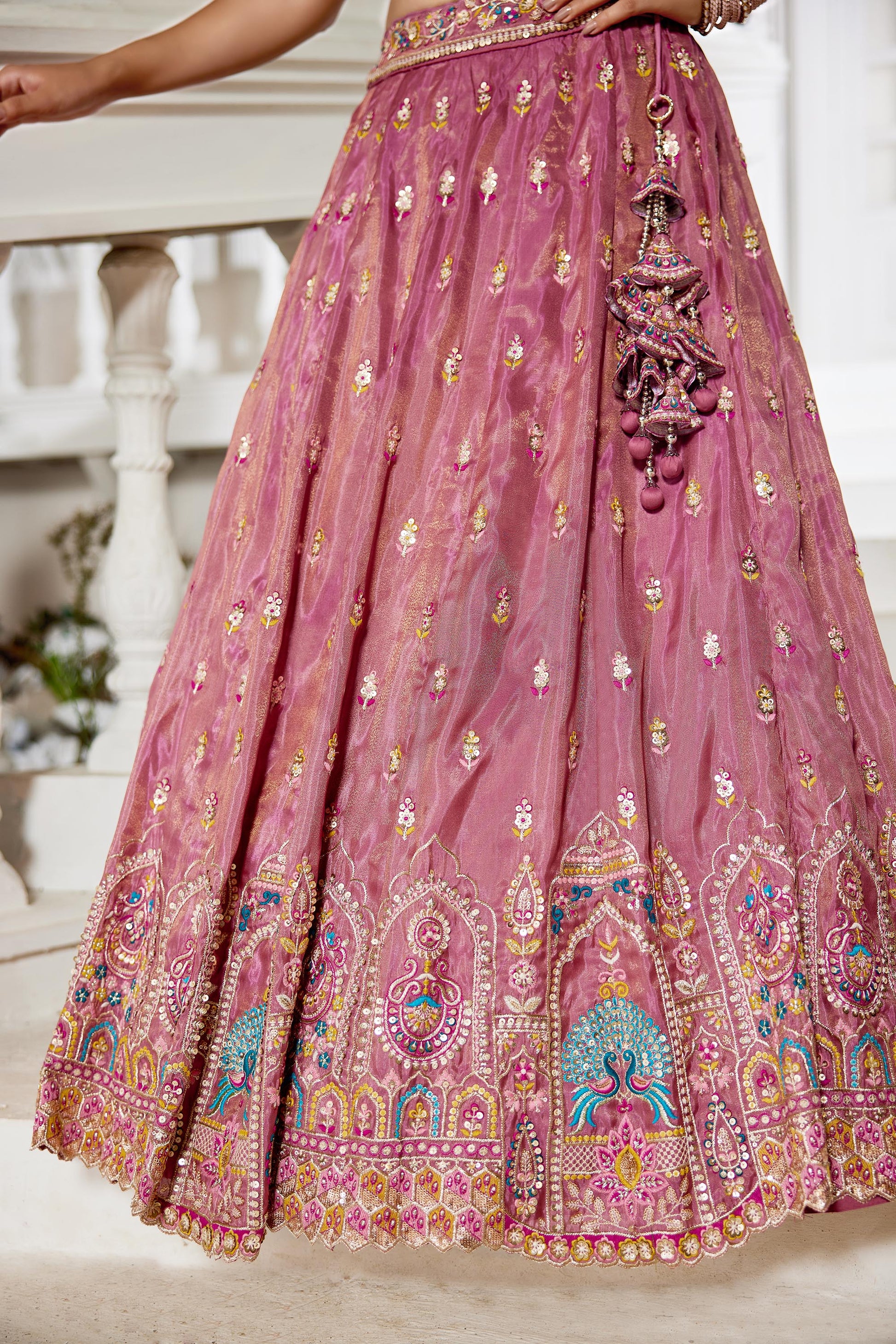 Pink colour Tissue Sequinse embroidery Lehenga choli & Dupatta