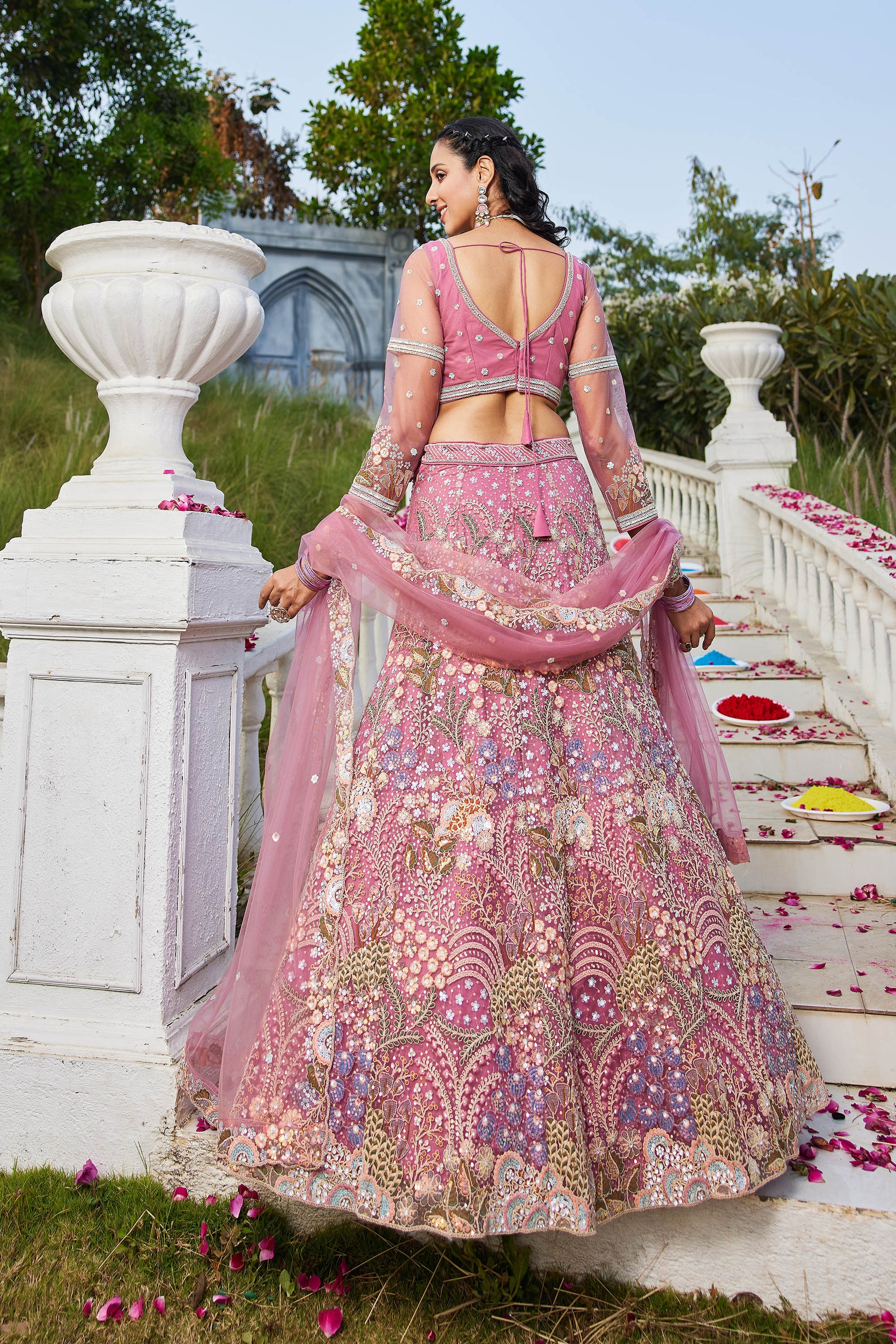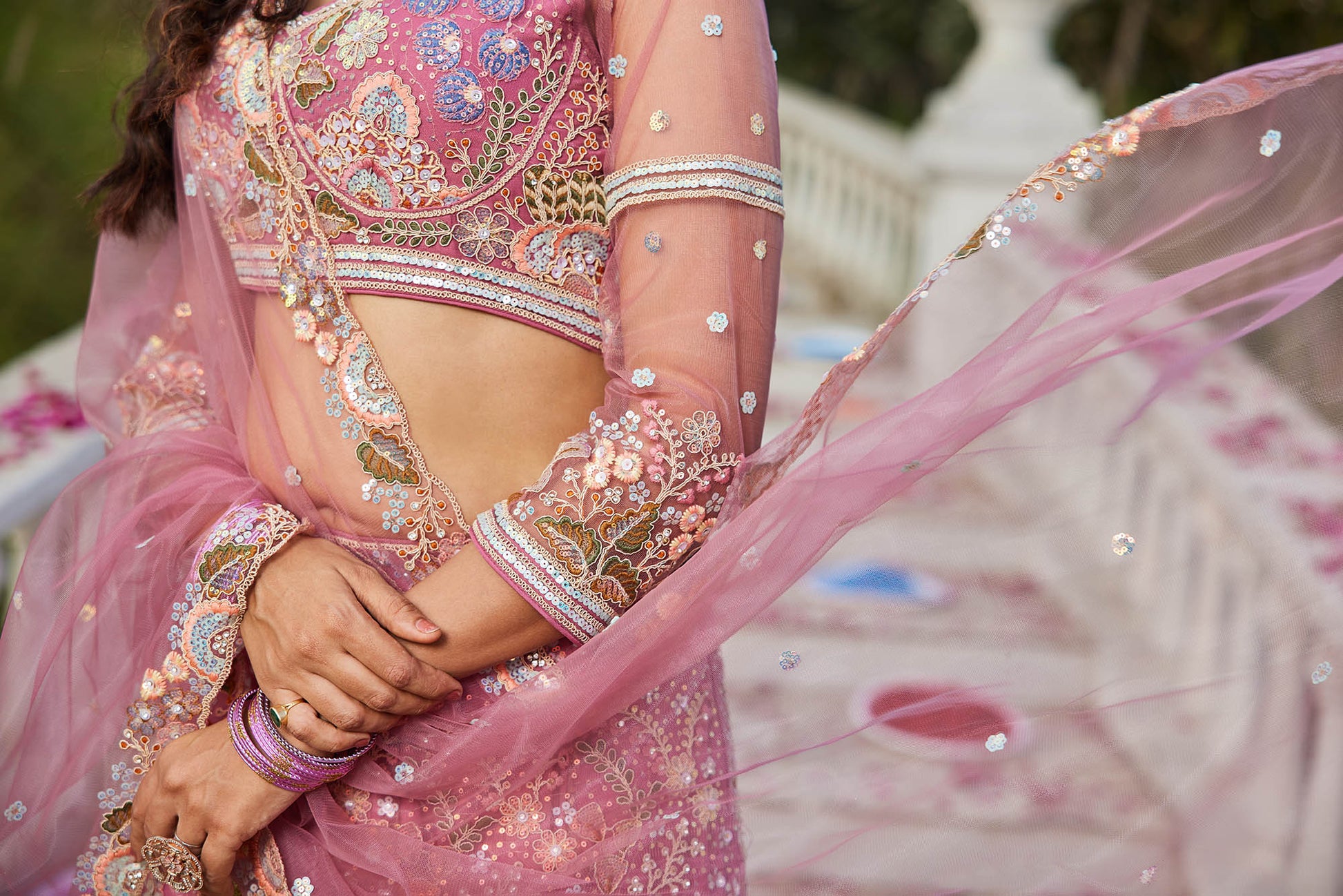 Pink net with Coding & Zarkan embroidery Lehenga choli & Dupatta