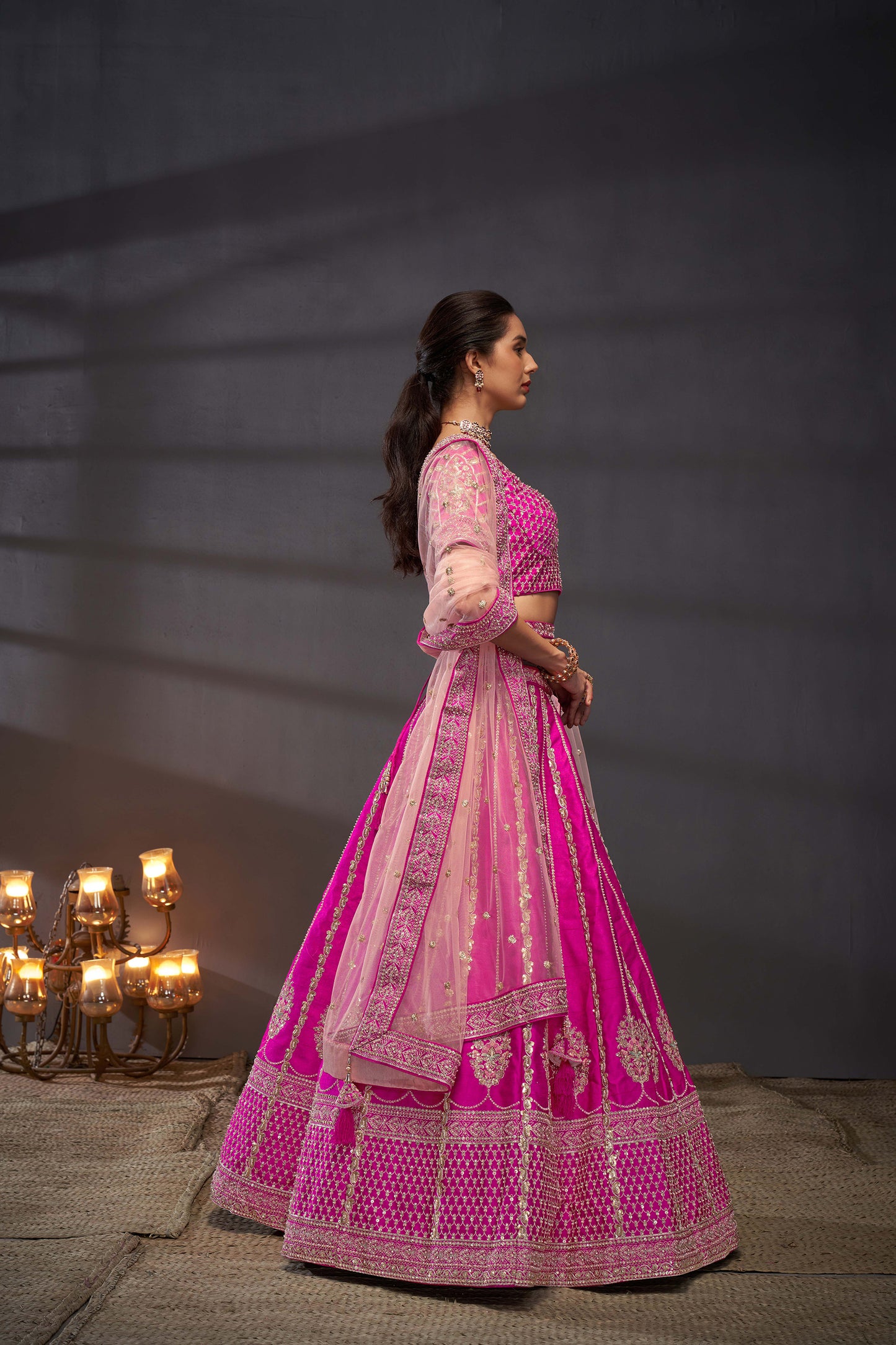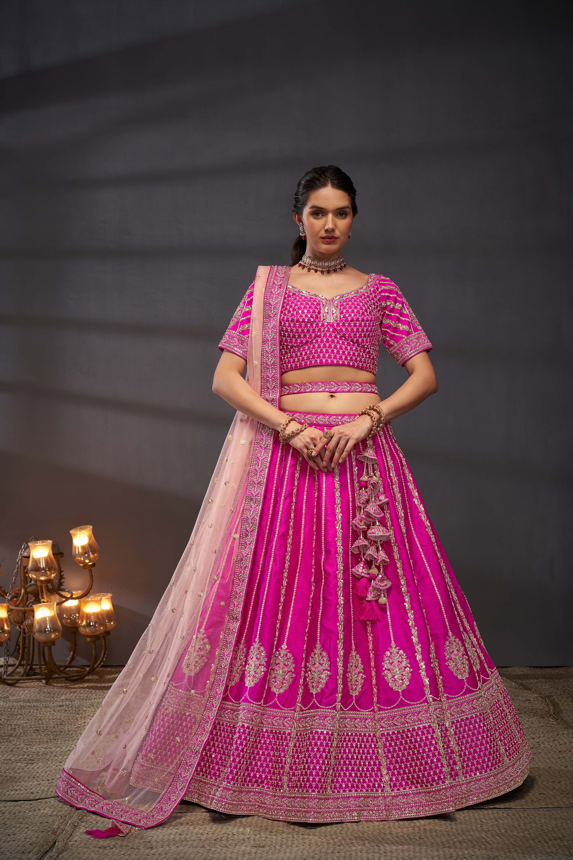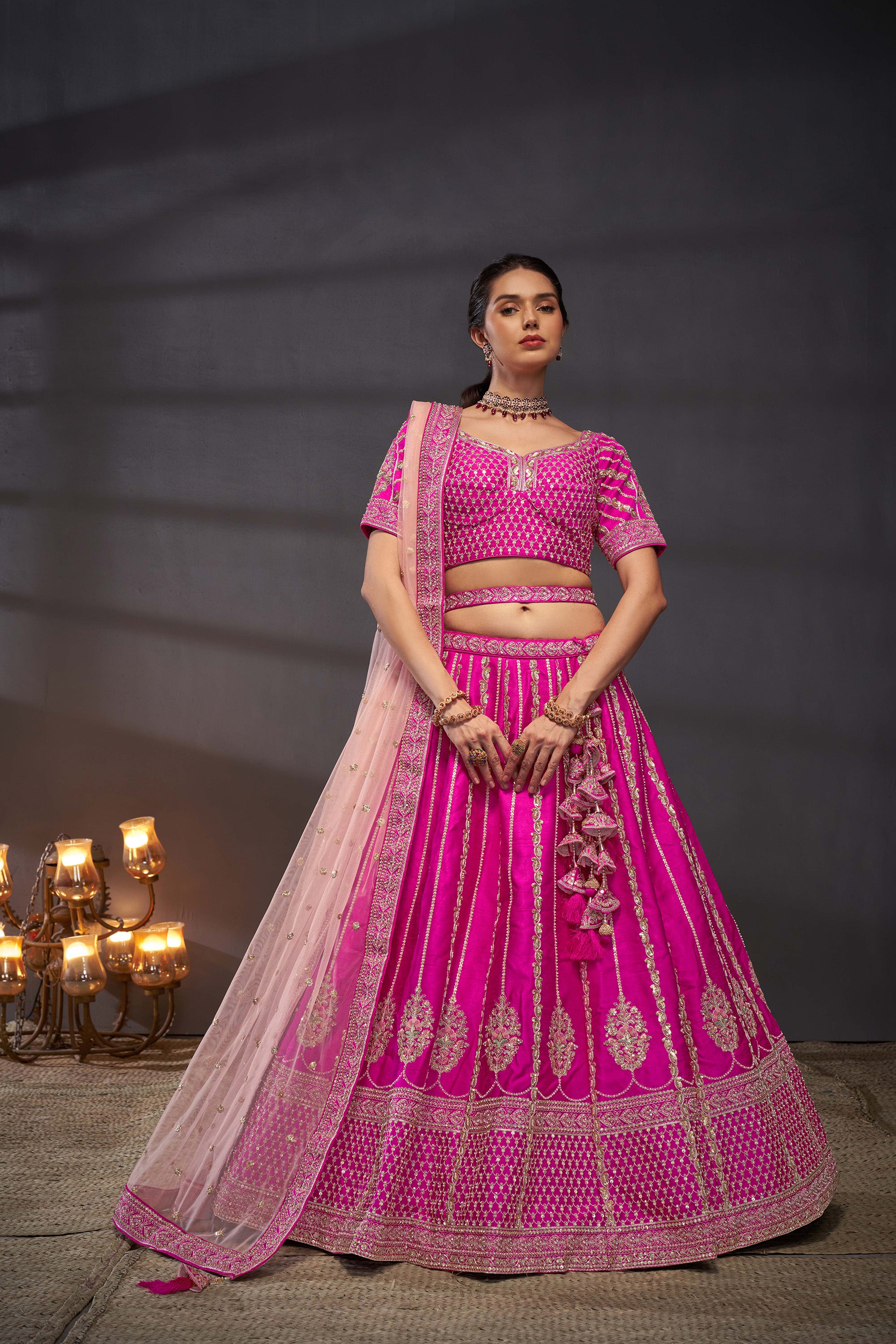 Pink Pure Silk Moti, Zarkan & heavy Sequin embroidery Bridal Lehenga choli