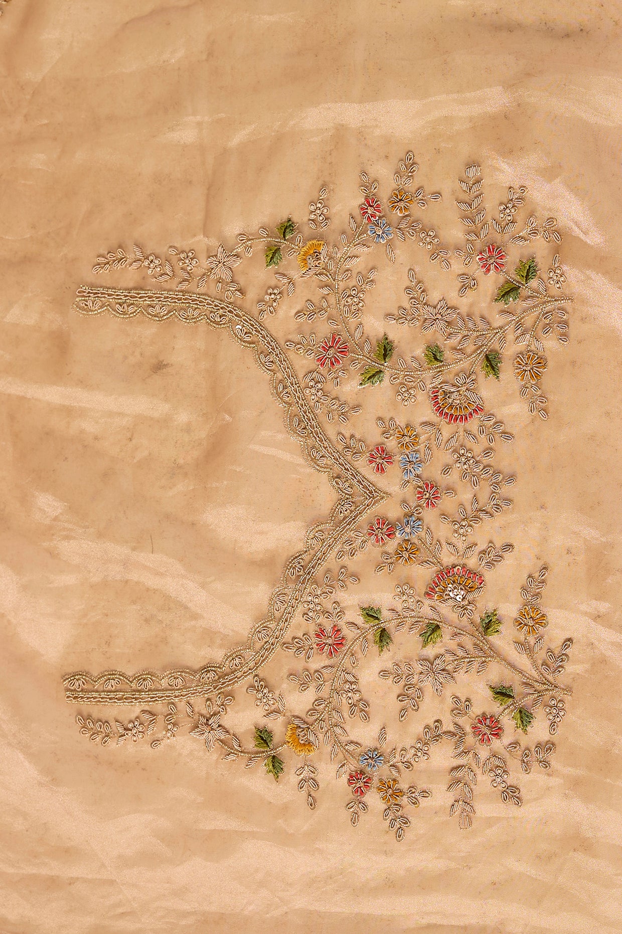 Featuring A Pink Saree In Tissue Base With Hand And Machine Embroidery. It Is Paired With An Unstitched Blouse Fabric. Accentuate The Designer Saree With Statement Jewellery, Embellished Heels And A Potli Bag For Your Wedding, Sangeet Or Engagement Ceremony.