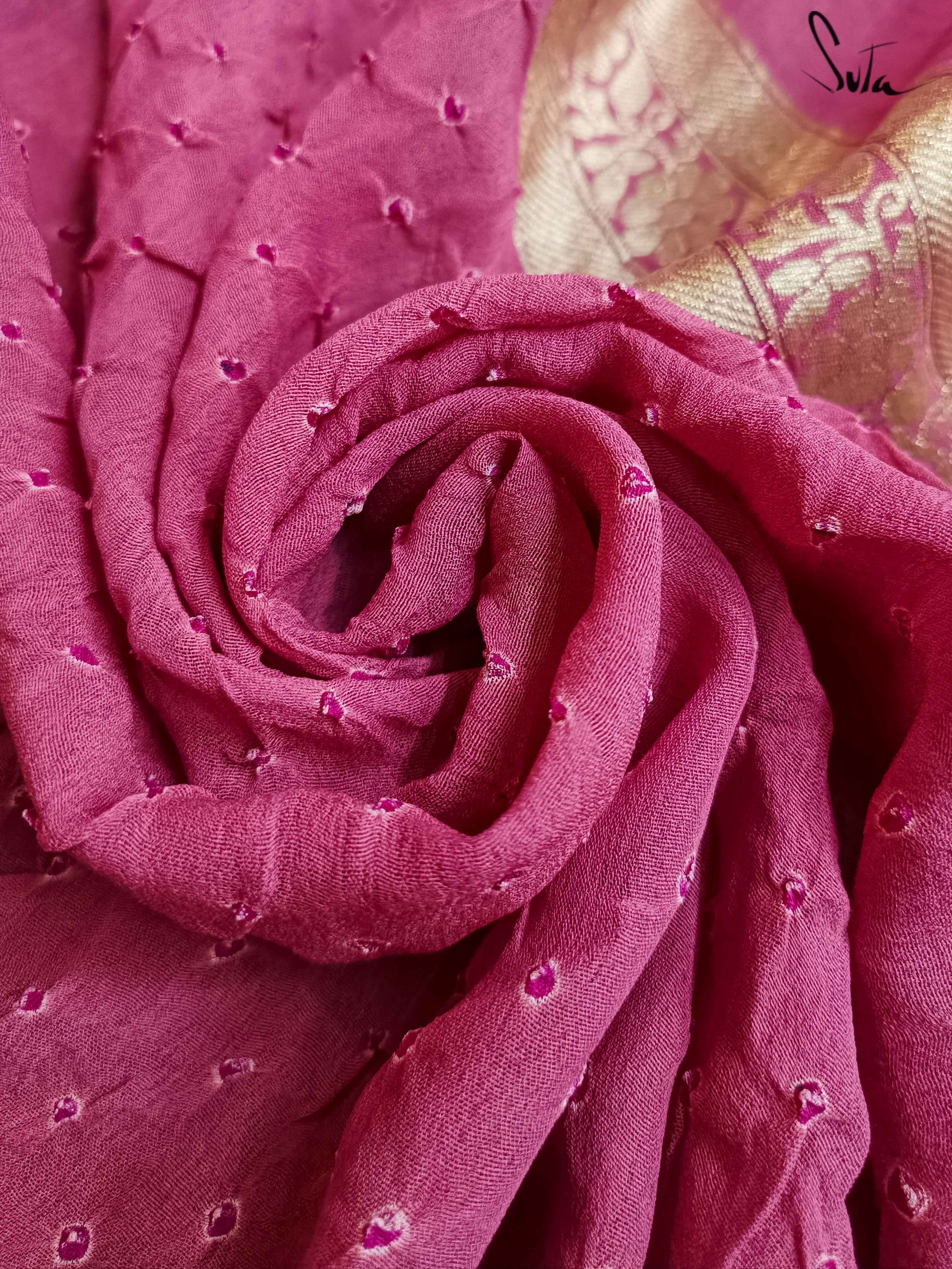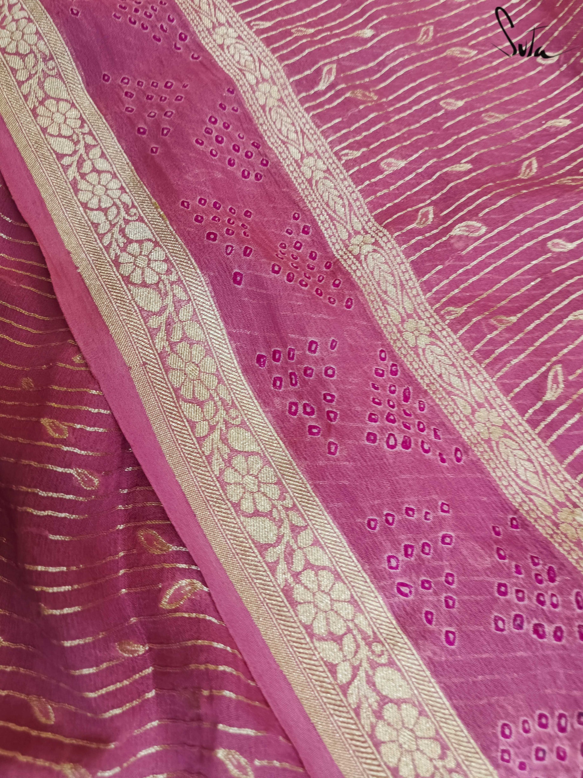 Fabric: Leaf Border Bandhani Silk Georgette with Zari