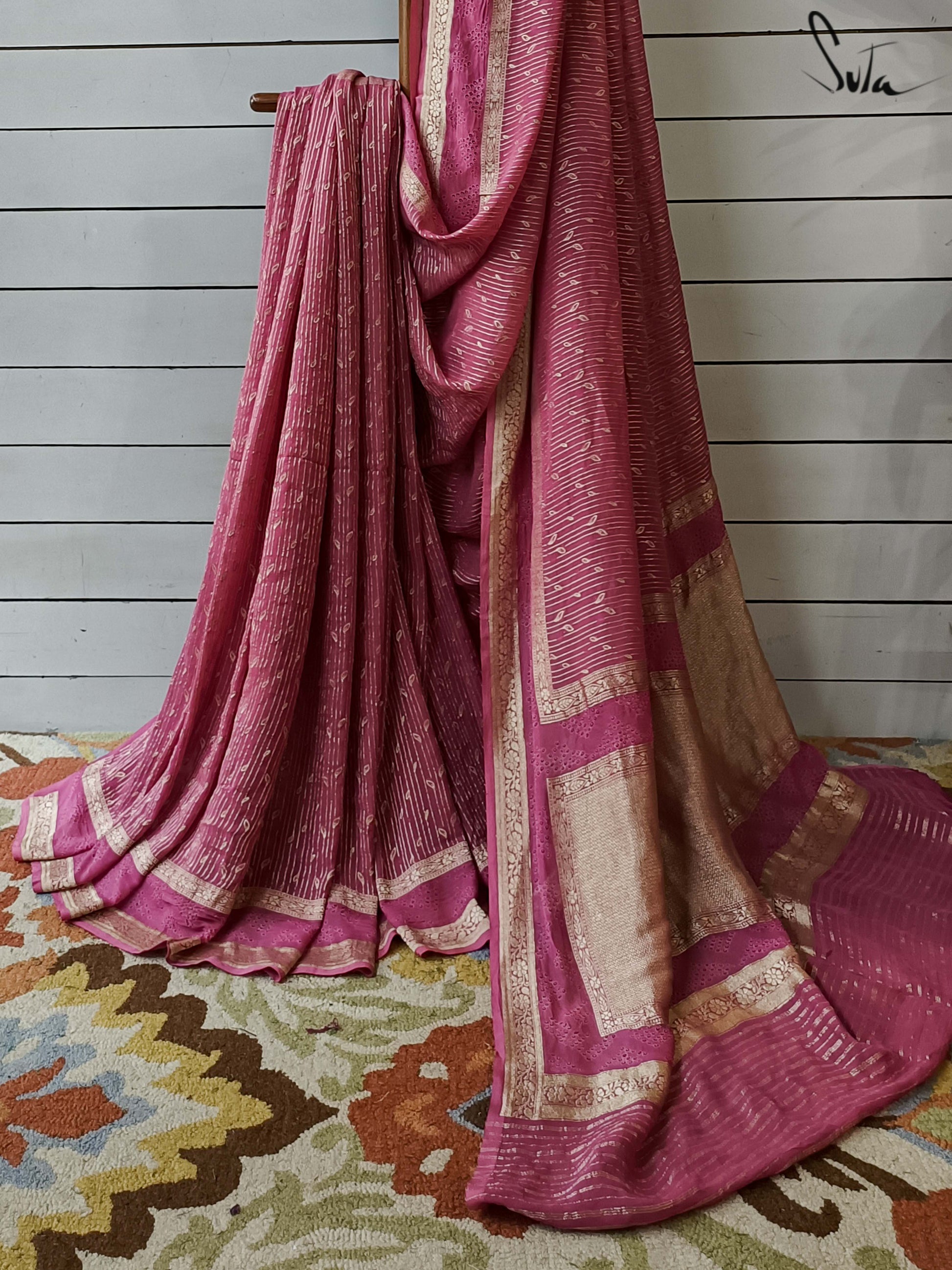 This gorgeous drape celebrates the legacy of Banarasi weaves on silk georgette.