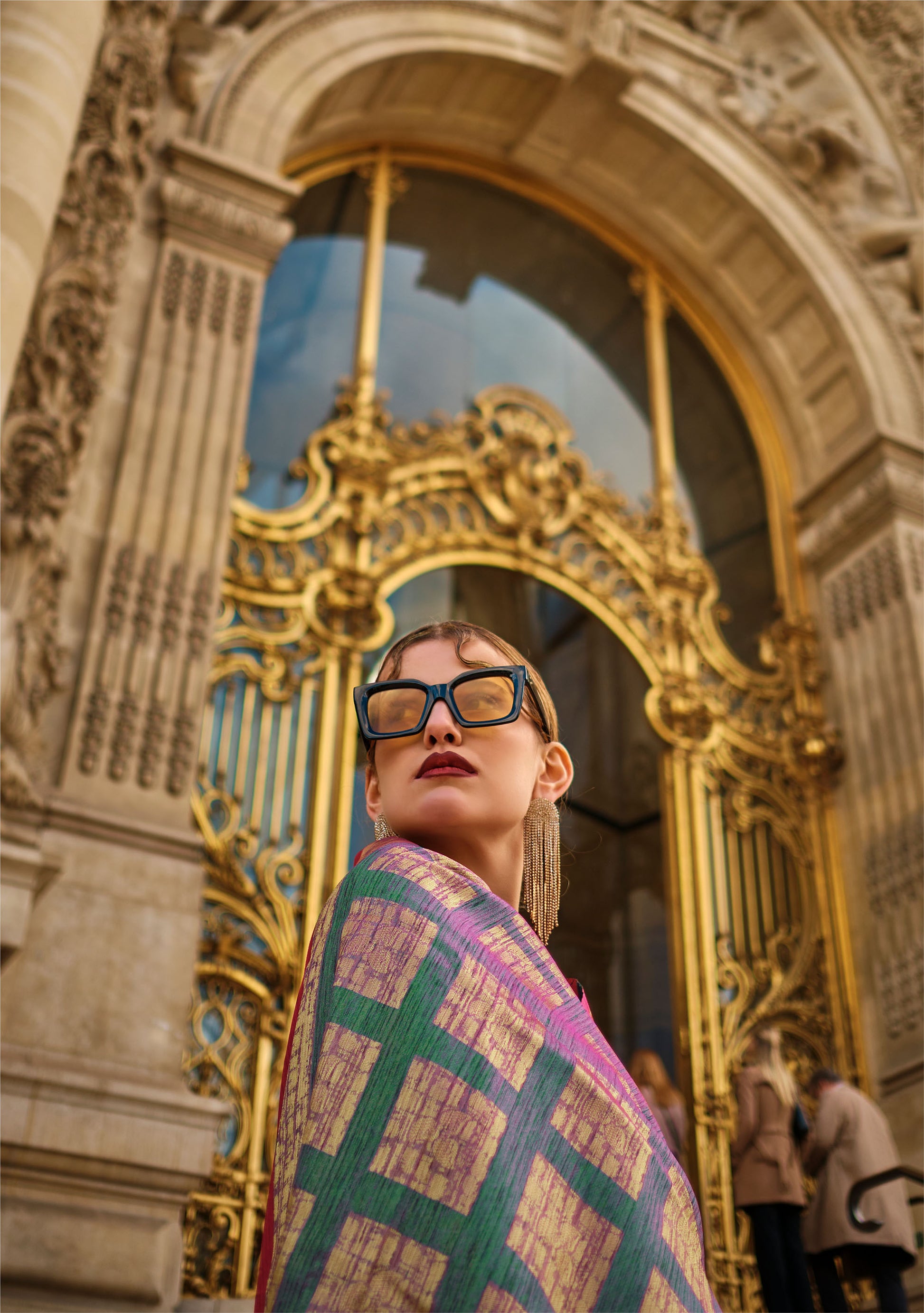 Purple Green Khwaab Handloom Khadi Silk Saree
