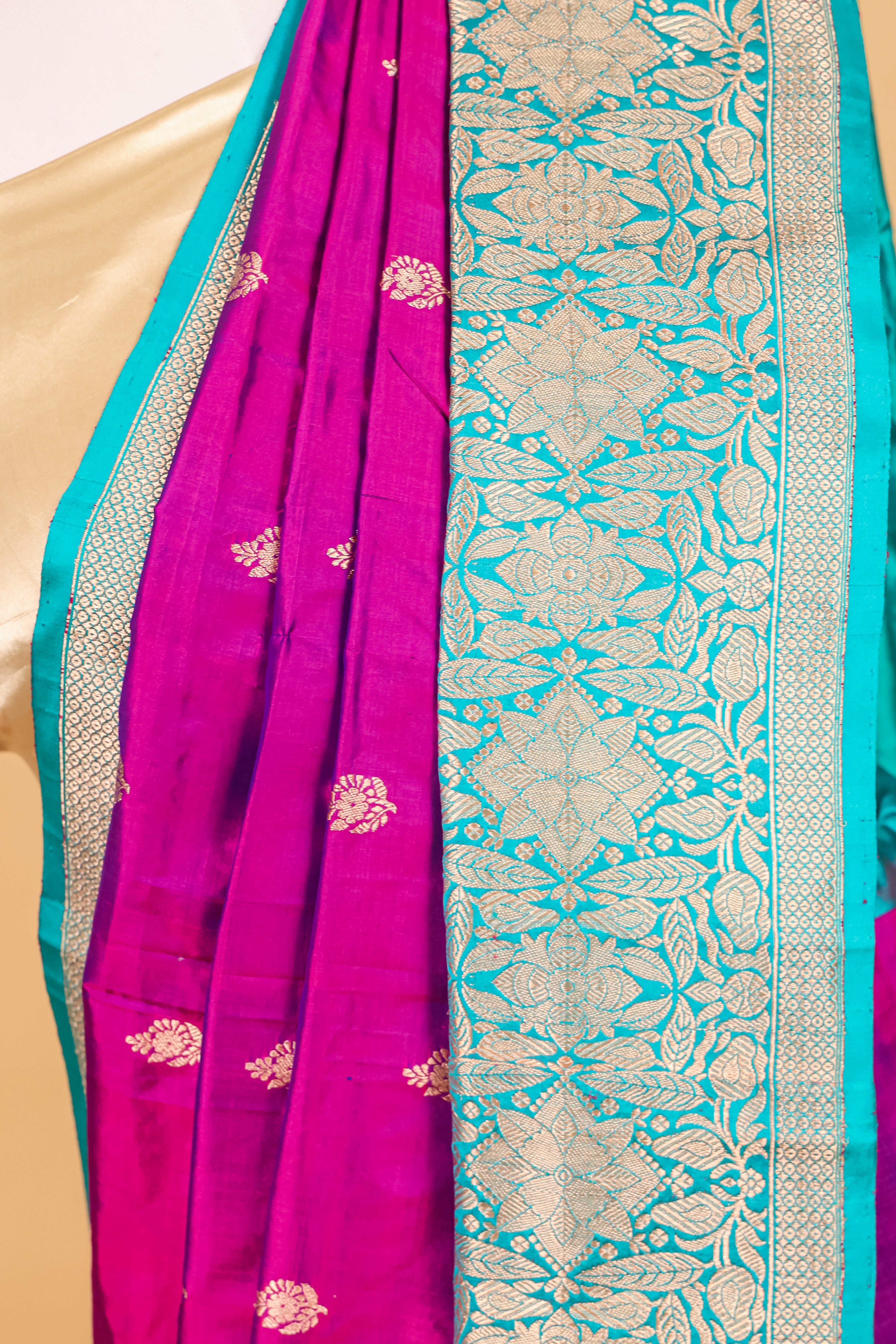 Product Description: Experience luxurious style and quality with our Purple Katan Pure Silk Kadhwa Saree. Made from premium pure silk, this saree features an elegant Booti pattern, adding a touch of sophistication to any occasion. Elevate your wardrobe with this beautiful saree, perfect for any fashion-forward individual.