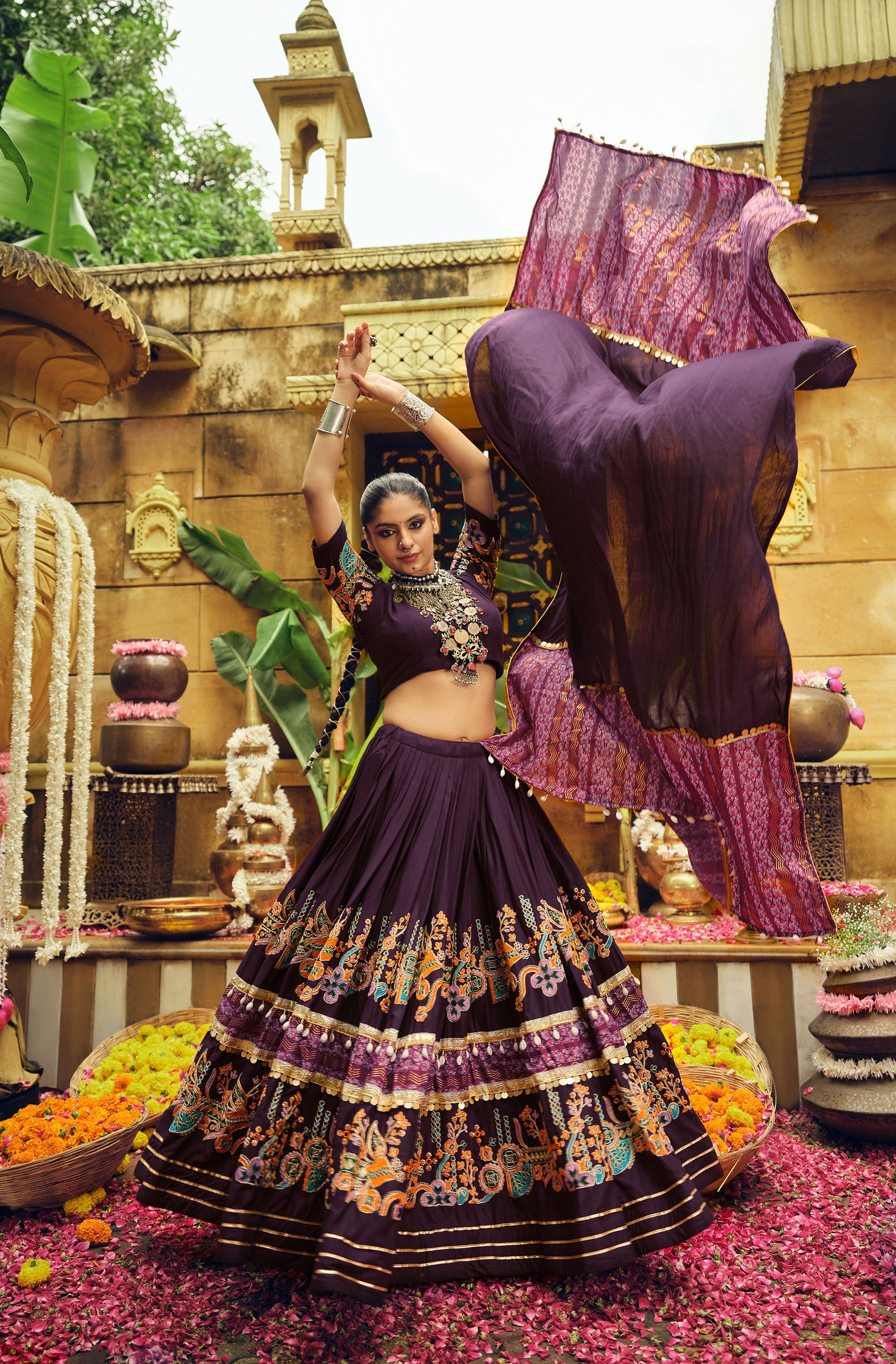 Purple Rayon Foil Printed Navratri Chaniya Choli
