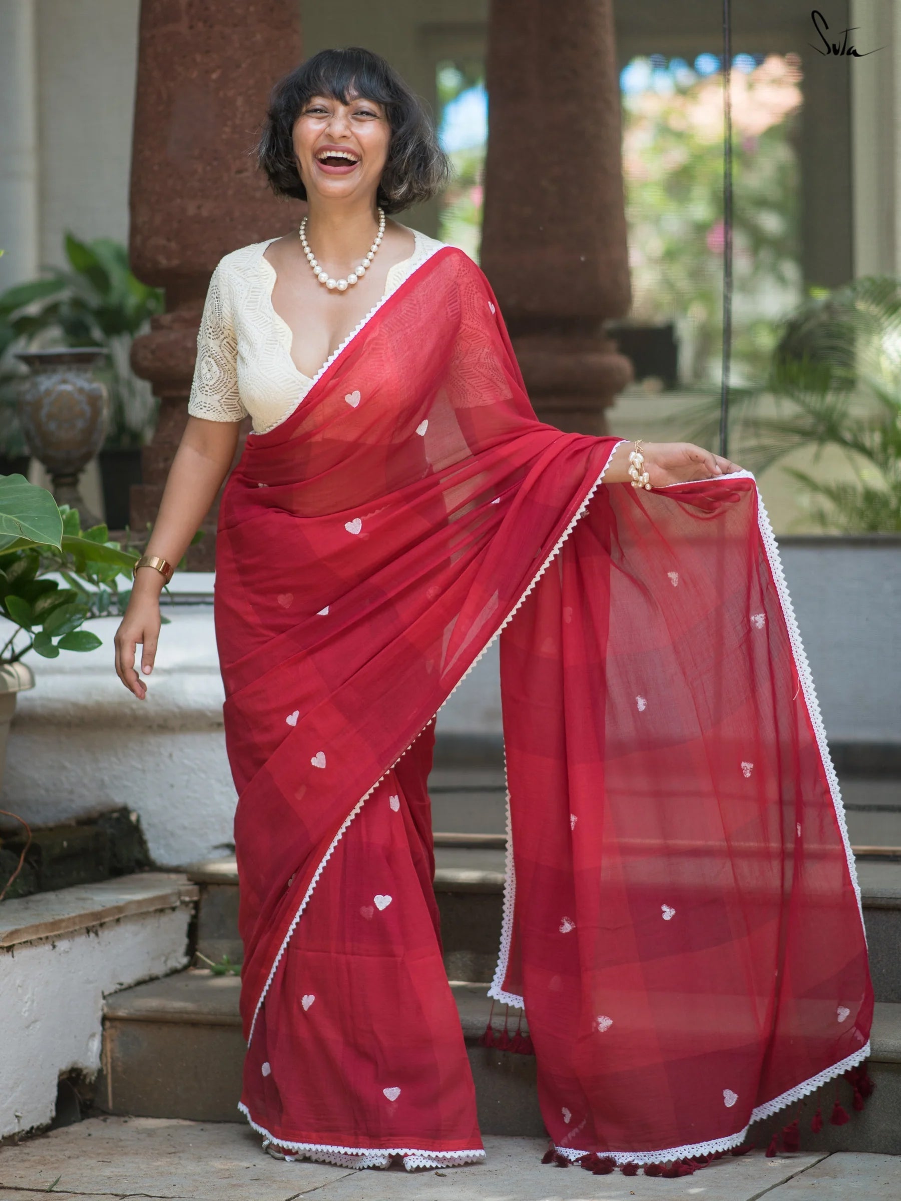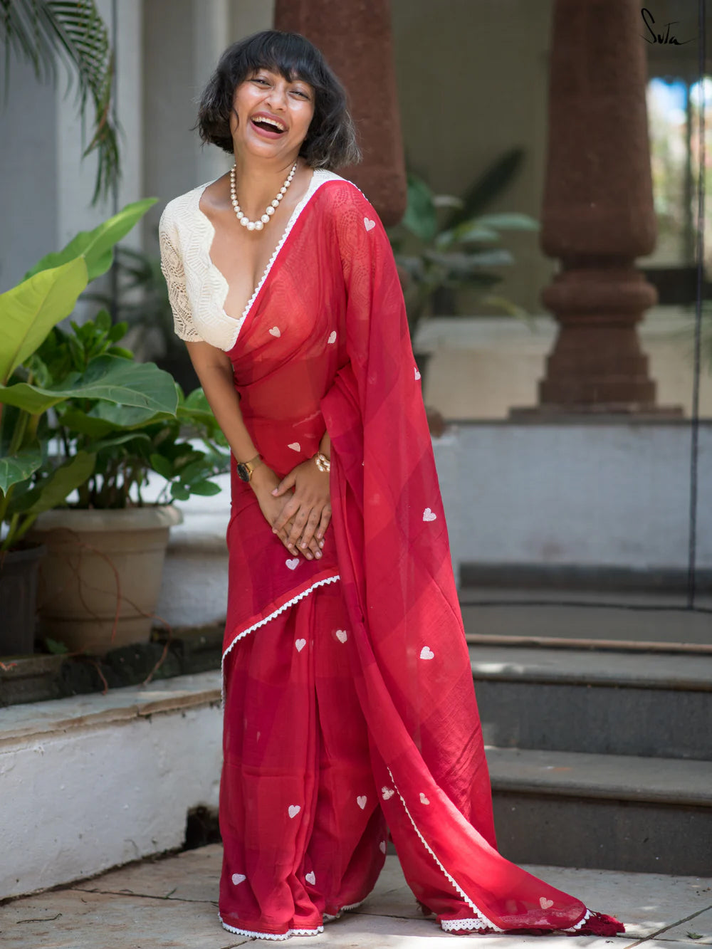 This is a made-in-heaven mul saree. The mul cotton is what we call ˜made in heaven at Suta. Known in West Bengal as mul mul, the fabric is buttery soft, flowy and delicately beautiful. This fine 100% cotton weave of a fabric is extremely fluid! It is also very light and feels like second skin. It is very practical as summer attire and dries easily in monsoons as well! With the right care, it becomes softer and softer with every wash and truly feels like a hug that wraps you in its love!