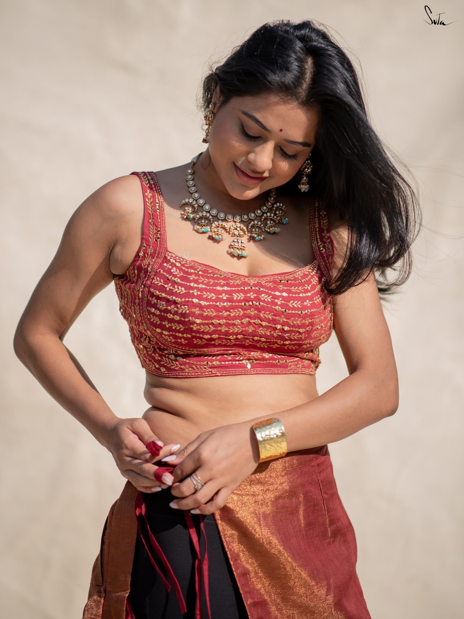 Blouse: Su, the model is wearing size S of the blouse called Rojonigondha