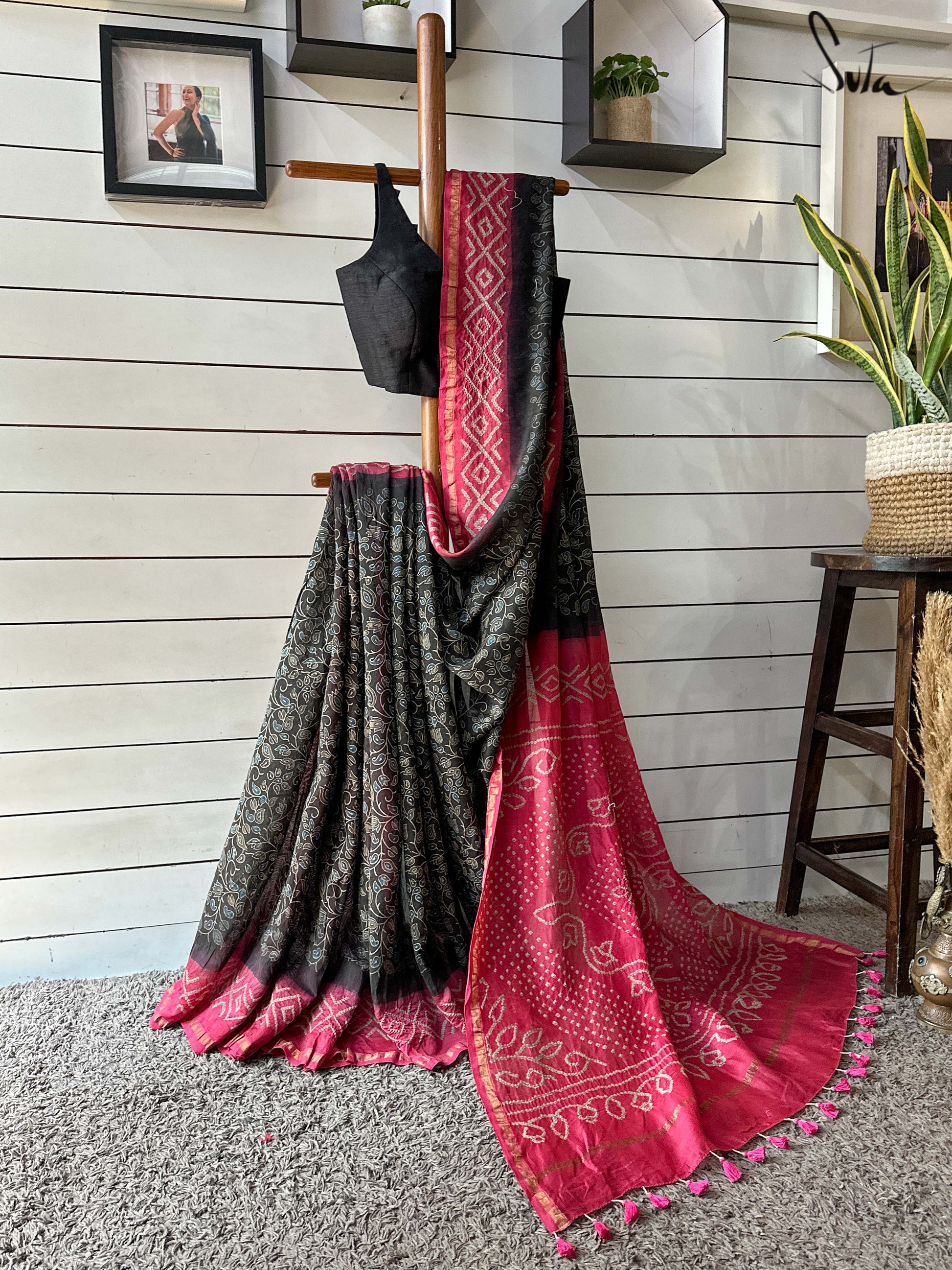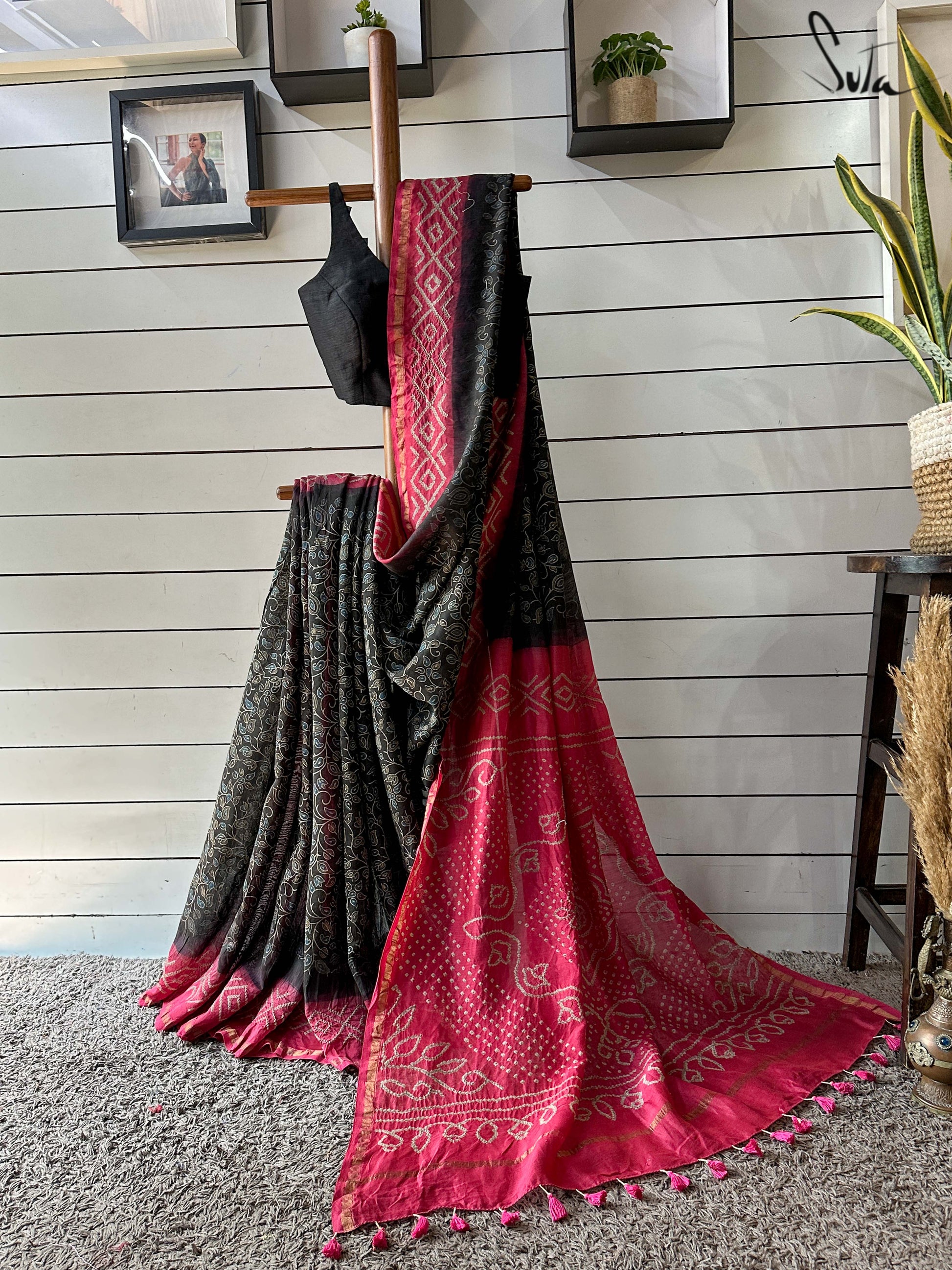 Fabric: Chanderi body ajrak bandhani Silk Georgette with Zari