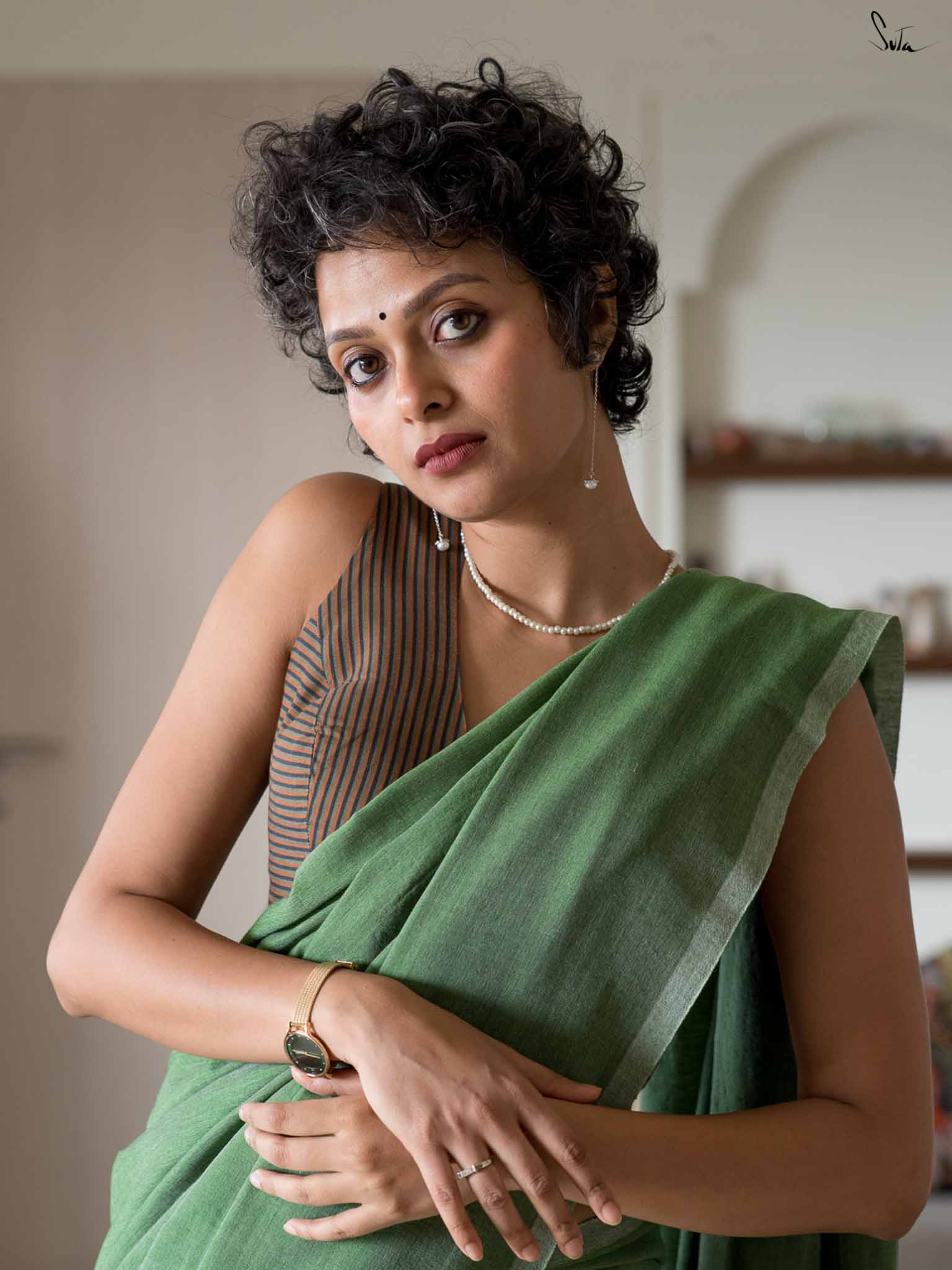 Cotton fabric dates back to some of the most ancient civilisations and it has a strong presence in the modern wardrobe as well. The softness and lightness of cotton combined with its strength and versatility makes it one of the most popular choices, especially for the Indian climate. We took this simple, elegant fabric and combined it with acrylic for that added sheen and voila! We love what we see and the saree falls so beautifully that it feels like second-skin!