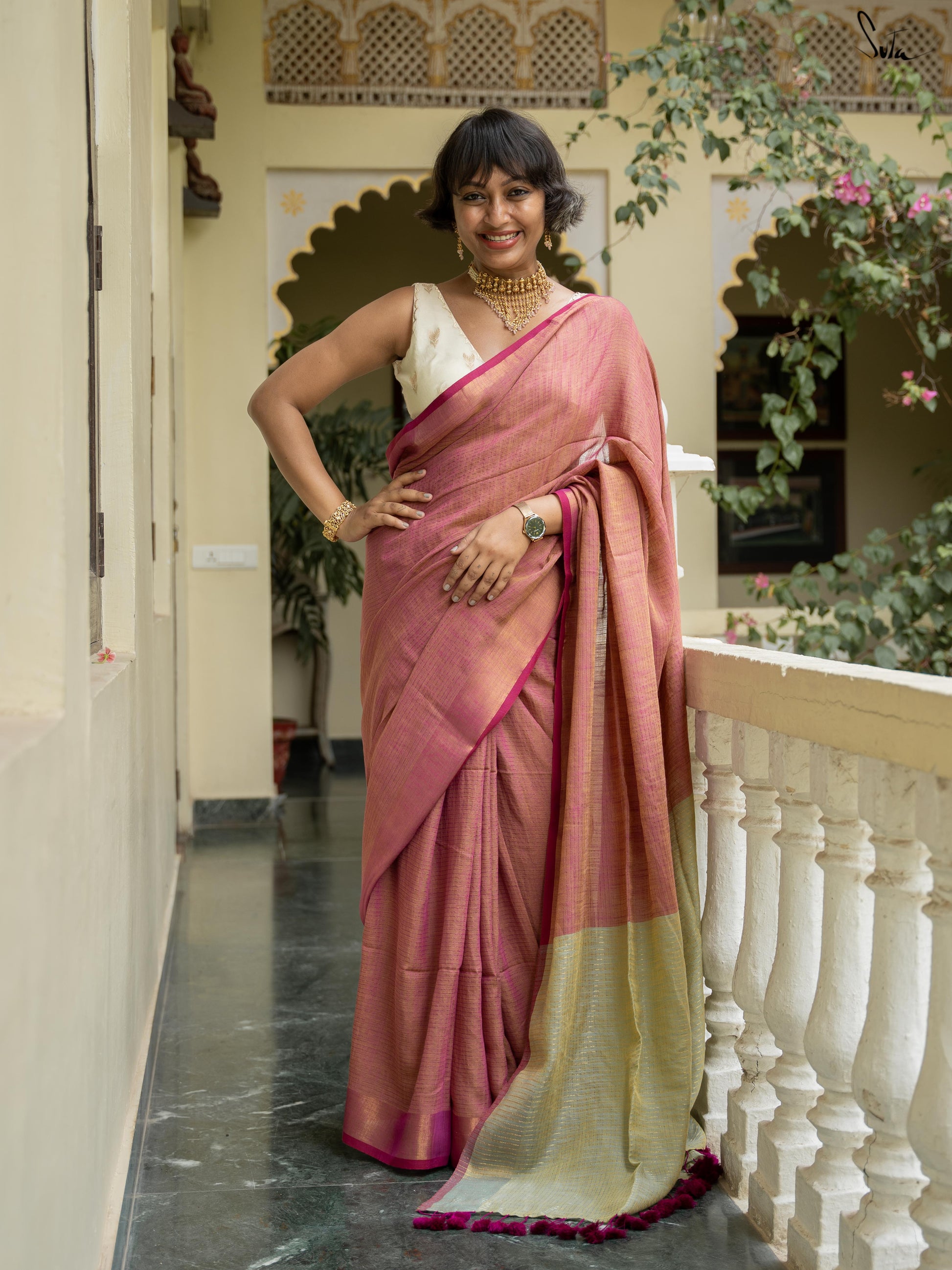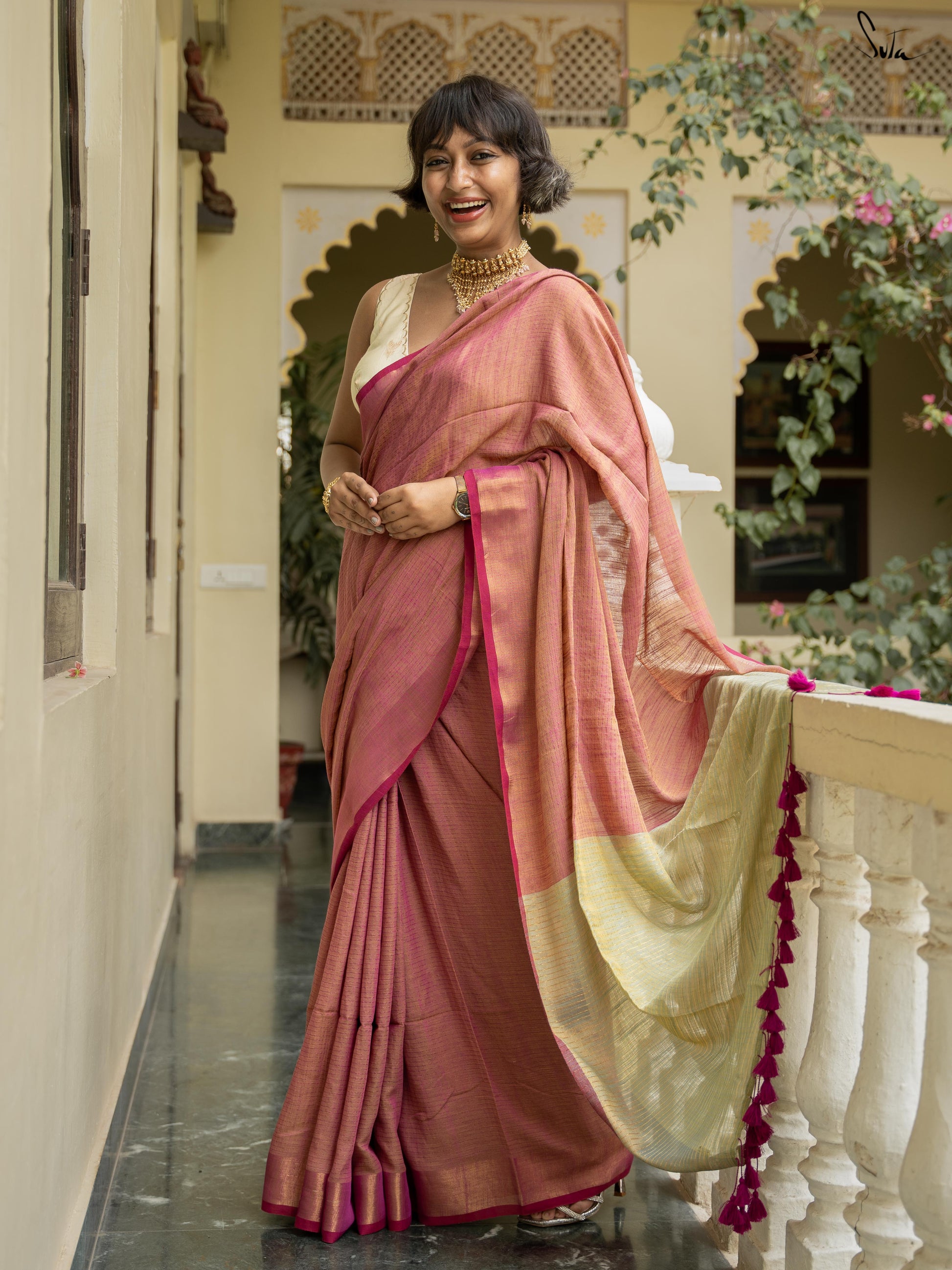 embracing the beauty within and honoring her love for drapes. This festive season let your beauty glow like the moon with Suta