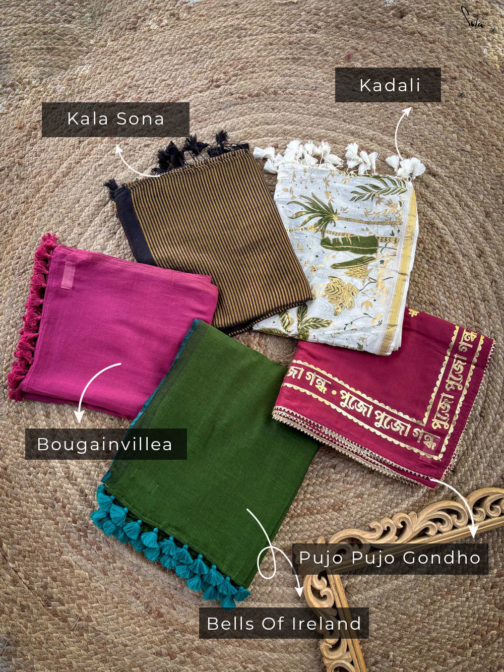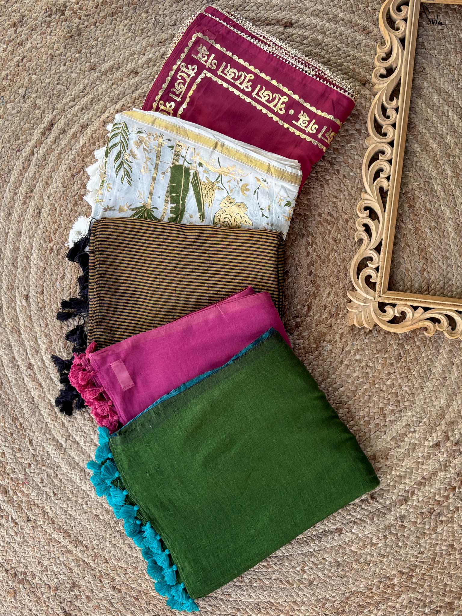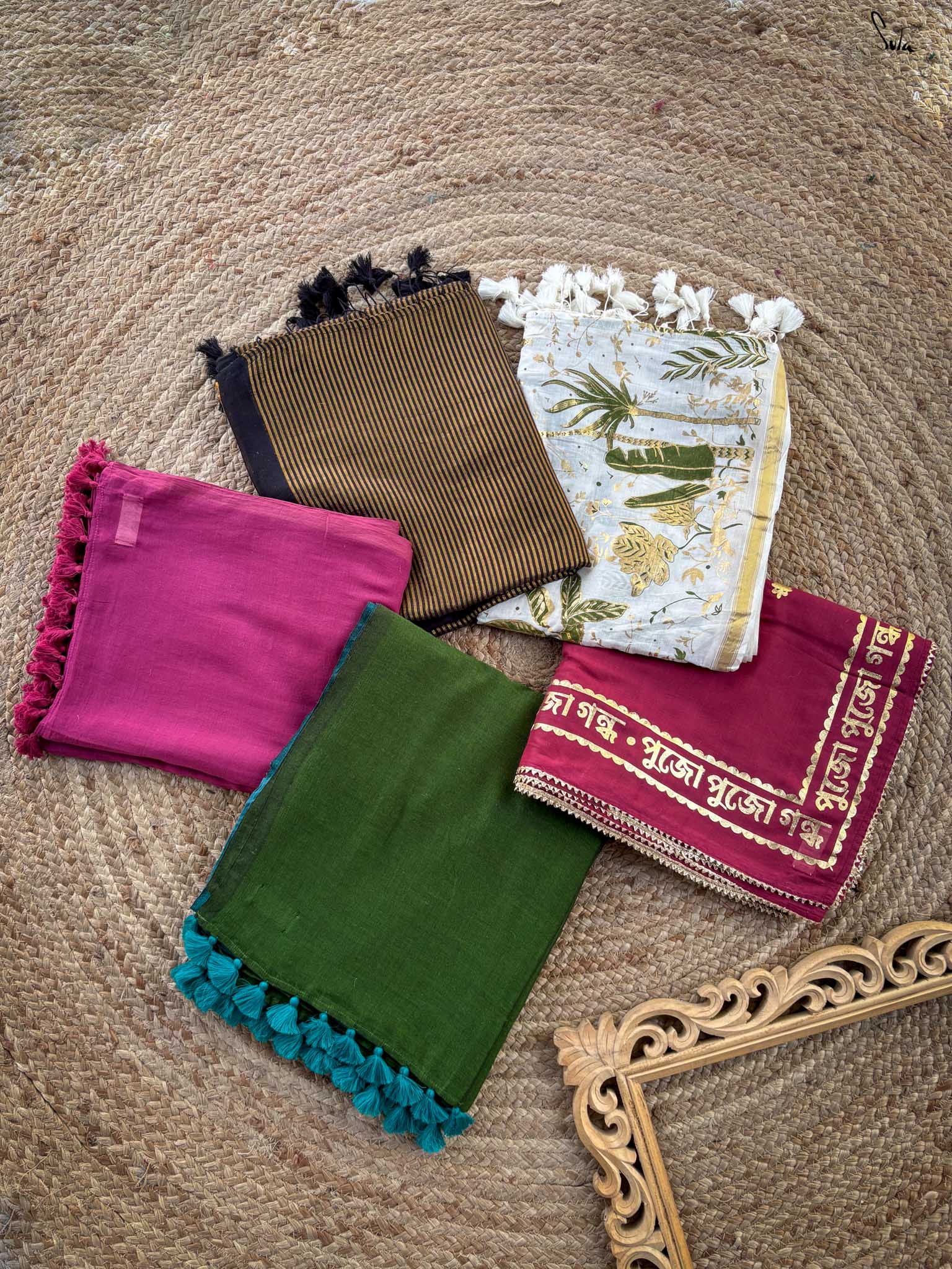 Illuminate every occasion you step into with our breathtaking "Ravishing Radiance" saree combo! This striking collection of 5 sarees, crafted from a diverse set of fabrics, adds a sparkling effect to your everyday fashion. Each saree is designed to perfectly complement the grandeur of every festive event, with vibrant colors, intricate designs, and a touch of luxury.
