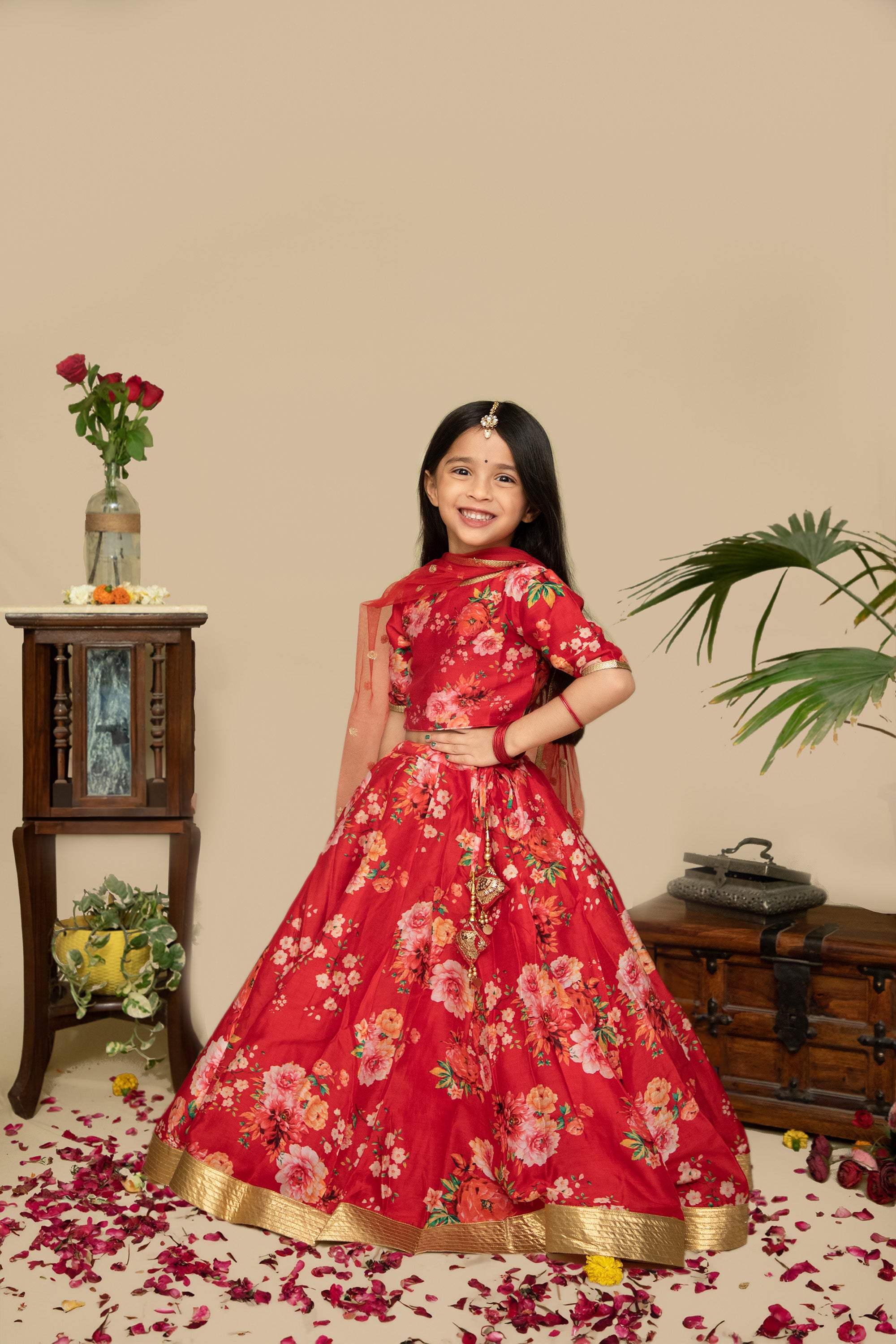Red Floral kids Lehenga