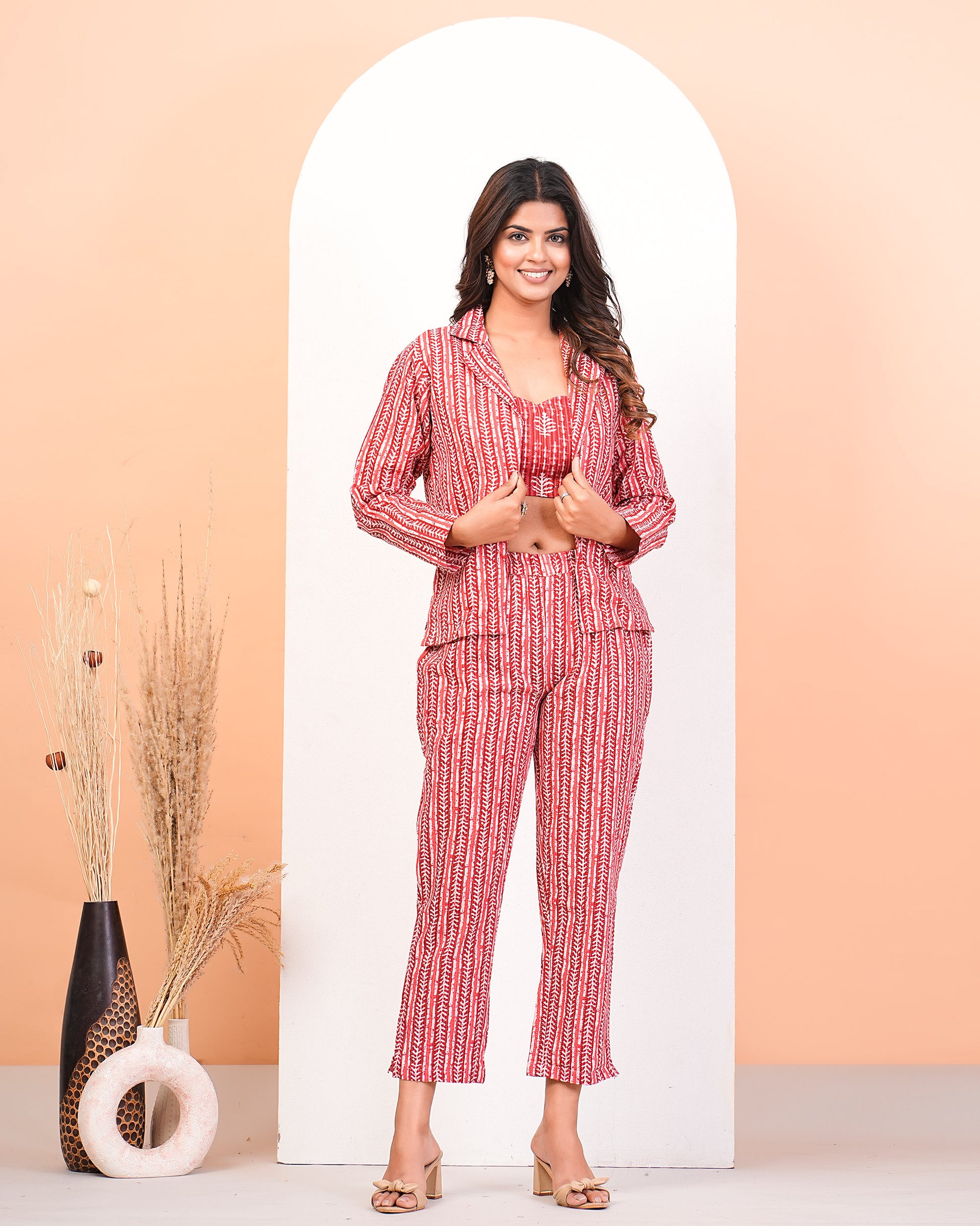 Red Katha Cotton Screen Printed Co-Ors Set