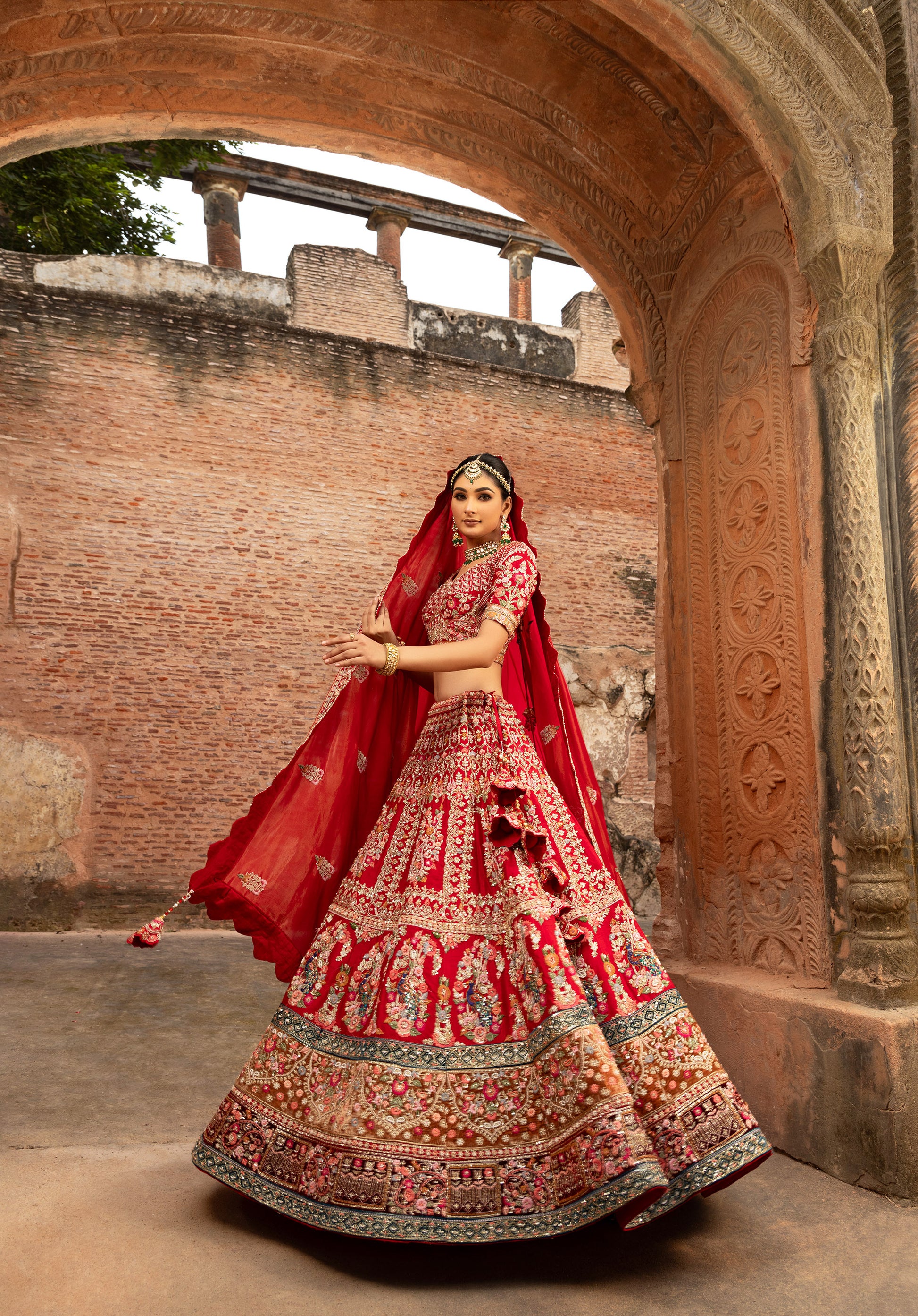 Red Rajasthani Zardozi Work Silk Bridal Lehenga