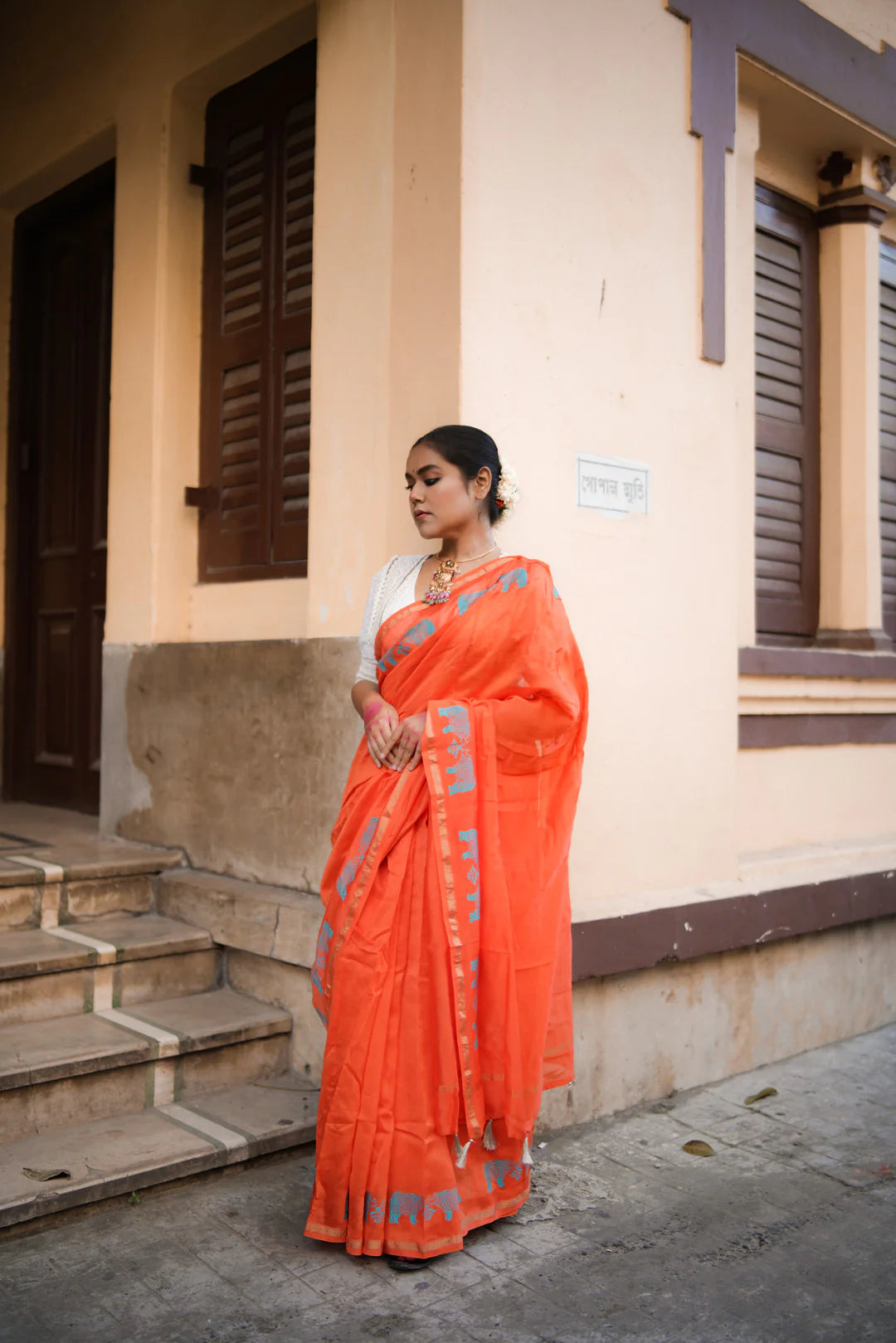 Rhino Dawn Orange Chanderi Handloom saree