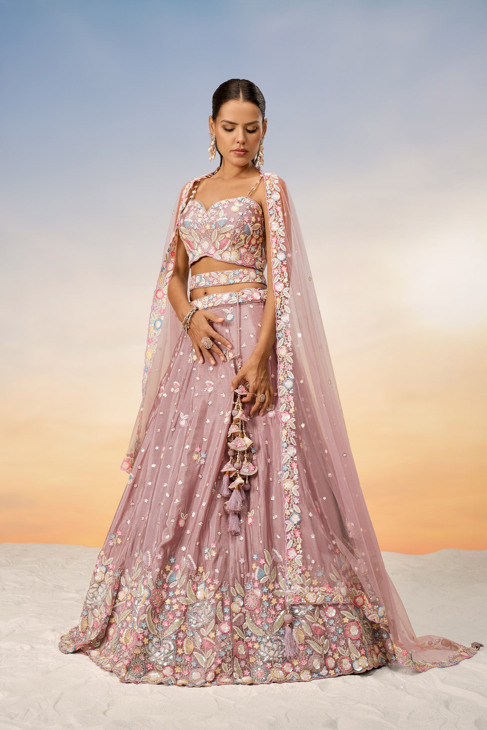 Rose gold Chiffon Sequins and thread embroidery Lehenga Choli
