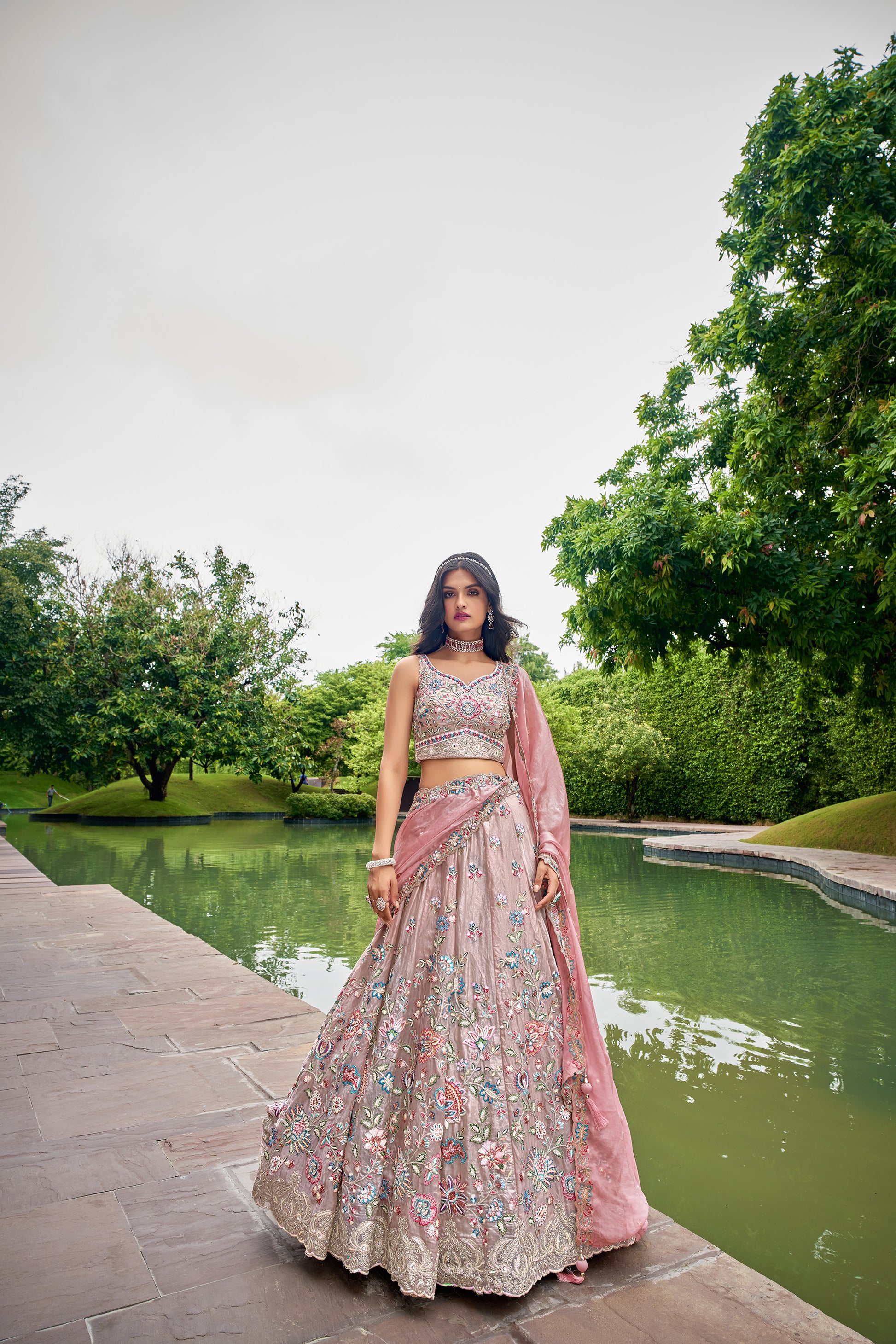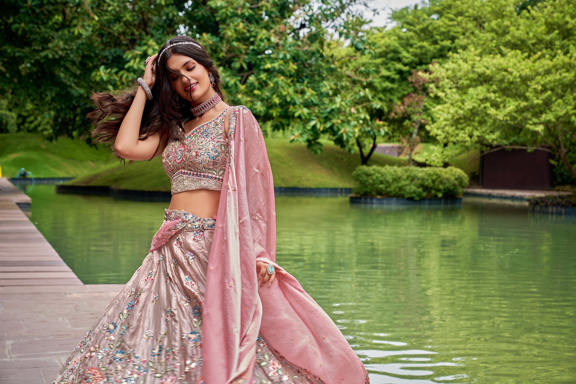 Rose gold Organza Sequins & Mirror work Bridesmaid Lehenga set