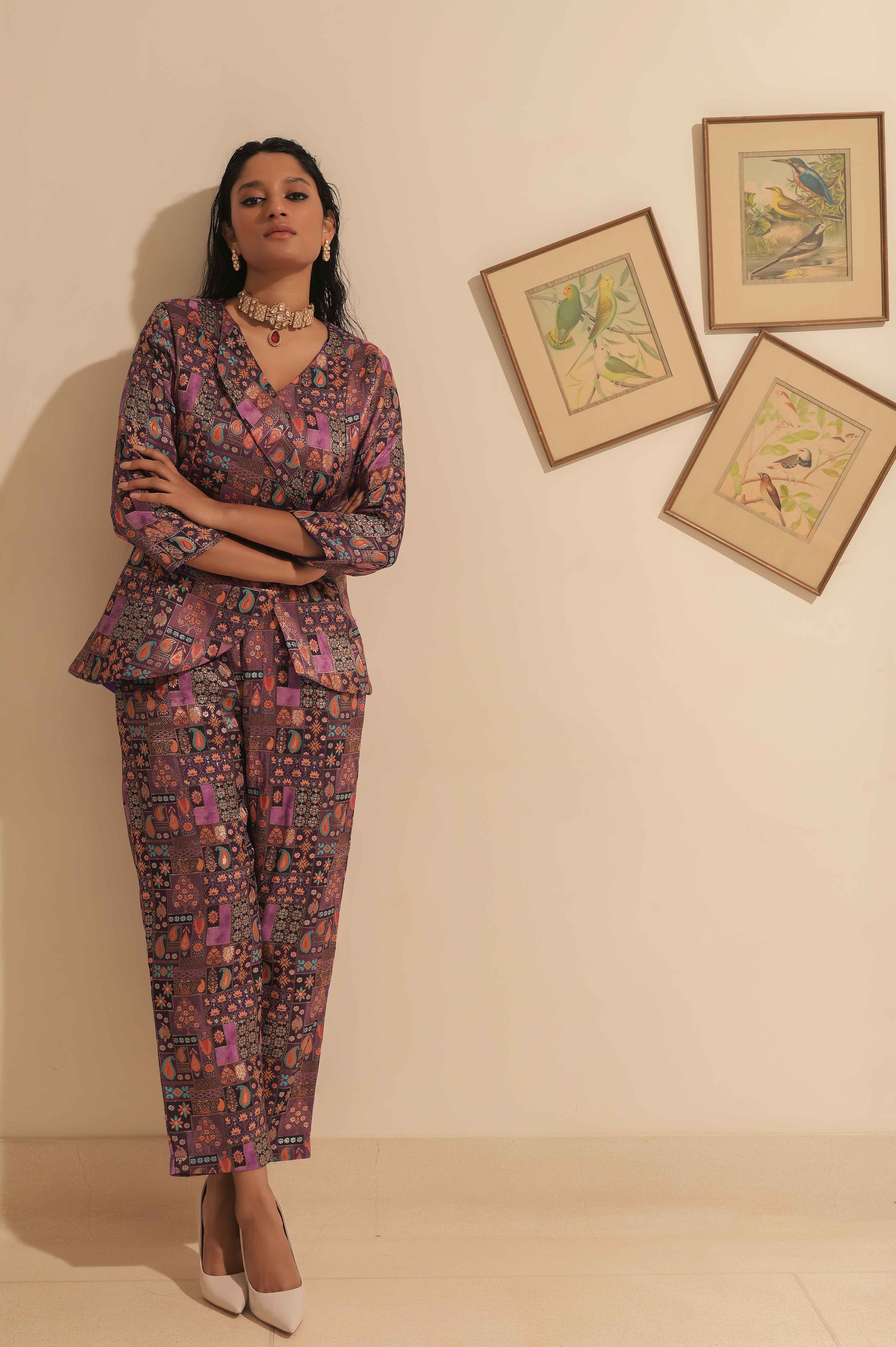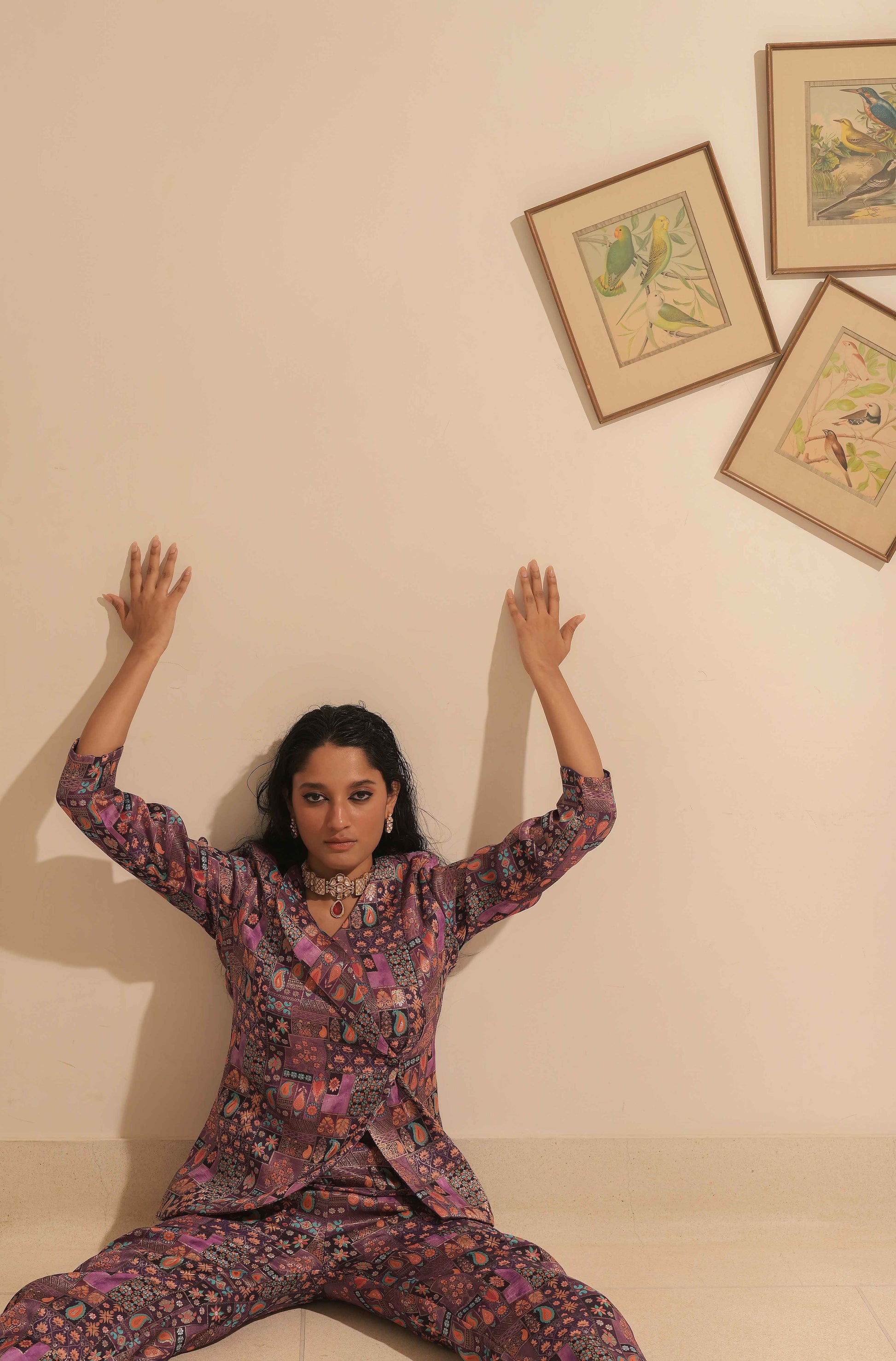 Command attention in a Royal Plum Brocade A-line Blazer with Pants. Featuring a deep plum hue and intricate brocade detailing, this outfit exudes sophistication and A-line cut flatters your figure. The matching pants complete this sophisticated set, perfect for a wedding reception or a formal dinner party.