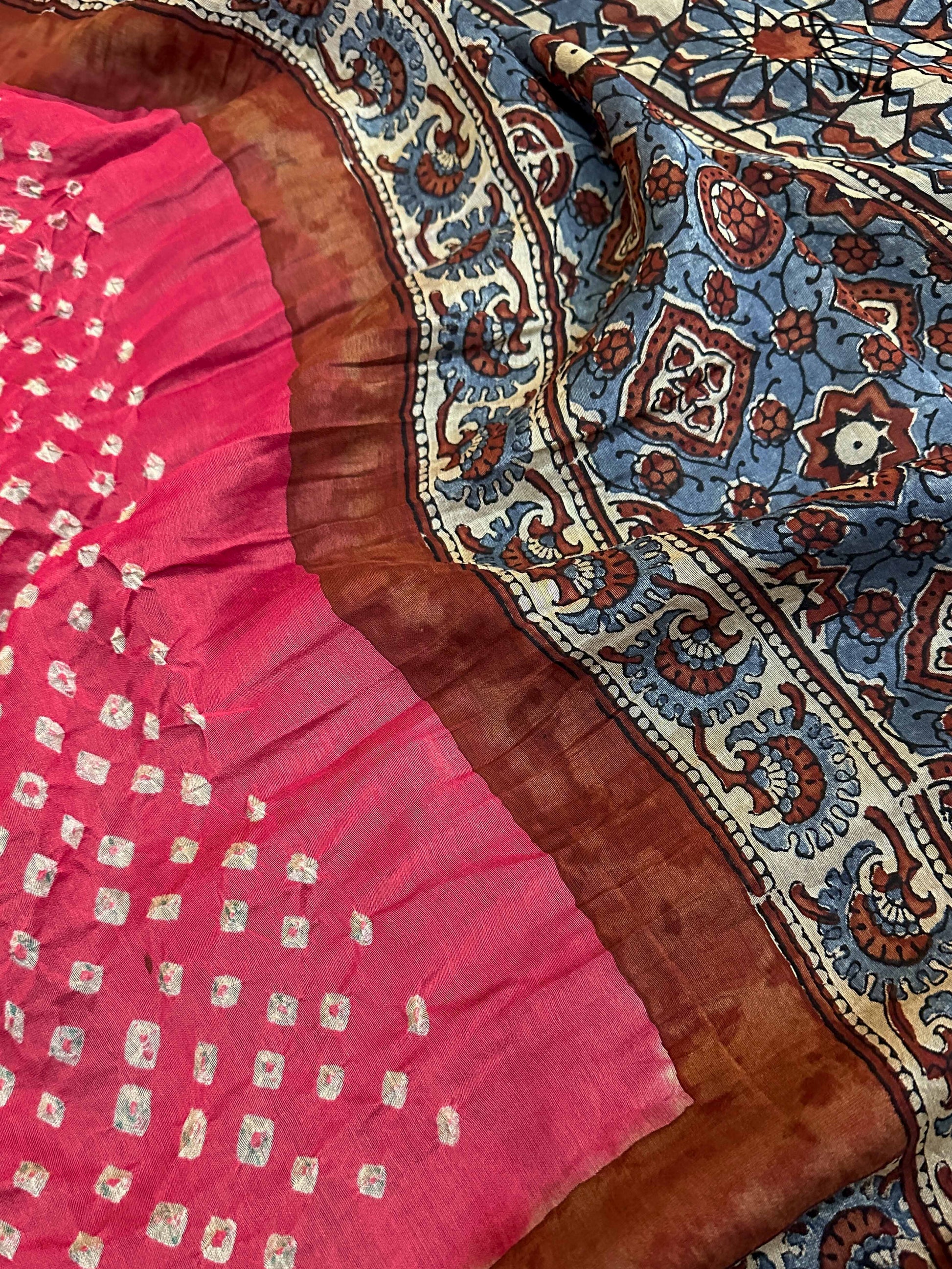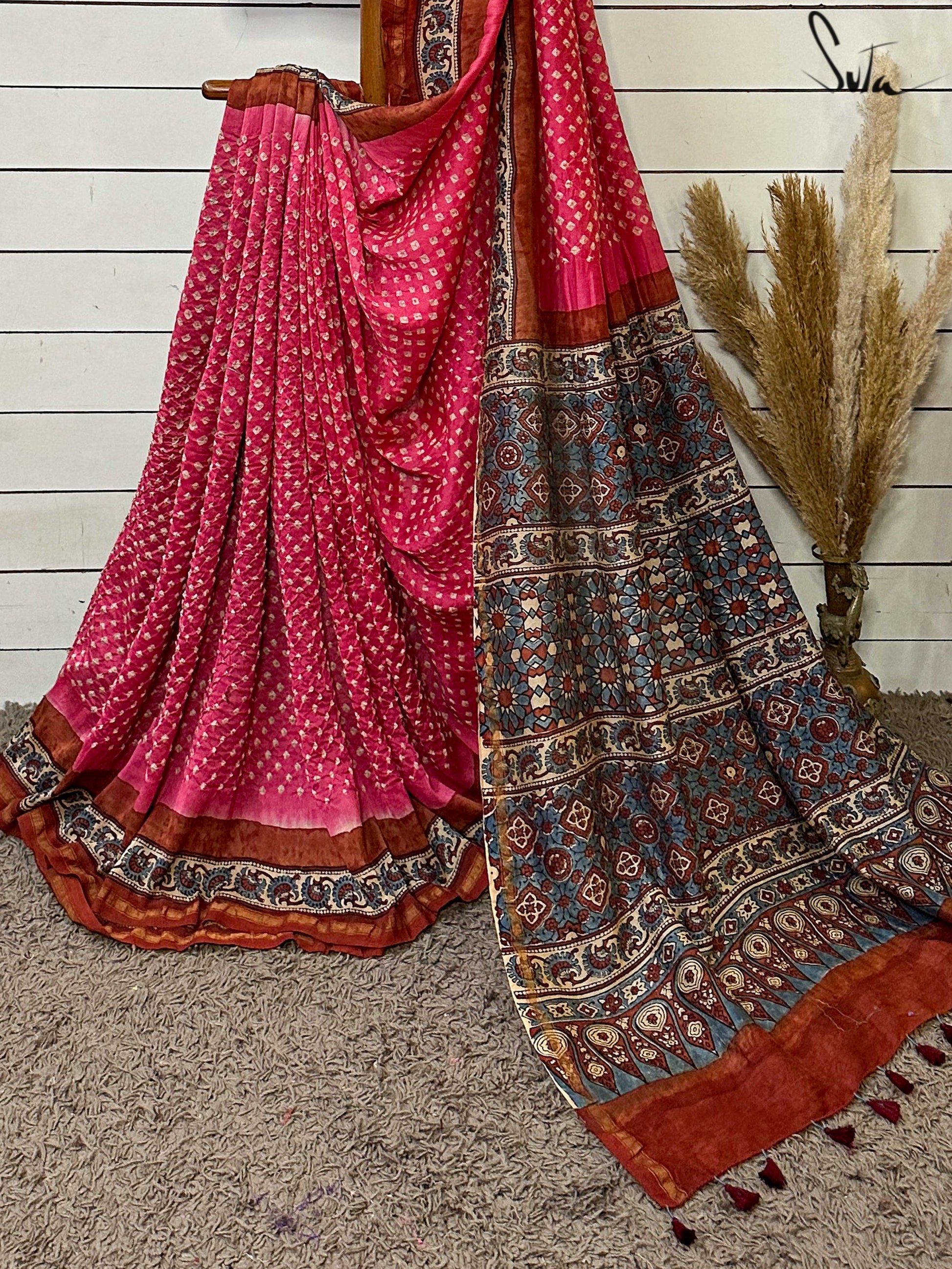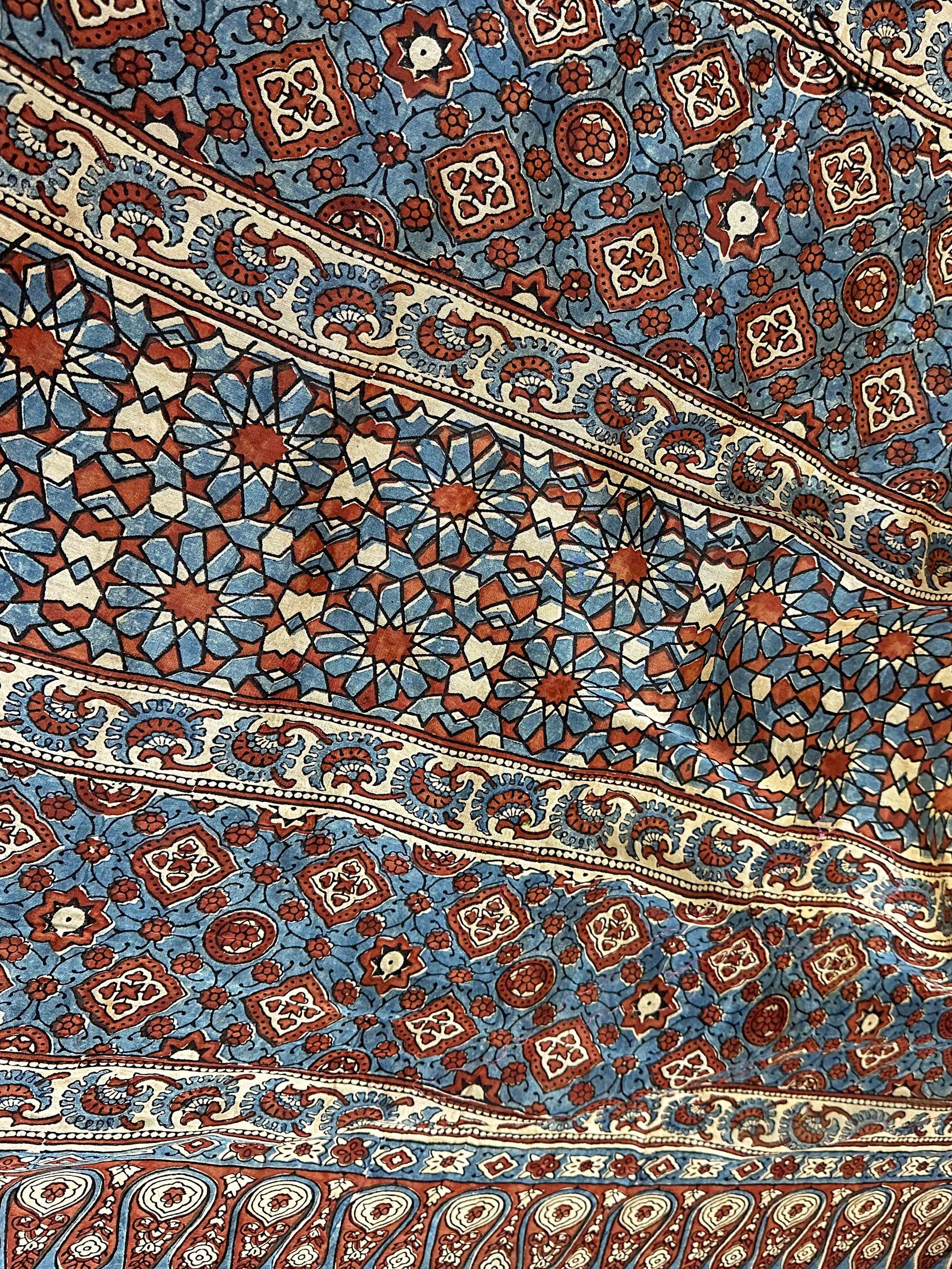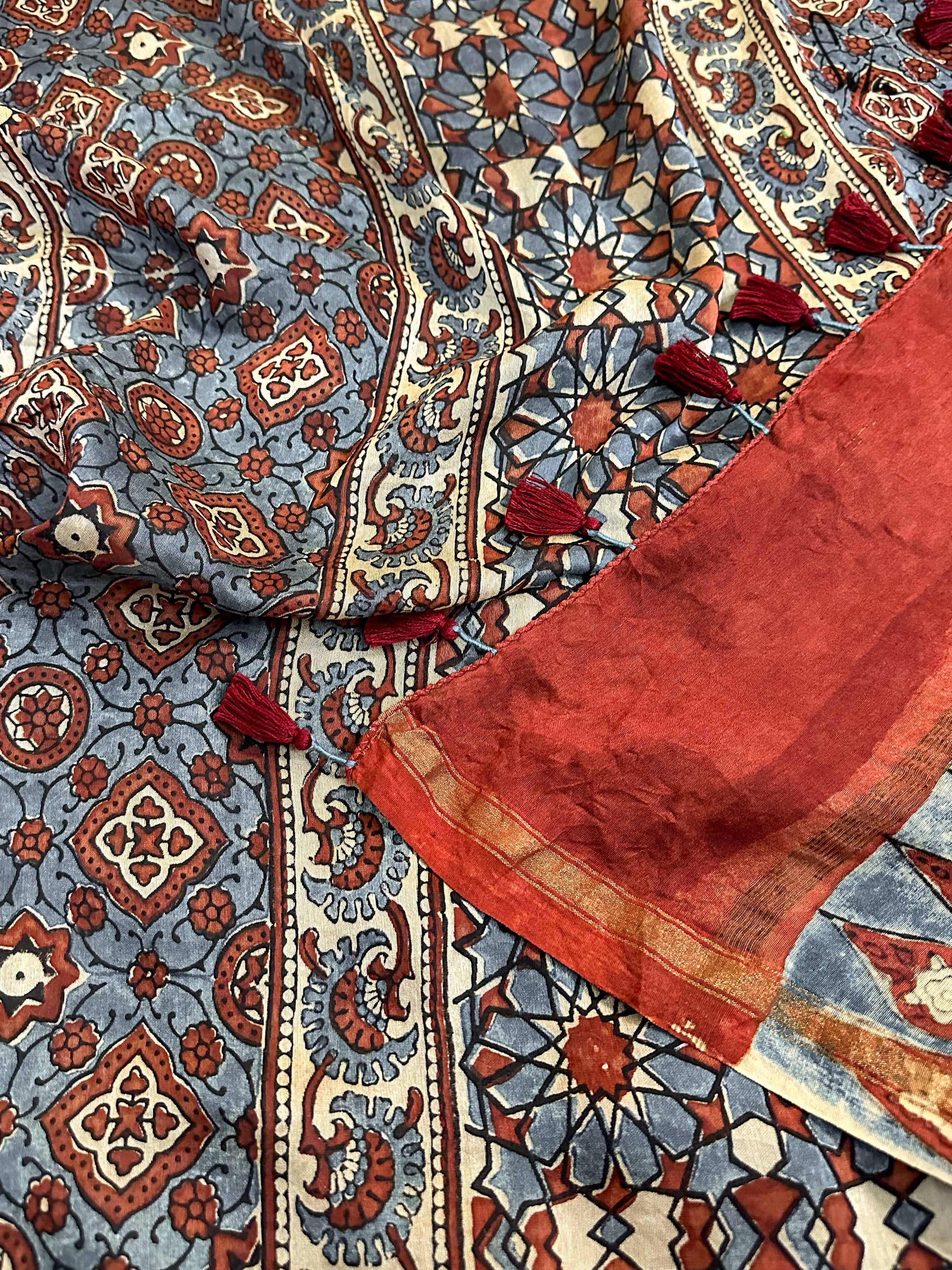 Pallu, border and blouse piece is ajrakh