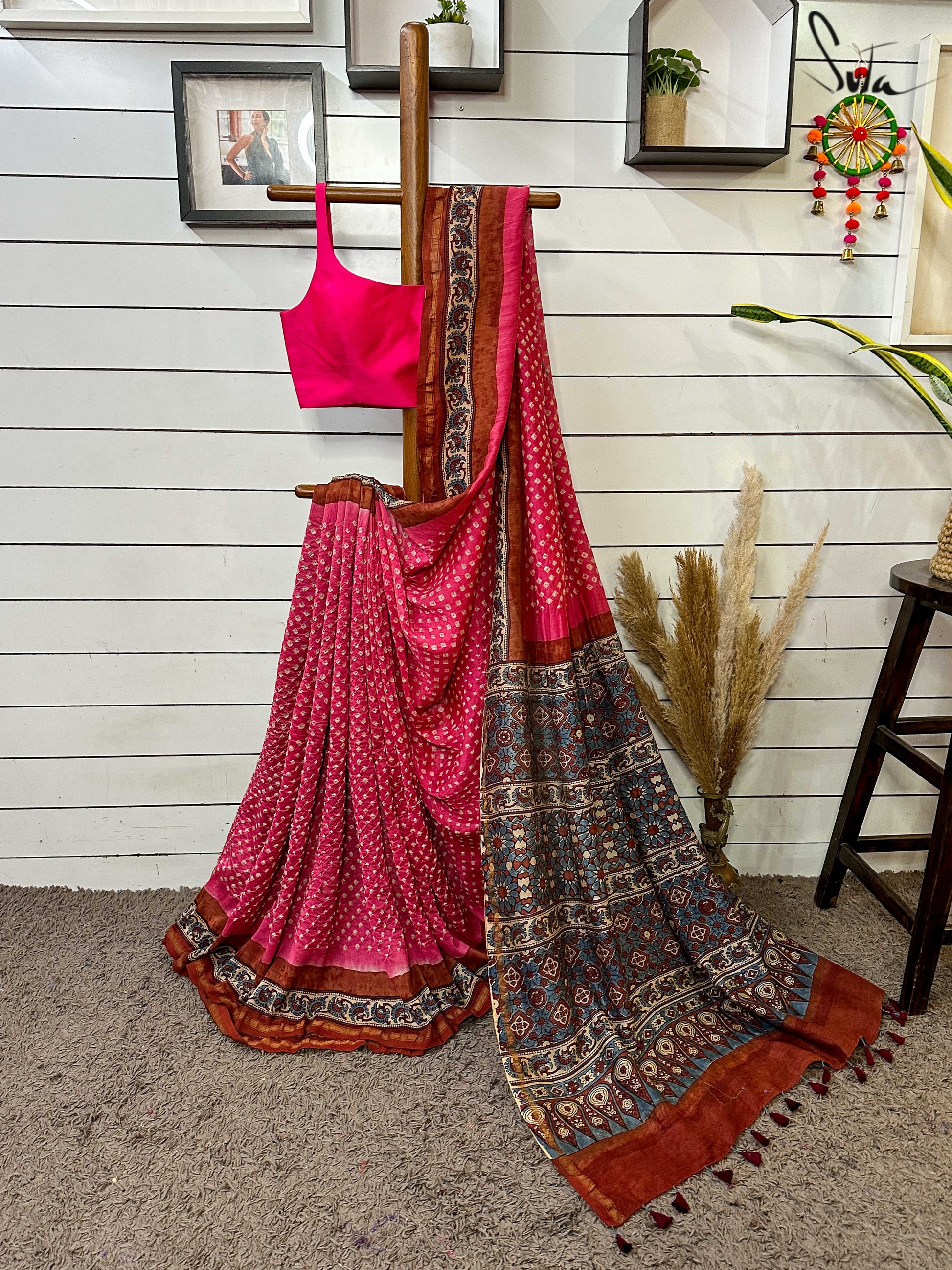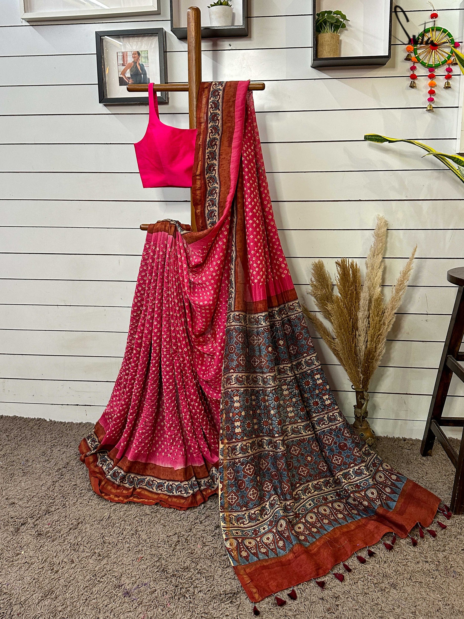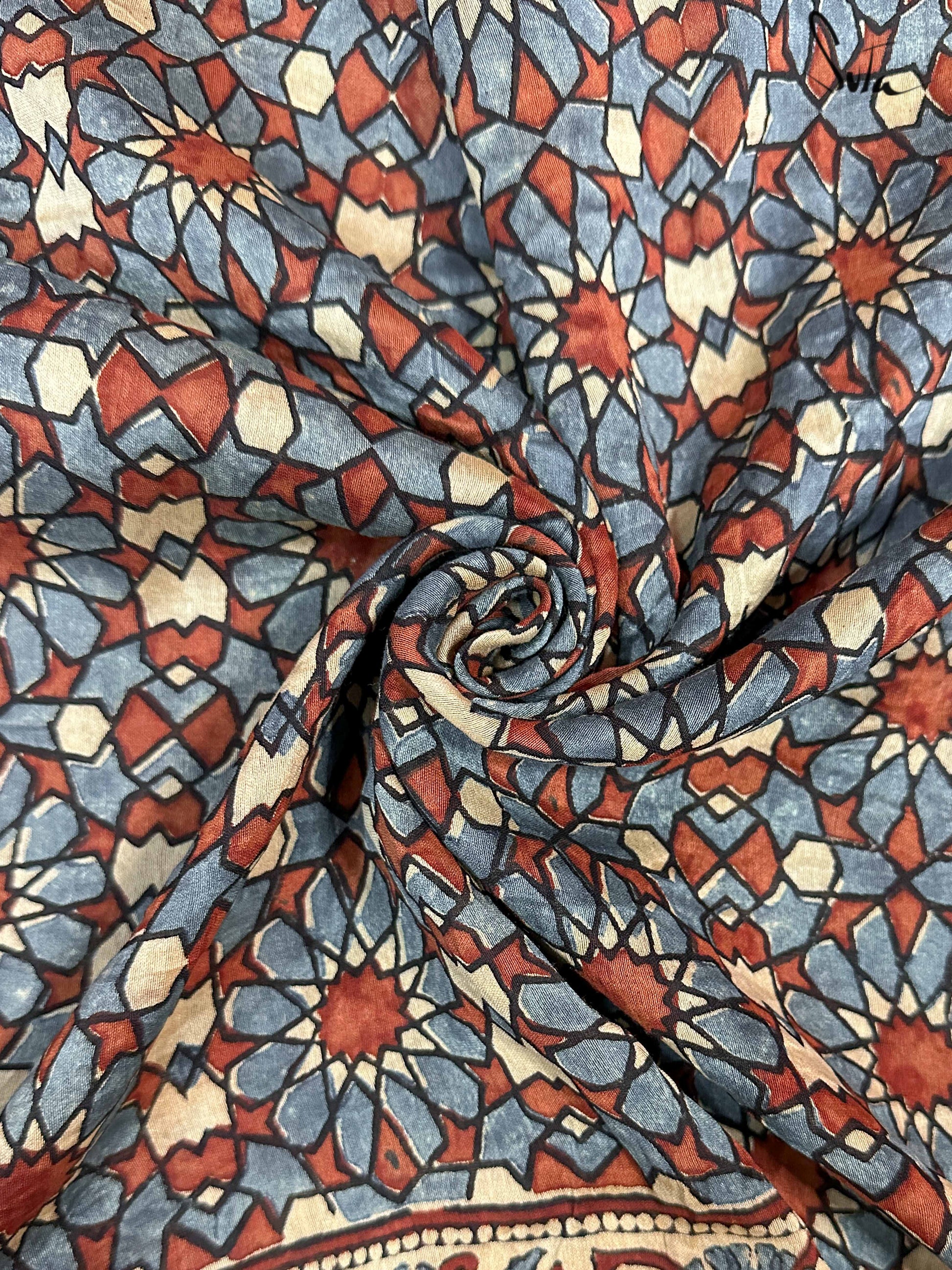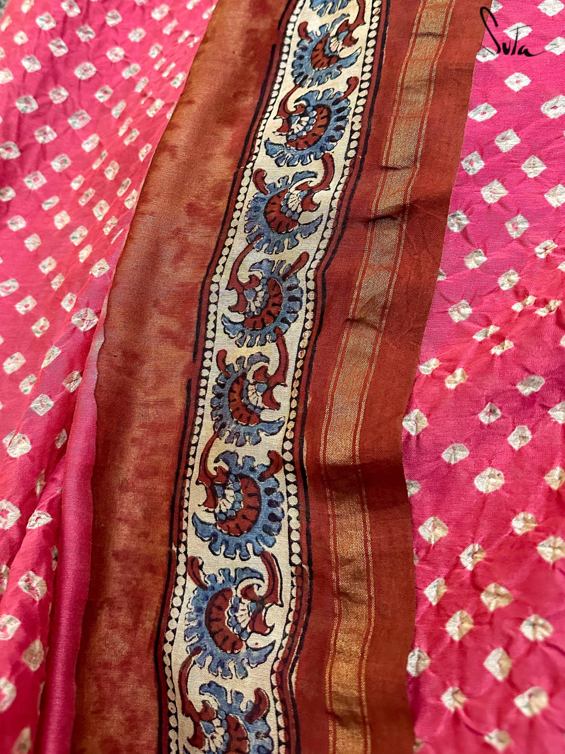 Pallu, border and blouse piece is ajrakh