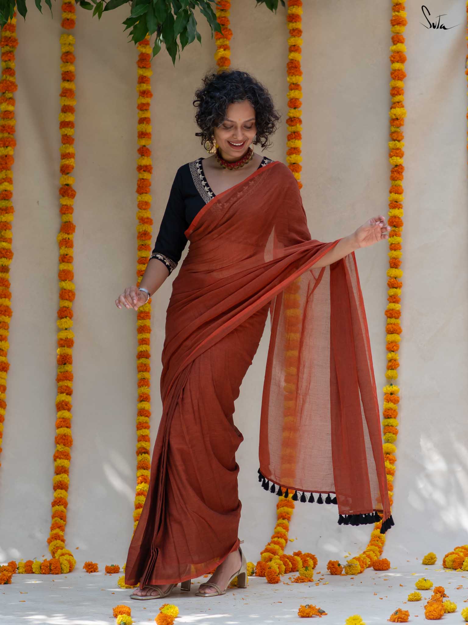 The mul cotton is what we call ˜made in heaven at Suta. Known in West Bengal as mul mul, the fabric is buttery soft and delicately beautiful. The weave of this fabric is very fine, and this lends a very fluid texture to it that makes draping it a breeze. It is truly like a hug that wraps you in its love!