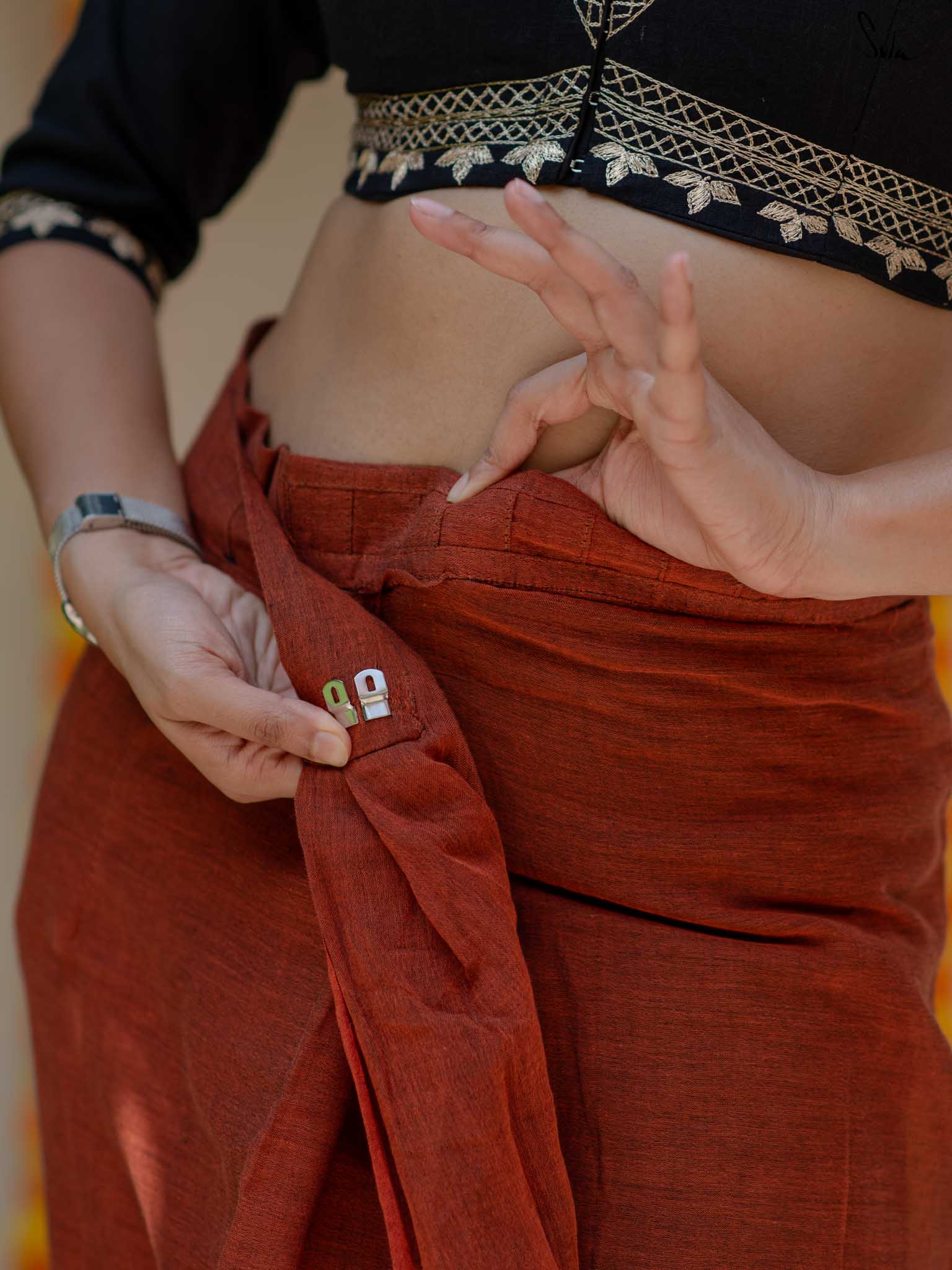 These ready-to-wear sarees feature attached underskirts and handy pockets. Simply slip it on and style it in three easy steps for a stunning look in just 30 seconds. Perfect for any occasion, these sarees combine traditional charm with modern functionality. Get ready to turn heads without the hassle.