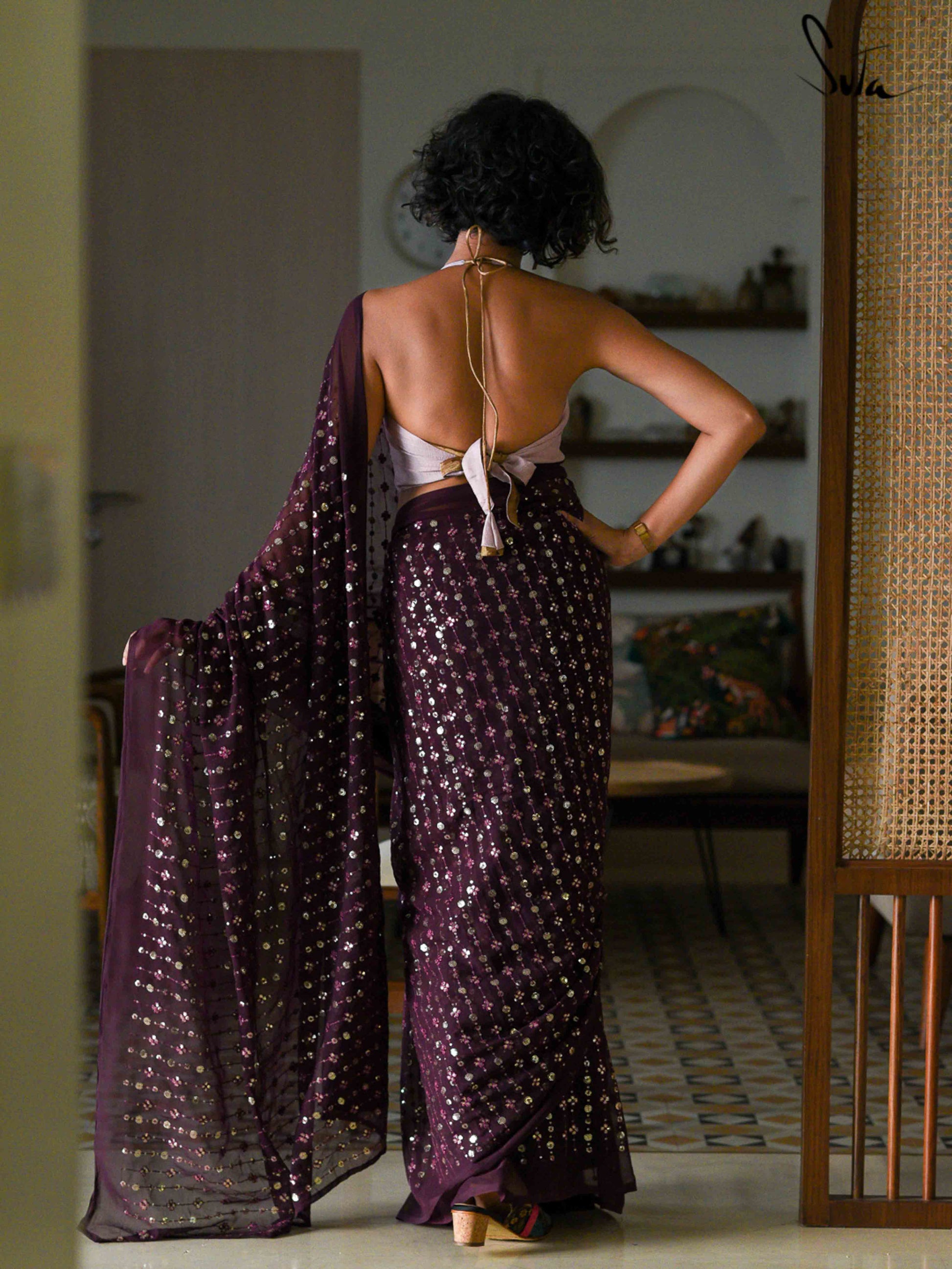 Blouse: The model is wearing XS size blouse called Kanchan Kusum