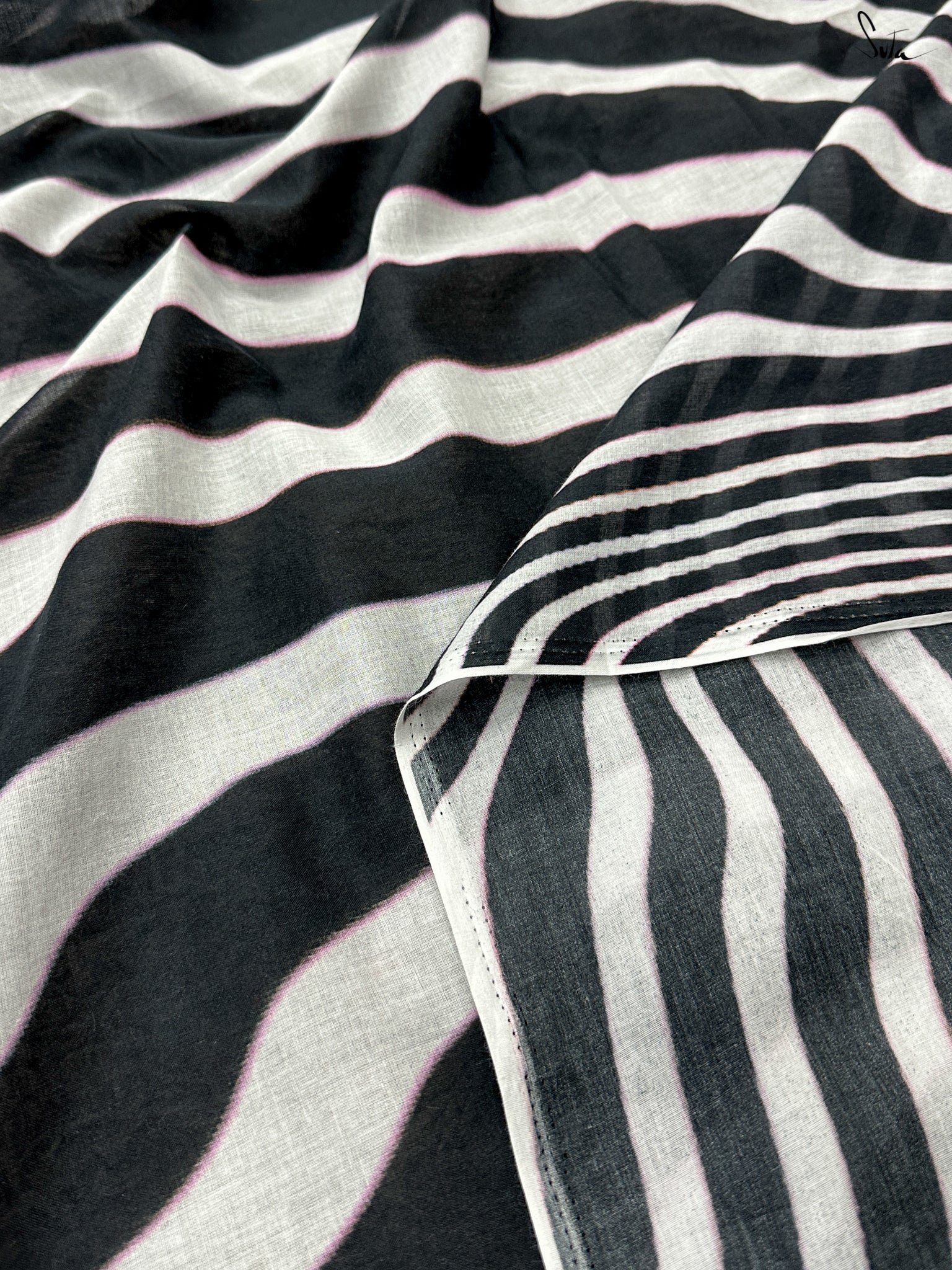 Sutas ˜made in heaven mul cotton, is also known as mul mul in West Bengal. The fabric is buttery soft and has a delicate beauty. Its weave is very fine and this lends a very fluid texture to the fabric, which makes draping it a breeze. It truly is like a hug that wraps you in its love.