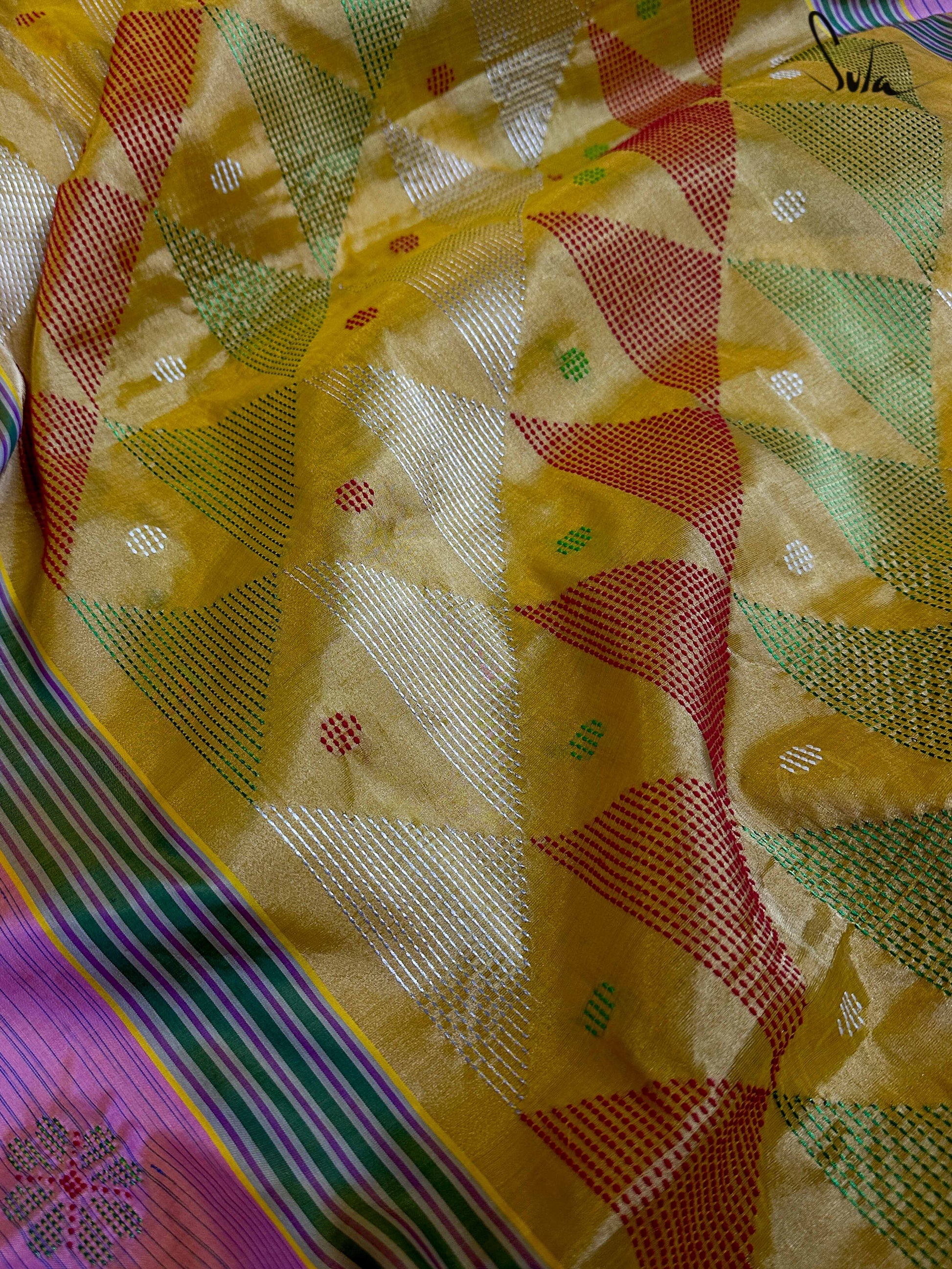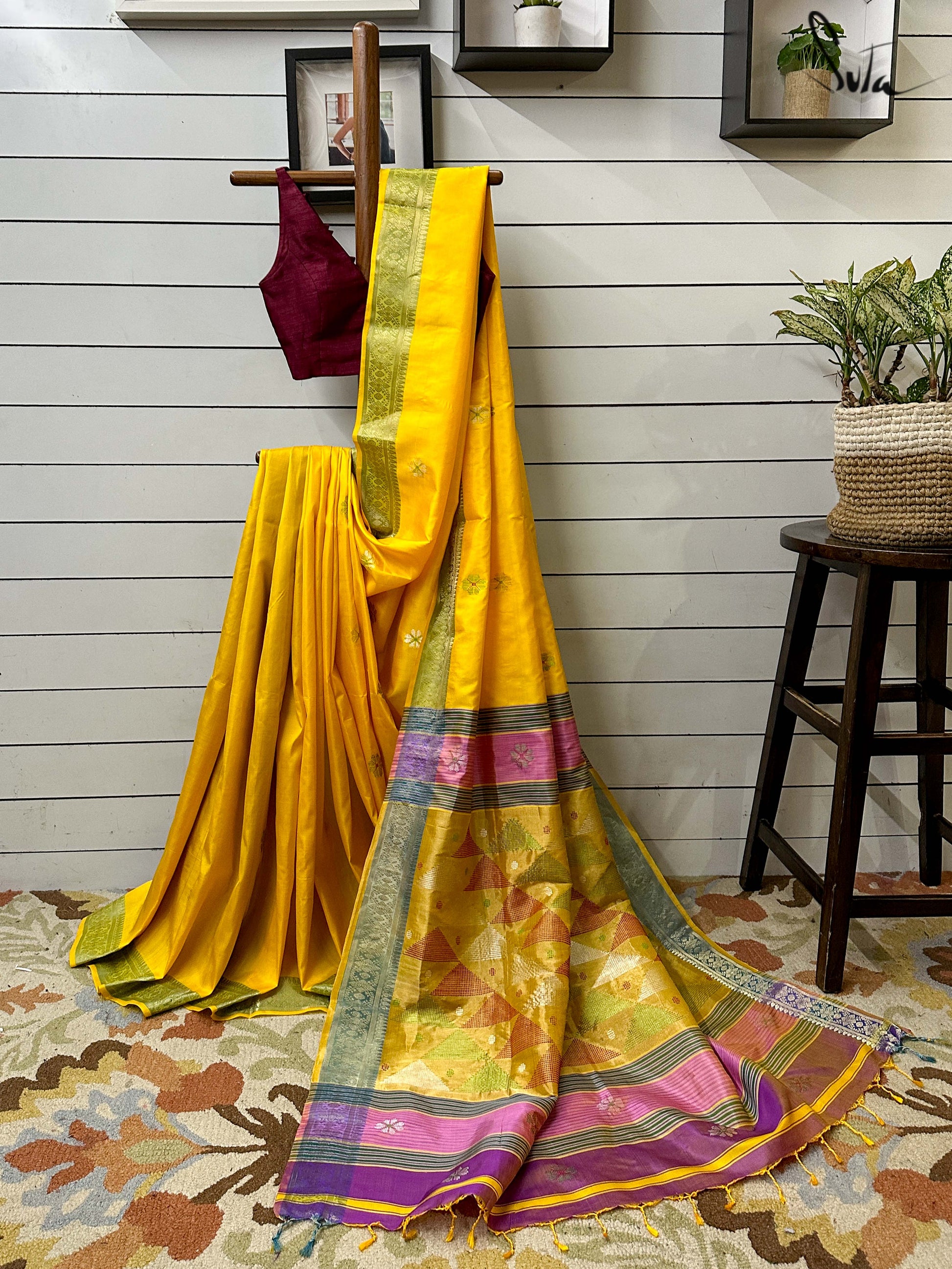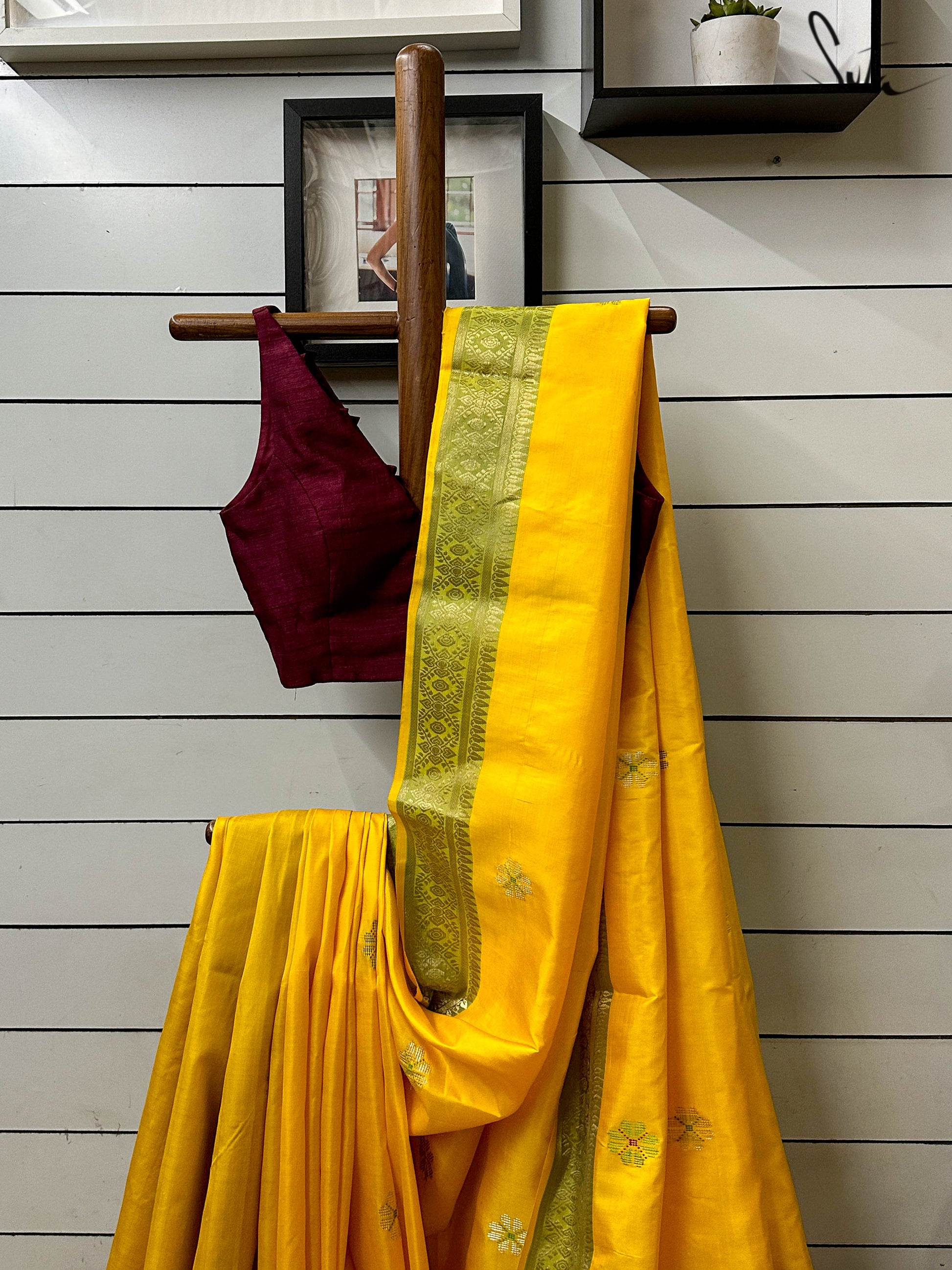This saree has a running blouse piece woven into it.