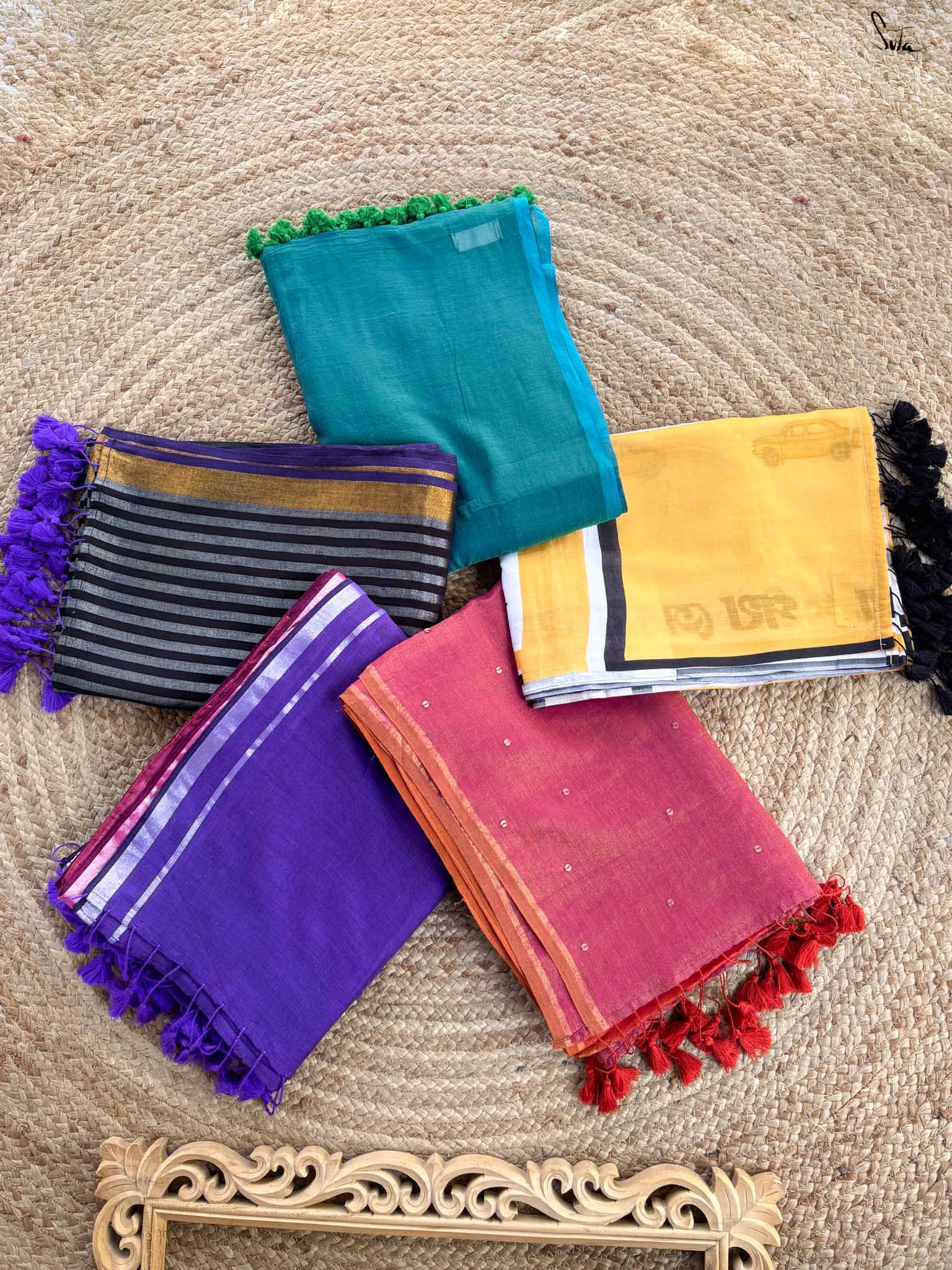 Find your peaceful haven with our soothing "Saree Serenity" combo! This enchanting collection of 5 sarees, crafted from a versatile set of fabrics, wraps you in a calming and serene aura. Each saree is designed to bring a subtle vibe to your wardrobe, without compromising on style.