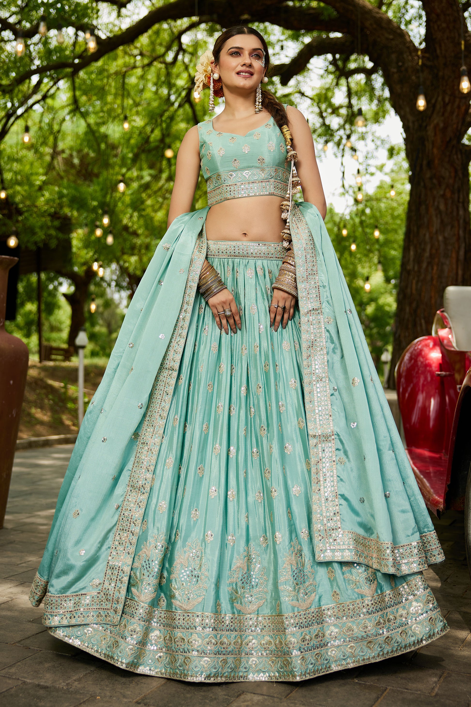Sea green colour Chiffon Sequins embroidery Lehenga choli & Dupatta