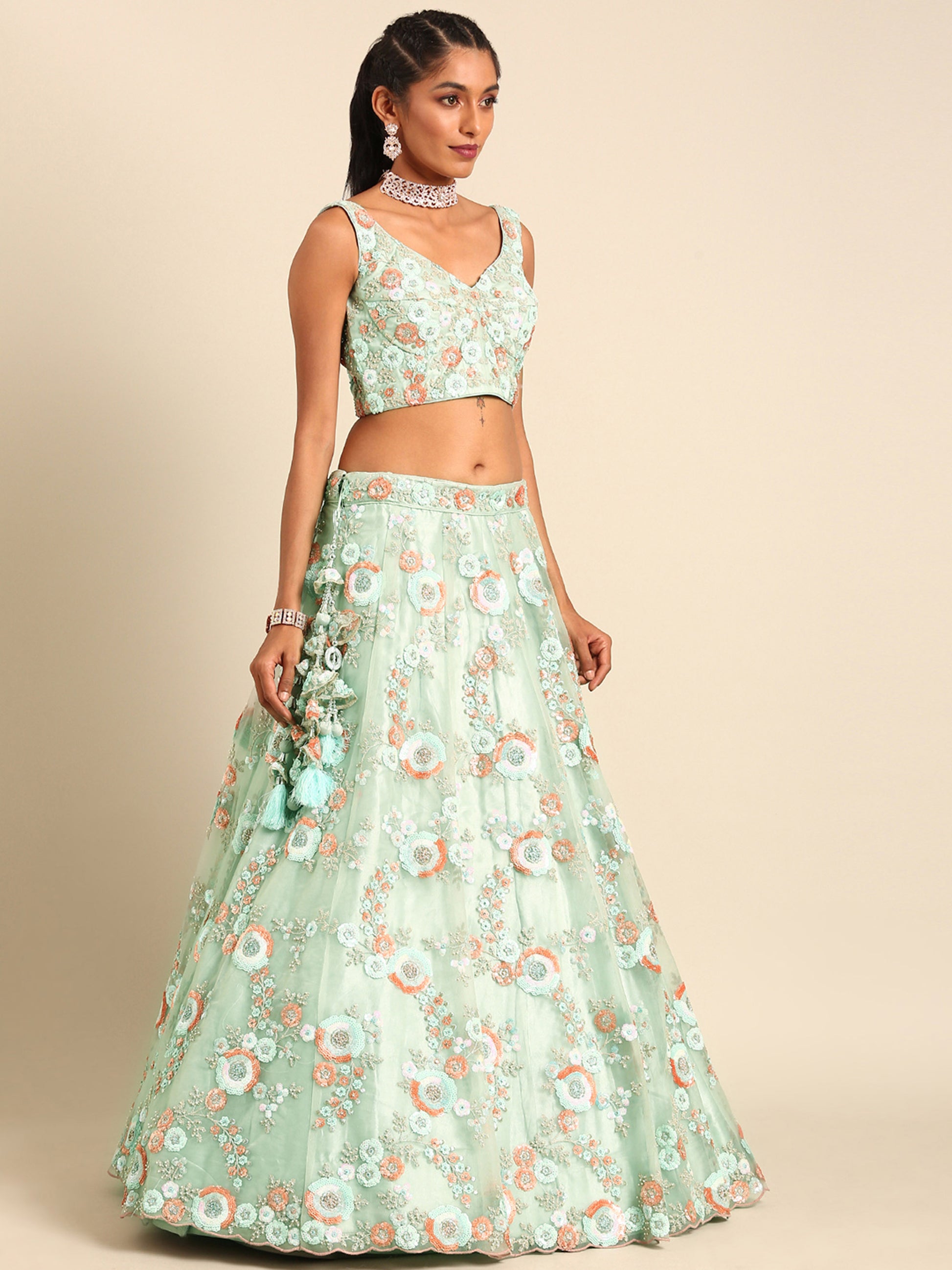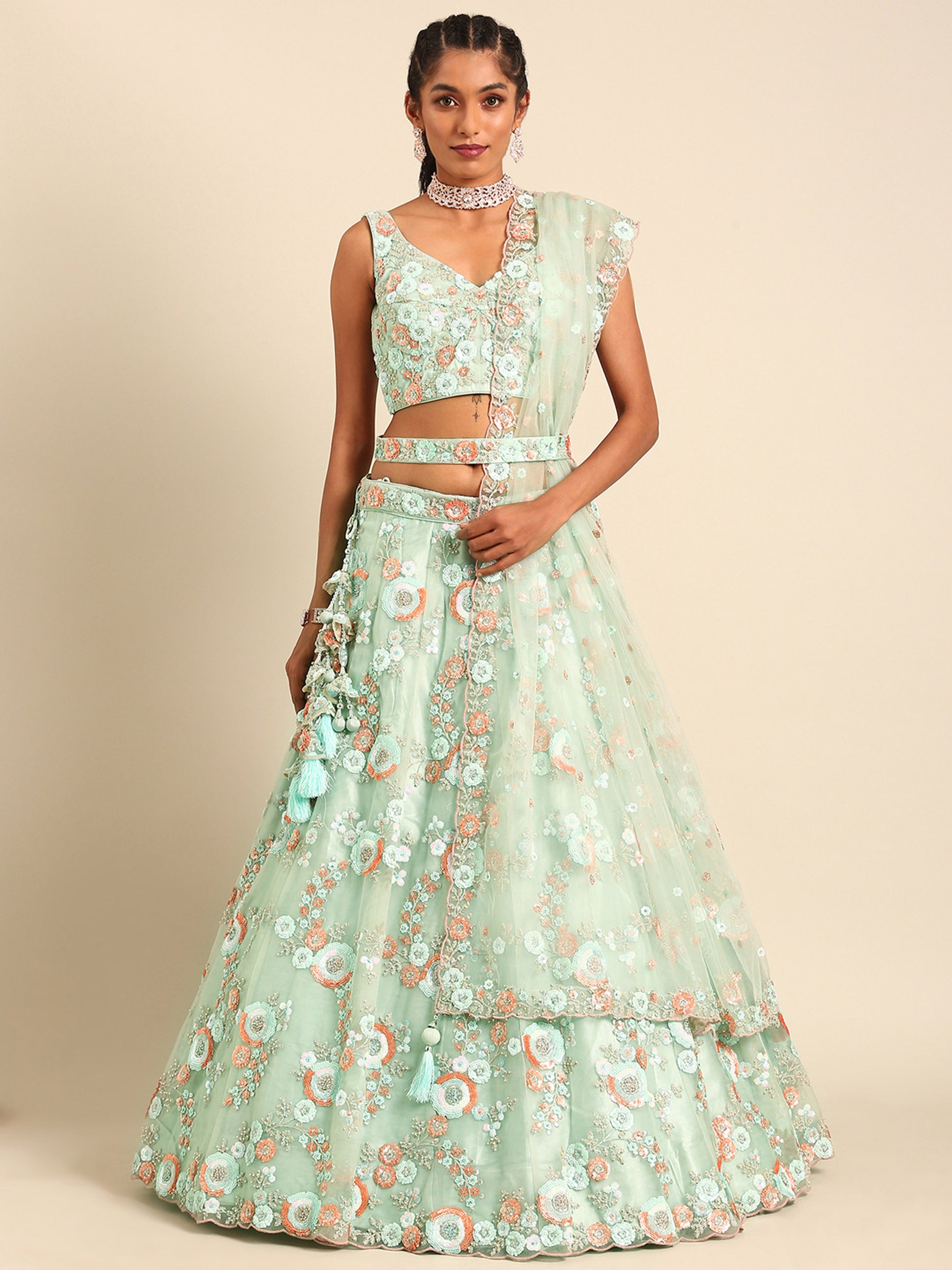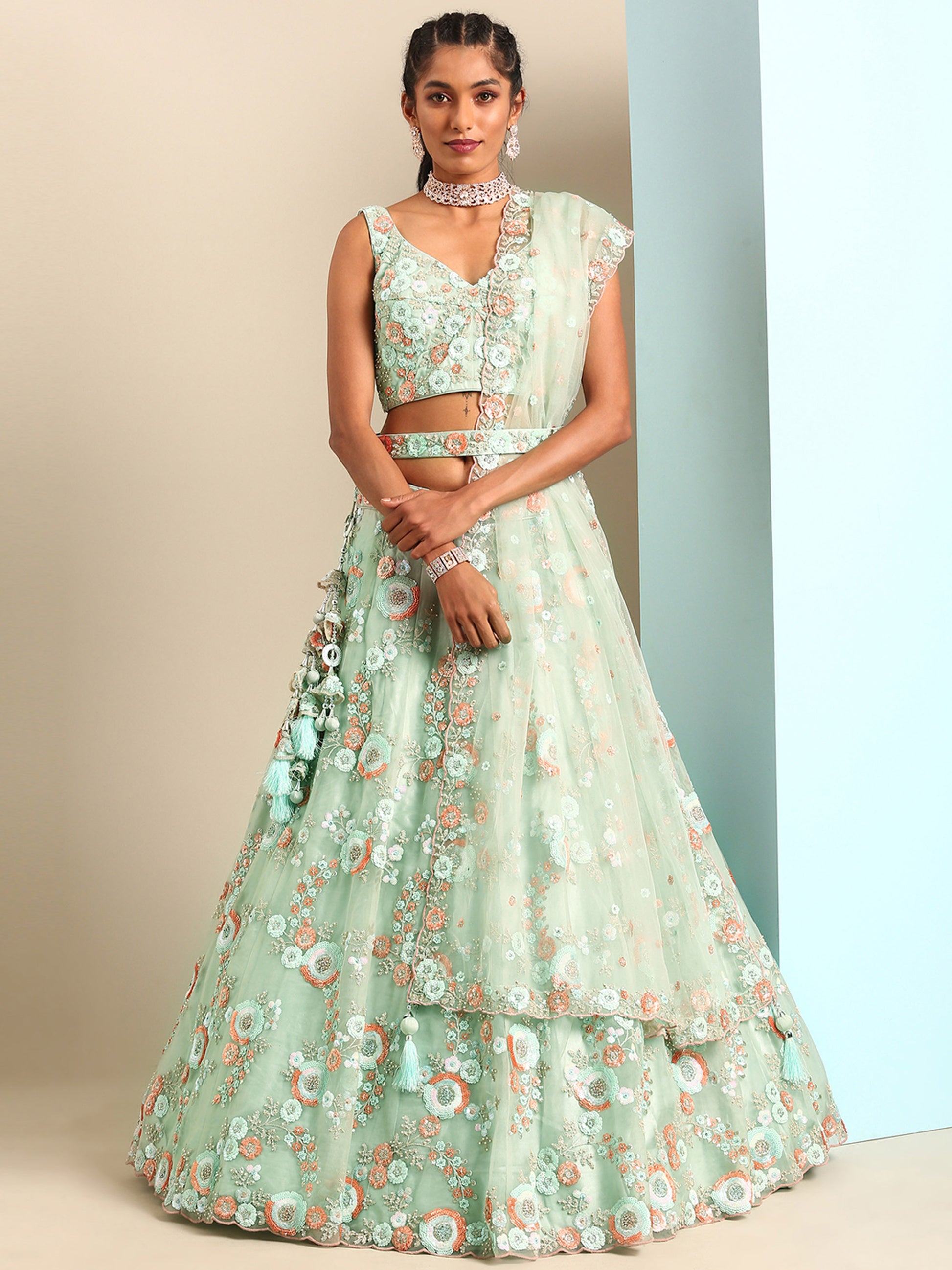 Sea Green Net Sequins and Zarkan embroidery Lehenga