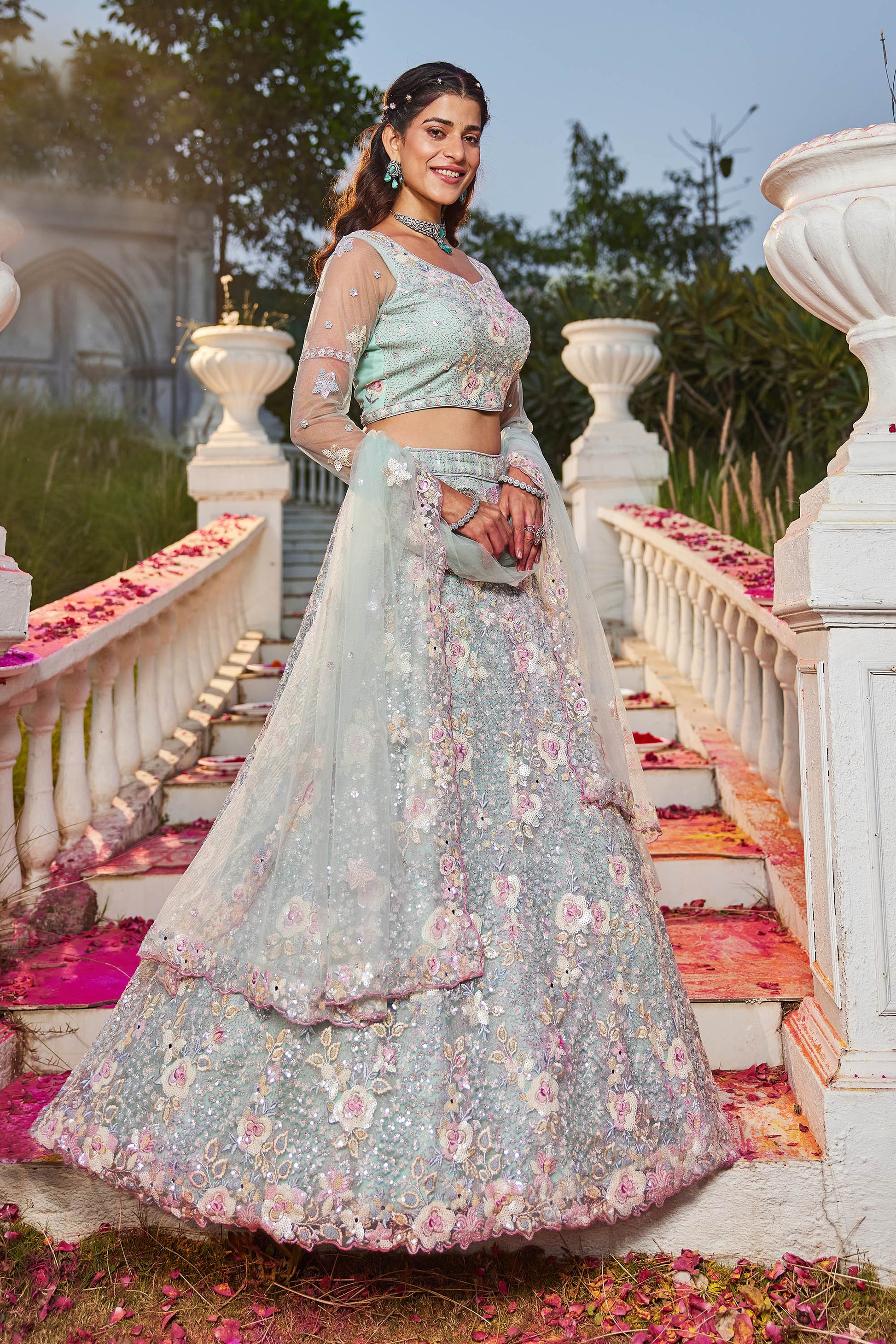 Sea Green net with Sequinse & Zarkan embroidery Lehenga choli & Dupatta