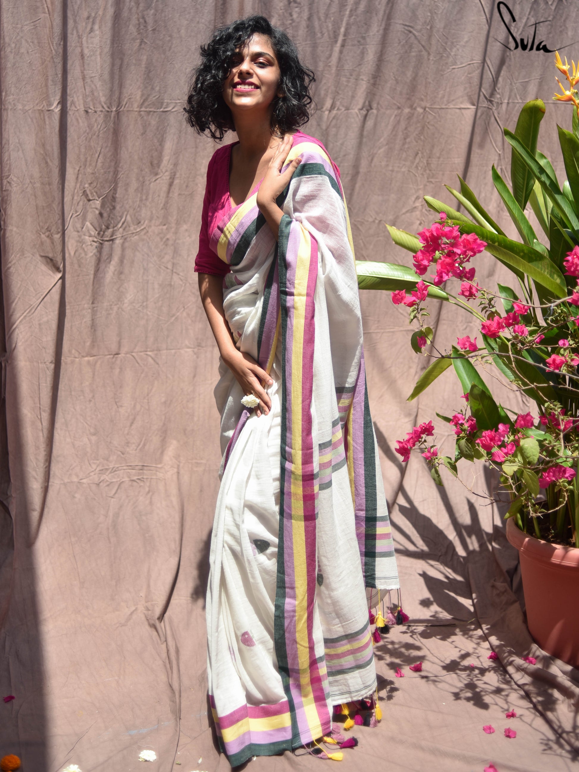 At Suta, we have taken this piece of innovation and made it into our very own fabric by combining modal yarn and made-in-heaven mul yarn together to create a very special product. The coming together of a new-age yarn and the most loved mul yarn is truly a magical thing and the outcome is spectacular. Good clothes are meant to not just make you look good but also make you feel good from inside and this eco-friendly twist to your favourite mul saree will achieve exactly that!
