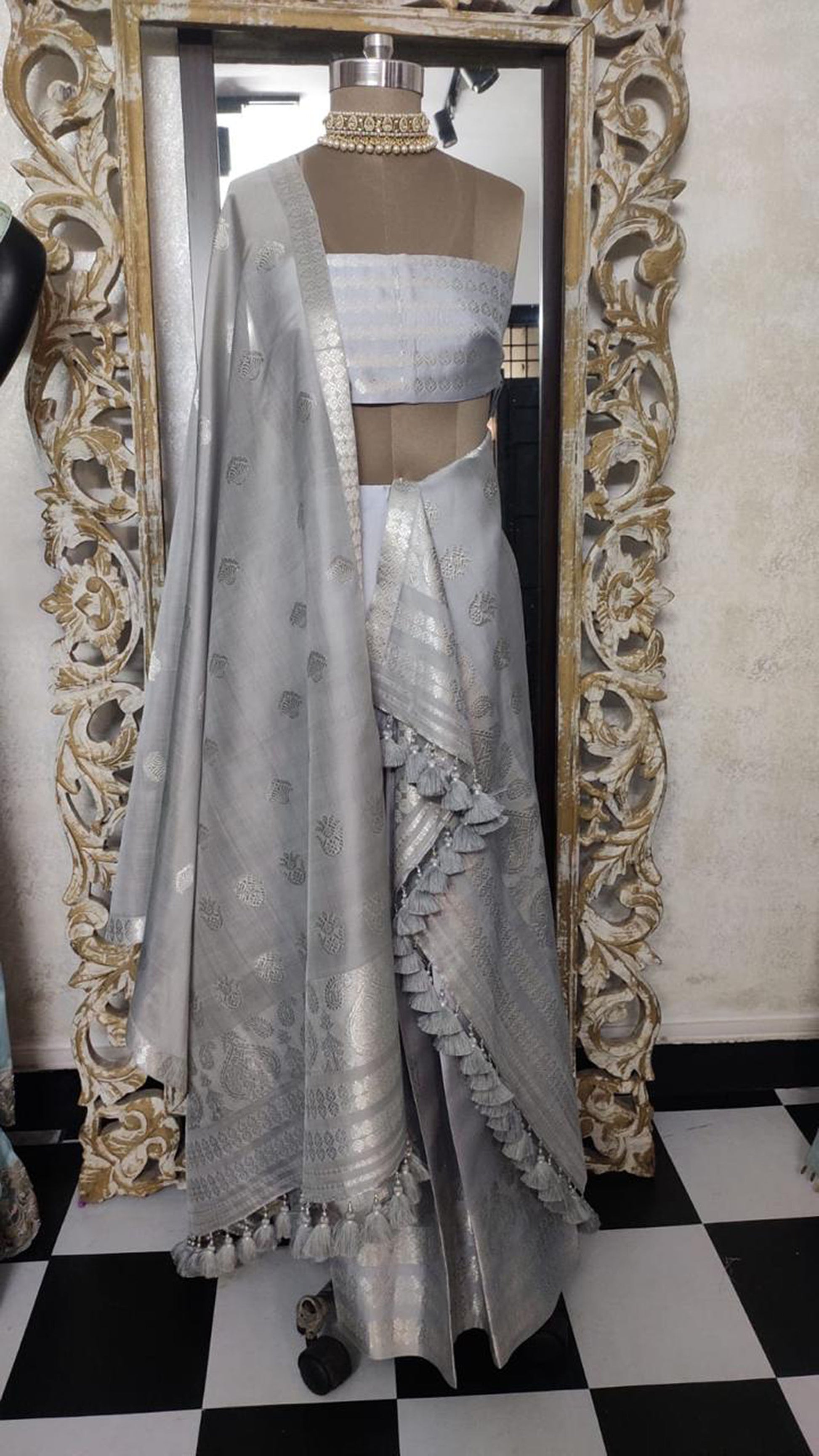 Silver Pure Assam Silk Hand woven Mekhela chadar