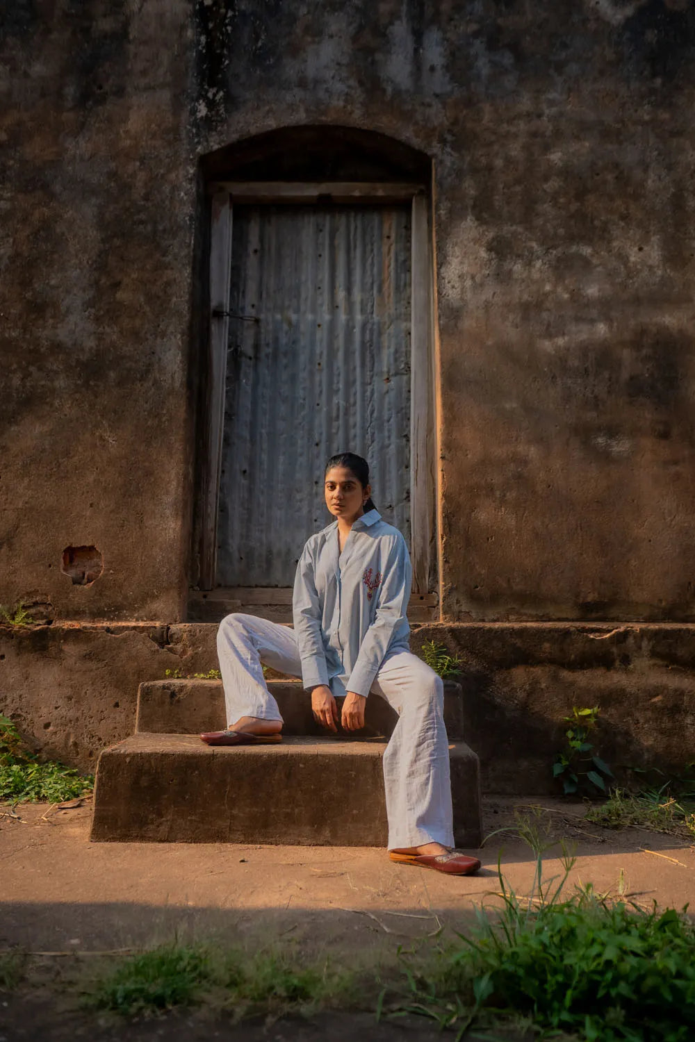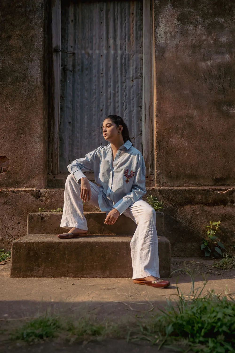 Crafted from breathable pure cotton, this Sky Blue and White Striped Shirt features playful multicolour deer embroidery for a vibrant twist. The soft fabric ensures all-day comfort, while the detailed motifs add a unique, handcrafted charm. Perfect for casual days or laid-back gatherings, this shirt blends subtle style with artisanal flair effortlessly.