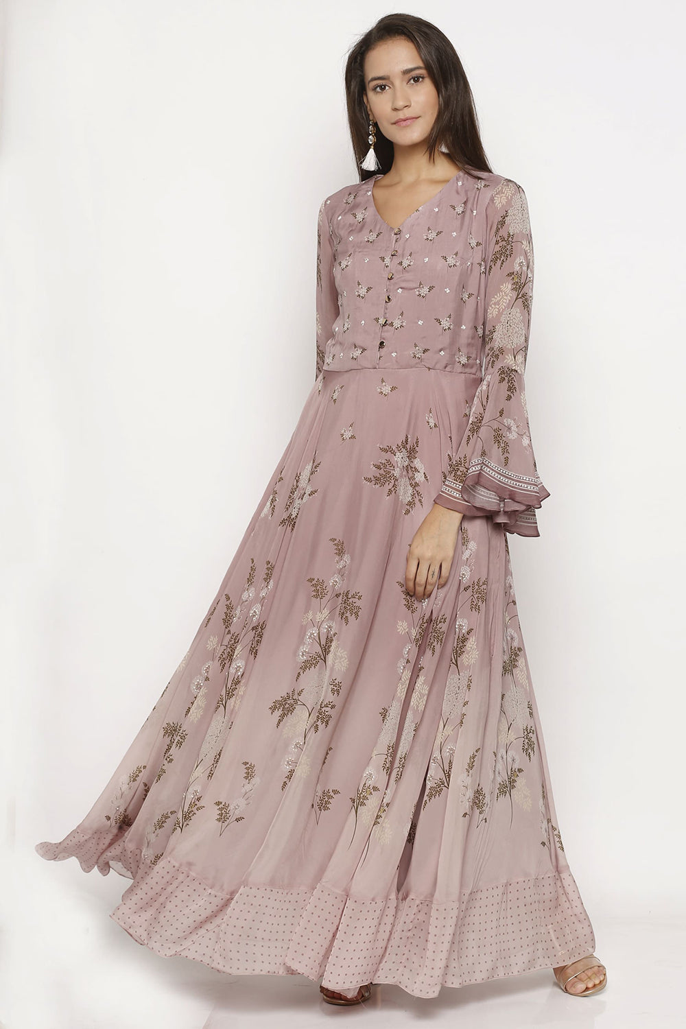 Printed aysemmetric tunic enchanced with embroidery