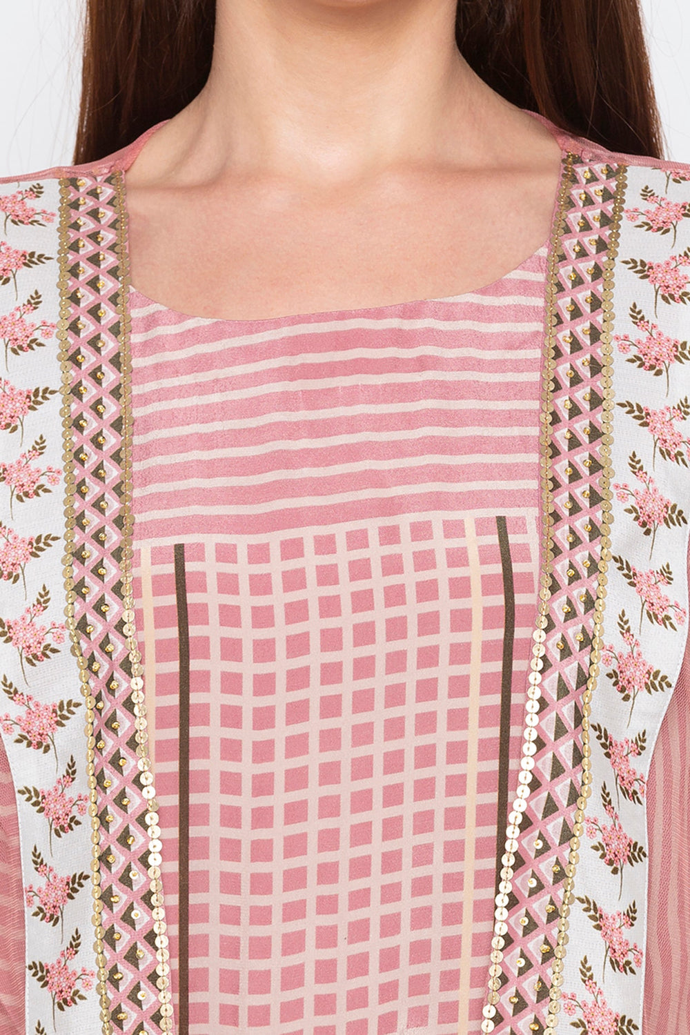 Pink Windance Printed Dhoti Style Jumpsuit With Net Jacket