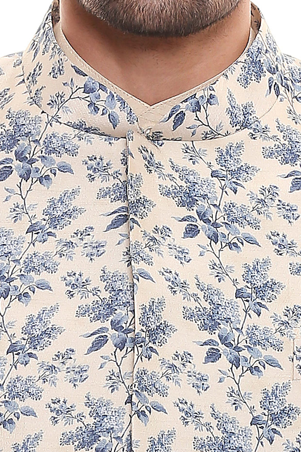 Offwhite Collared Kurta With Dhoti Pants Paired With Applique Floral Jacket