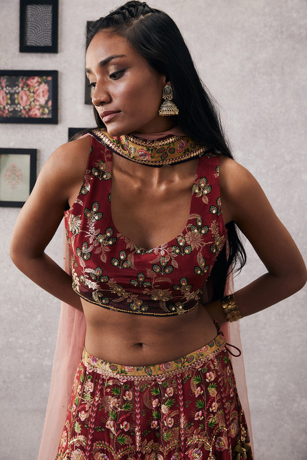 Red Mehr Embroidered Lehenga And Choli With Net Dupatta